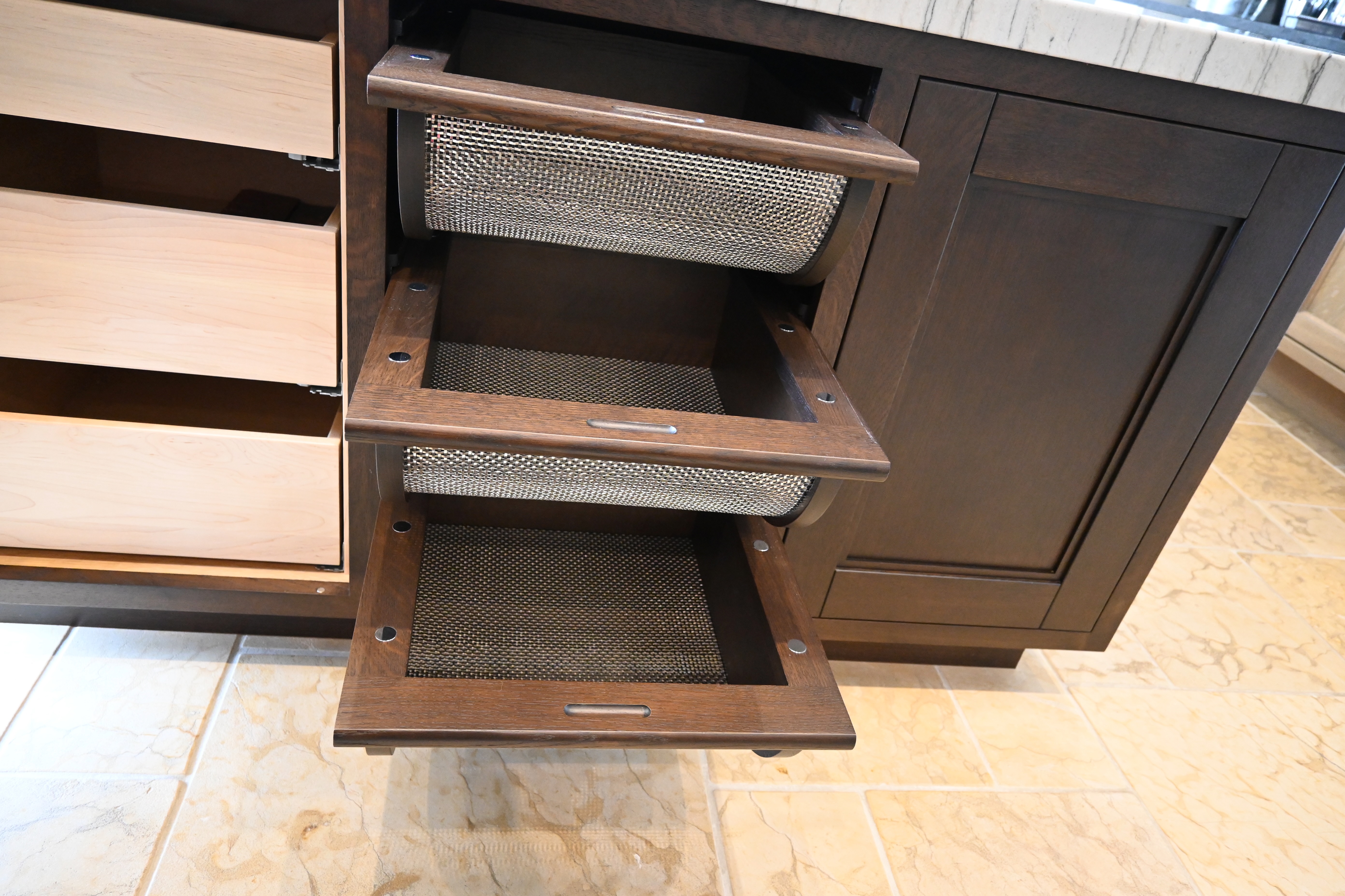 1-Open cabinet with three pull out mesh drawers Dim.: 18”w X 36”h x 24”d