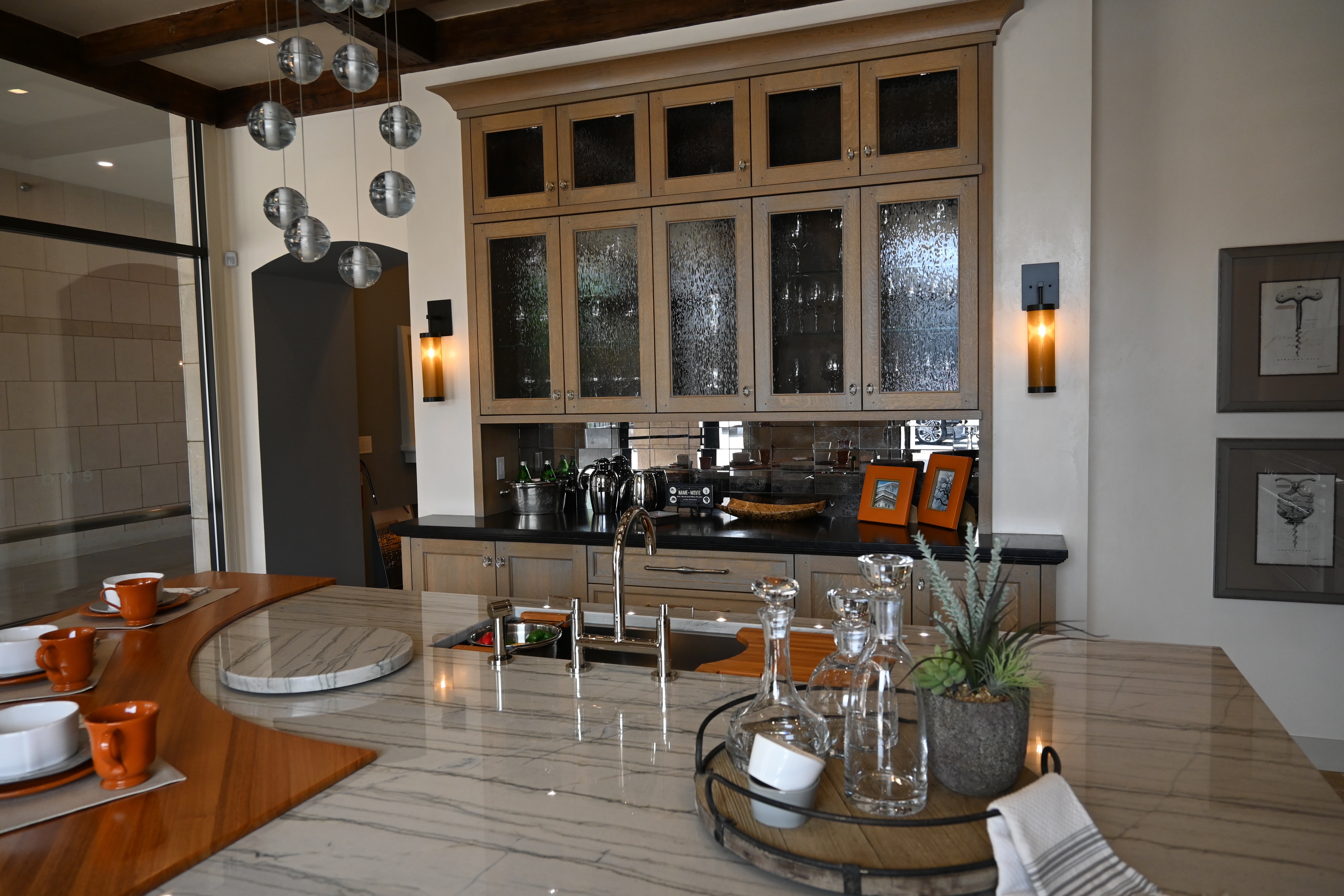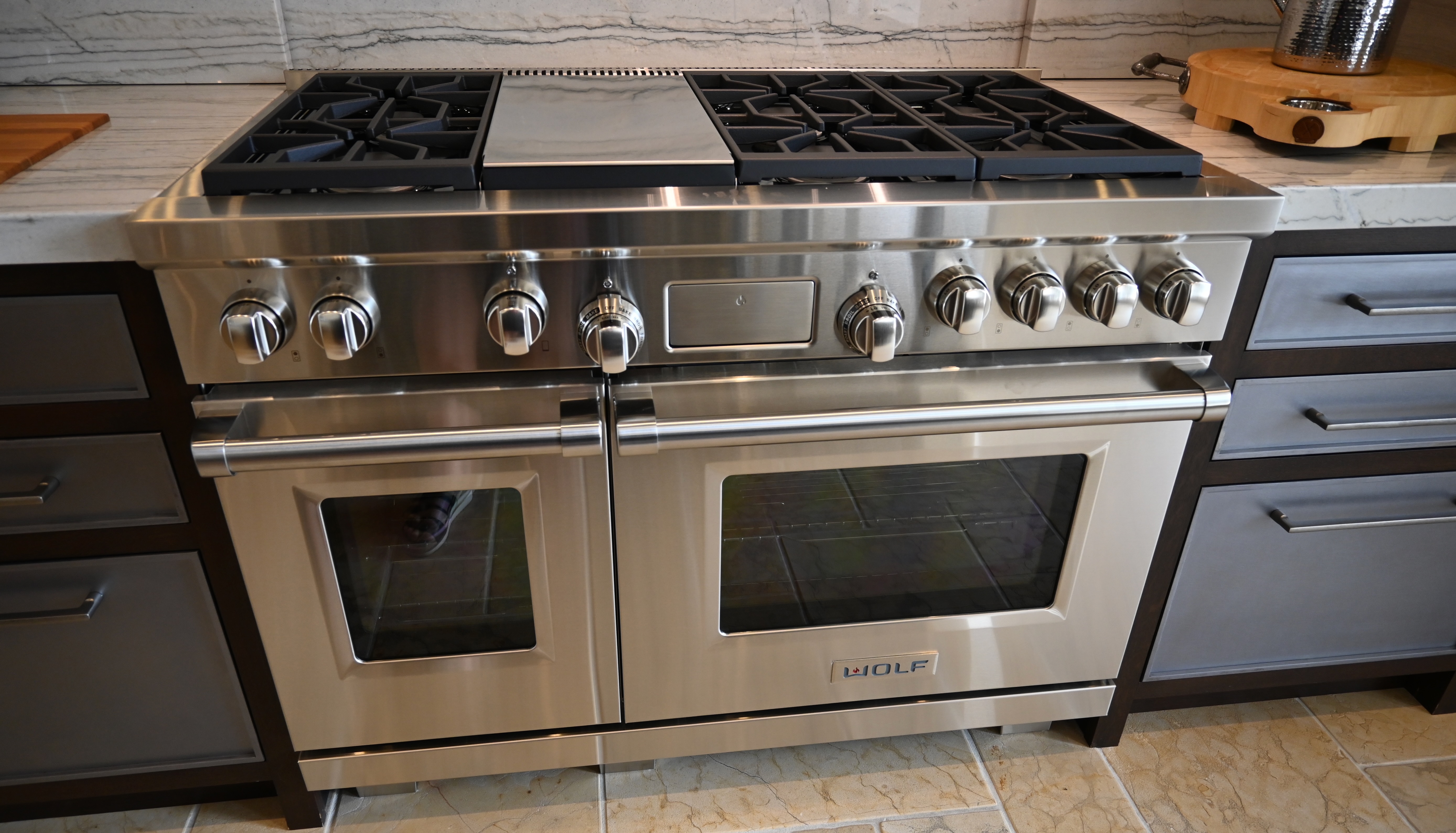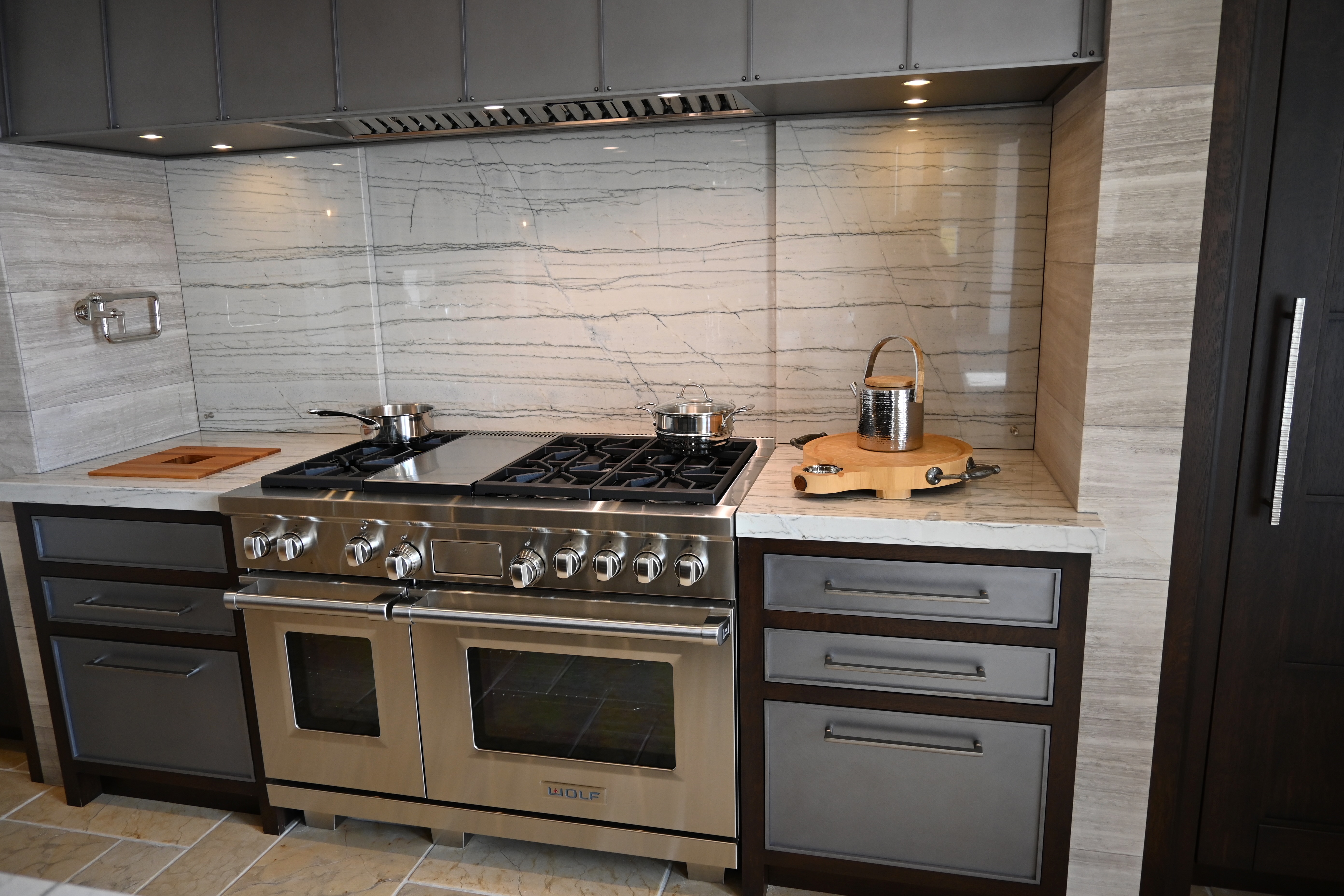 EXCLUSIONS: Wolf toaster oven & Wolf Microwave, Pot filler, Glass on the walls behind the glass cabinets