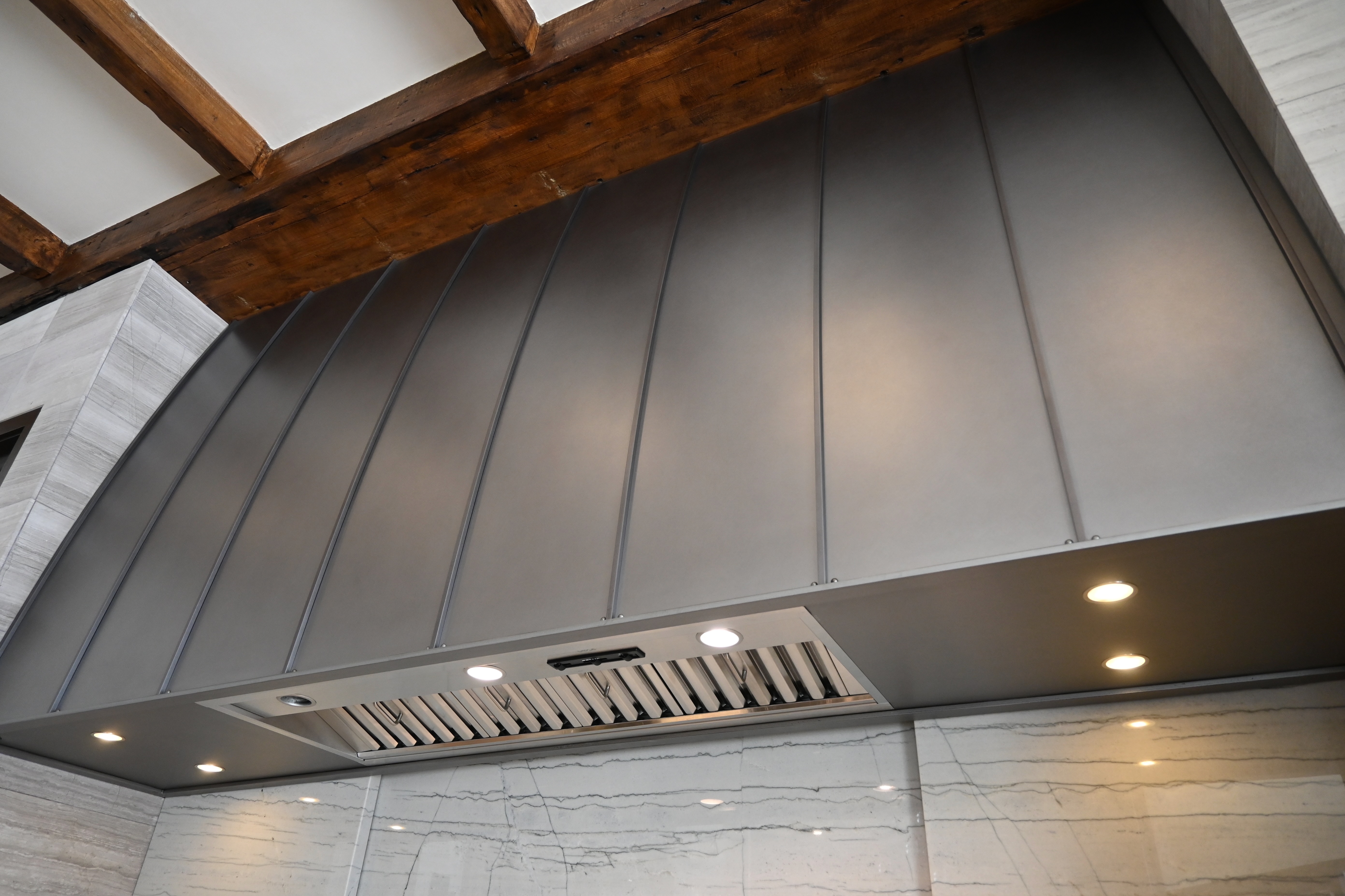 100” Raw Urth custom metal range hood, Dim.: 100 ½”w x 52 3/8”h x 22 ¼”d, Listing price new $18,000