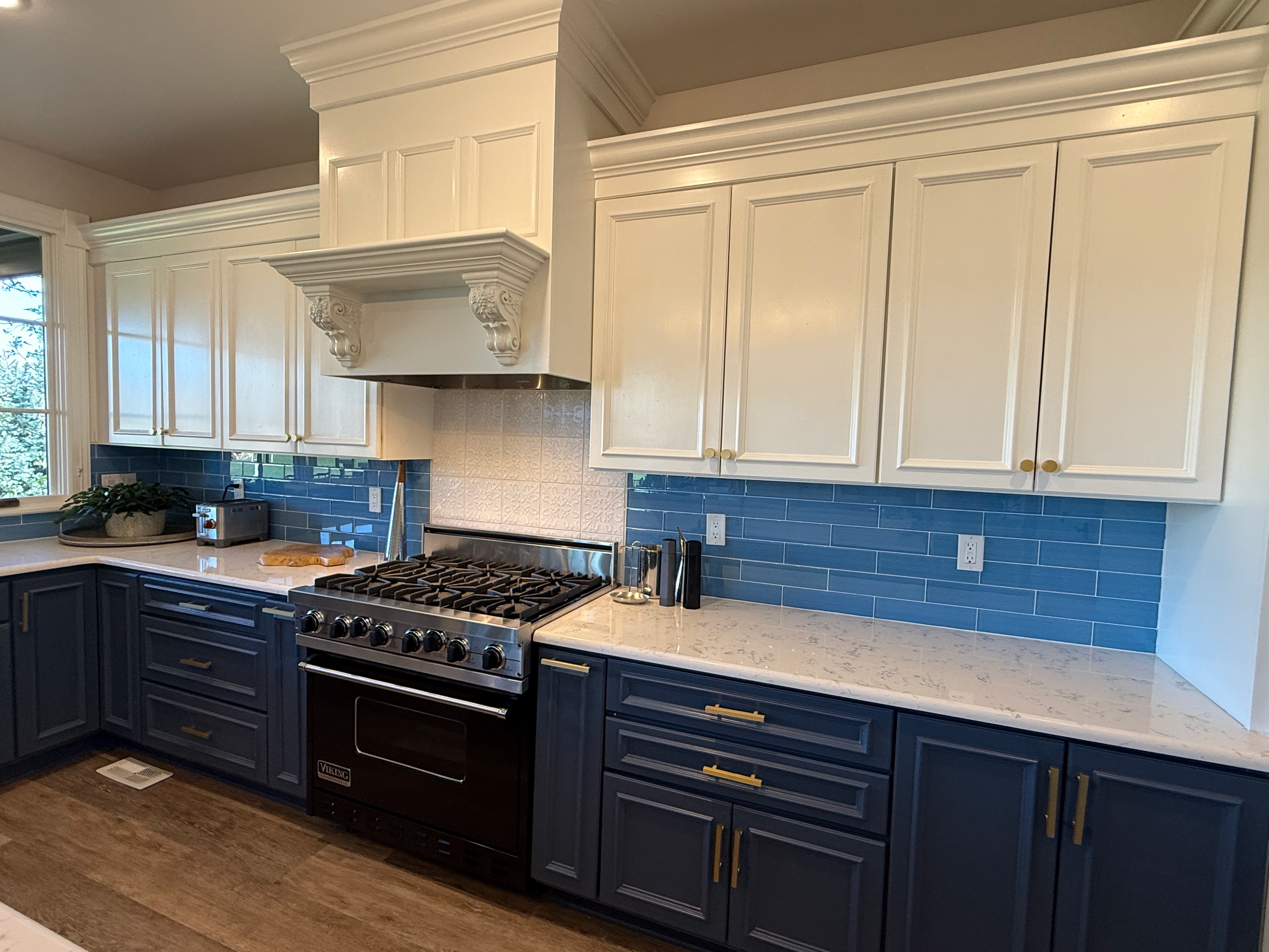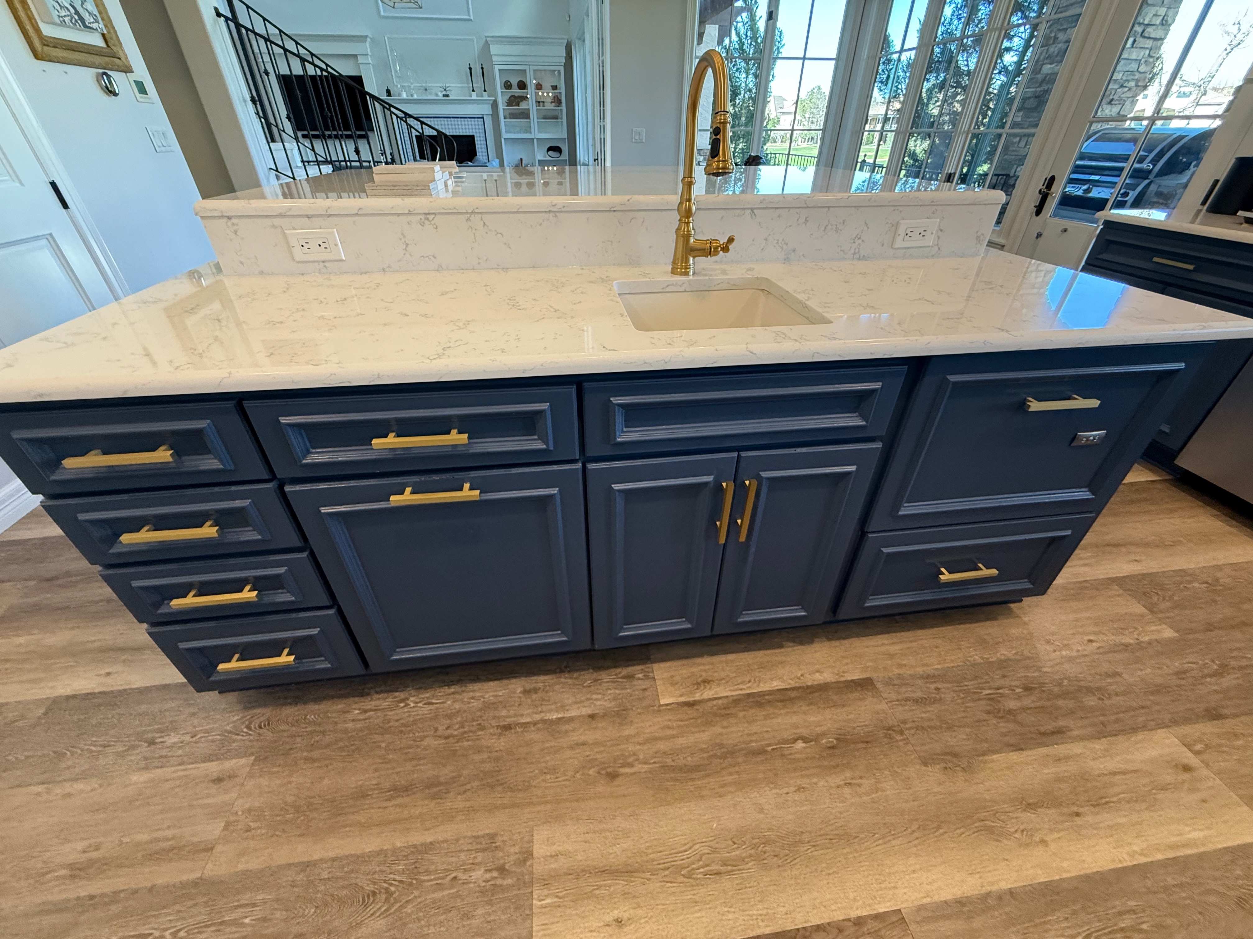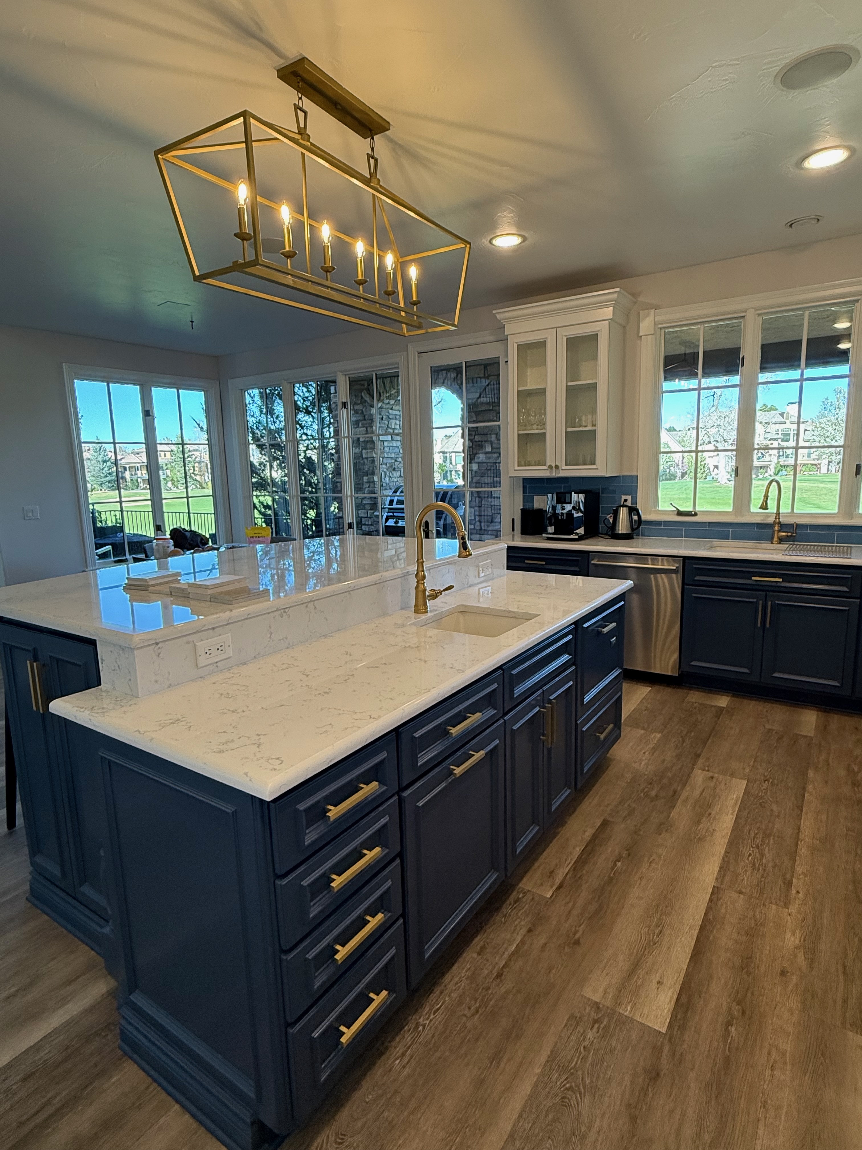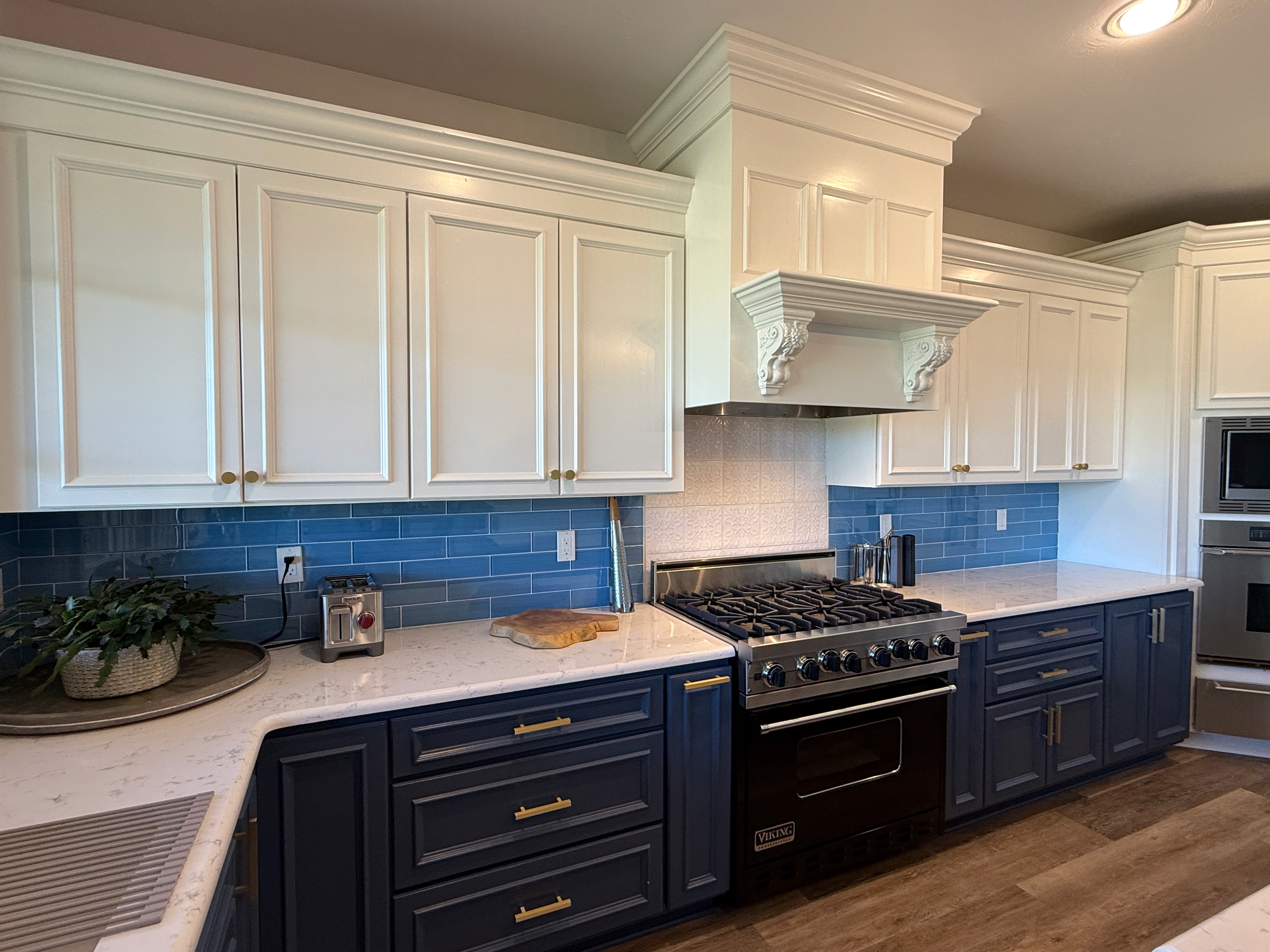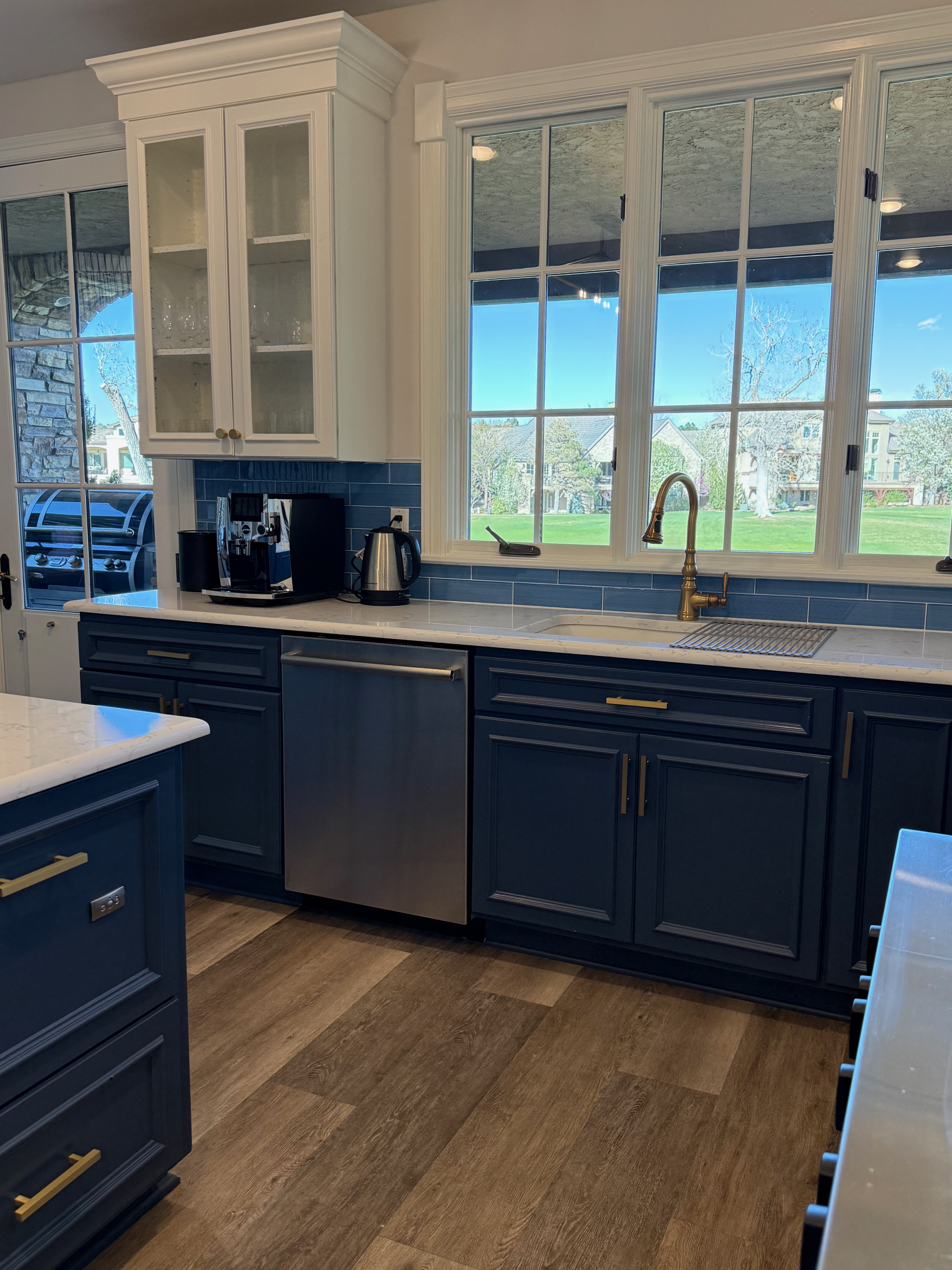 This transitional, modern style kitchen features shaker style cabinets which are timeless and versatile with a classic white upper cabinet with lower cabinets in a popular blue sophisticated contrast. The quartz countertops and brushed brass door hardware lends a traditional elegant feel. The kitchen package comes with luxury Viking, Sub-Zero and Dacor appliances. Available early July tbd. Price for the package below. Available tbd early July.
