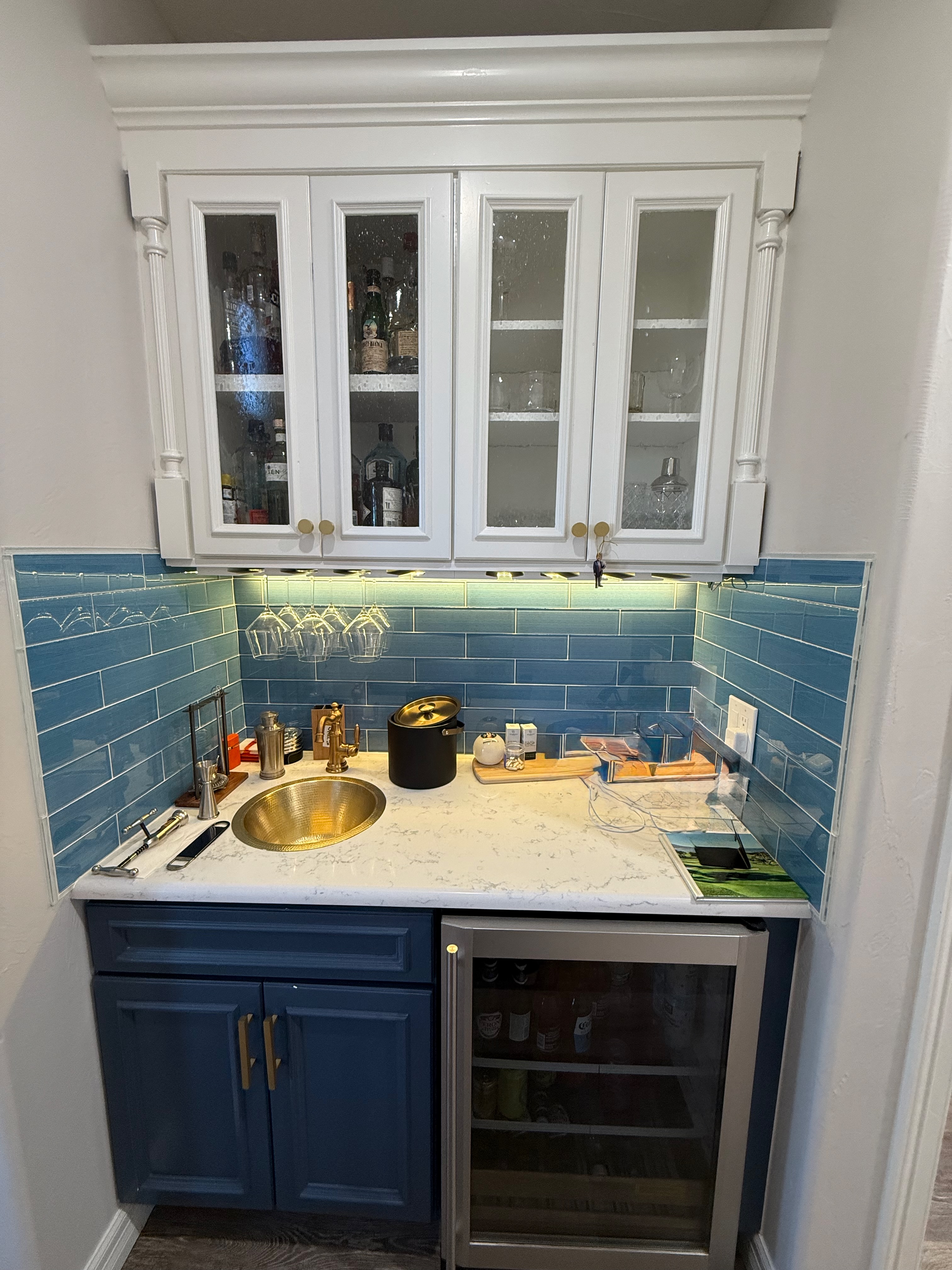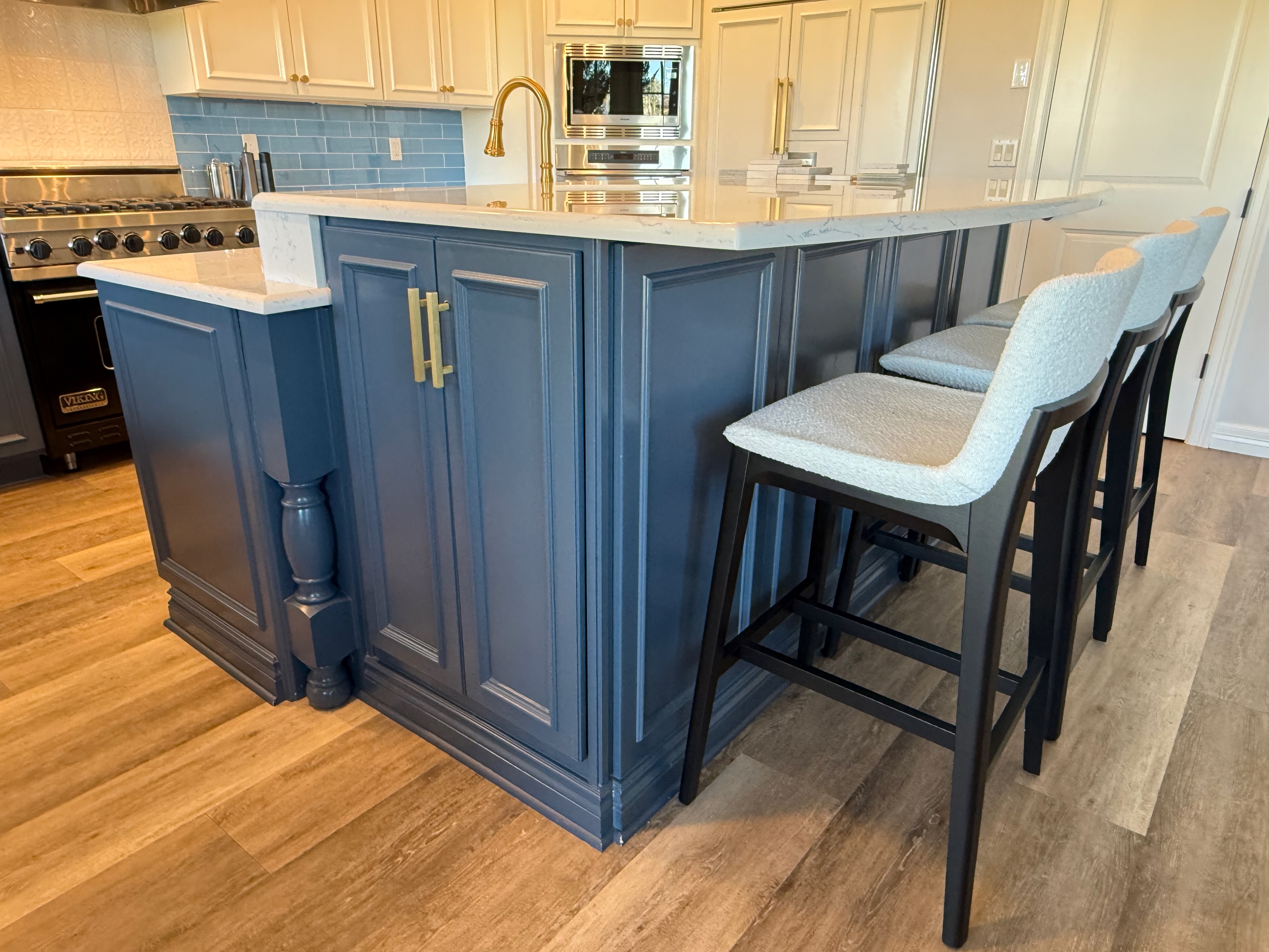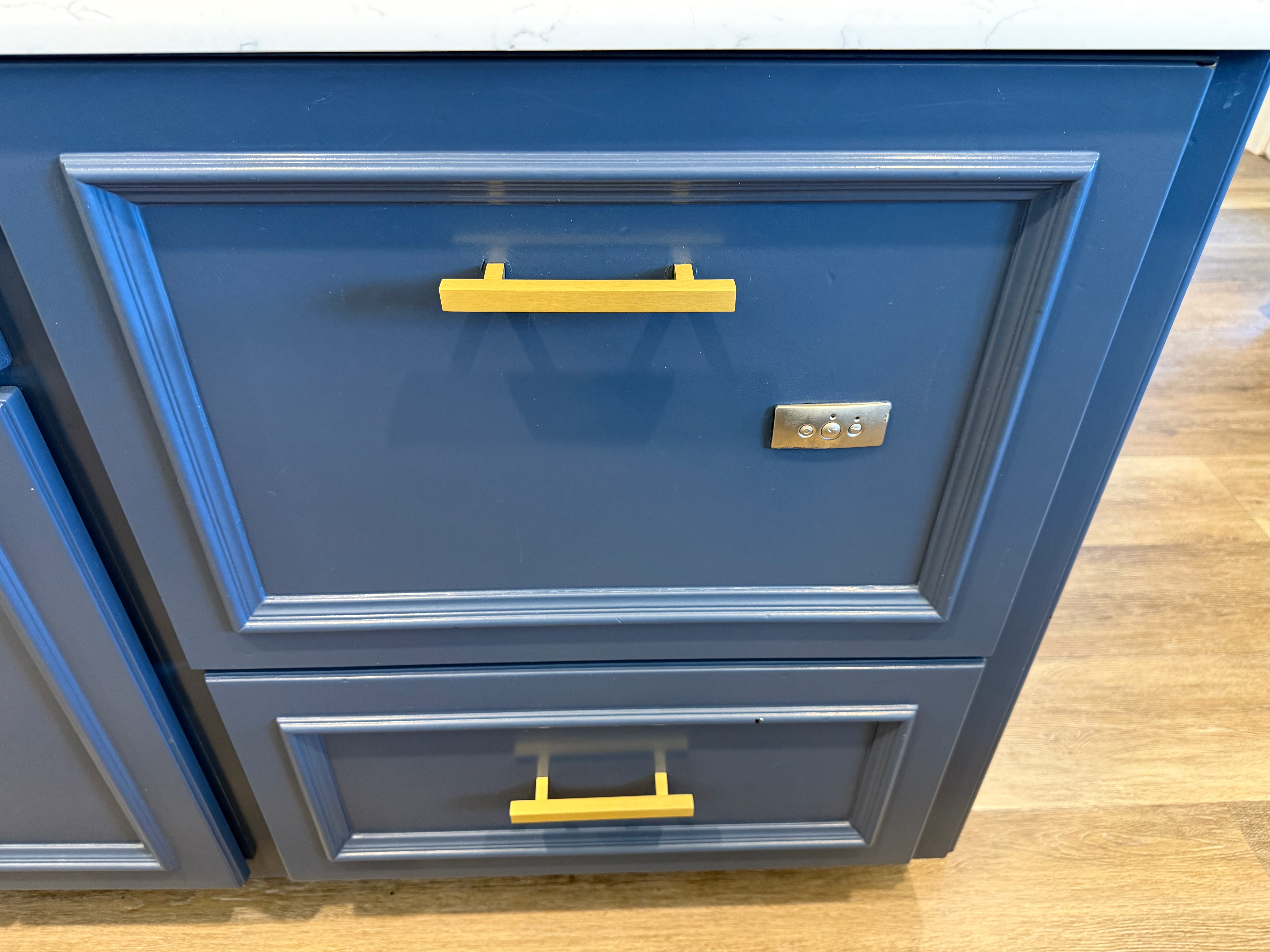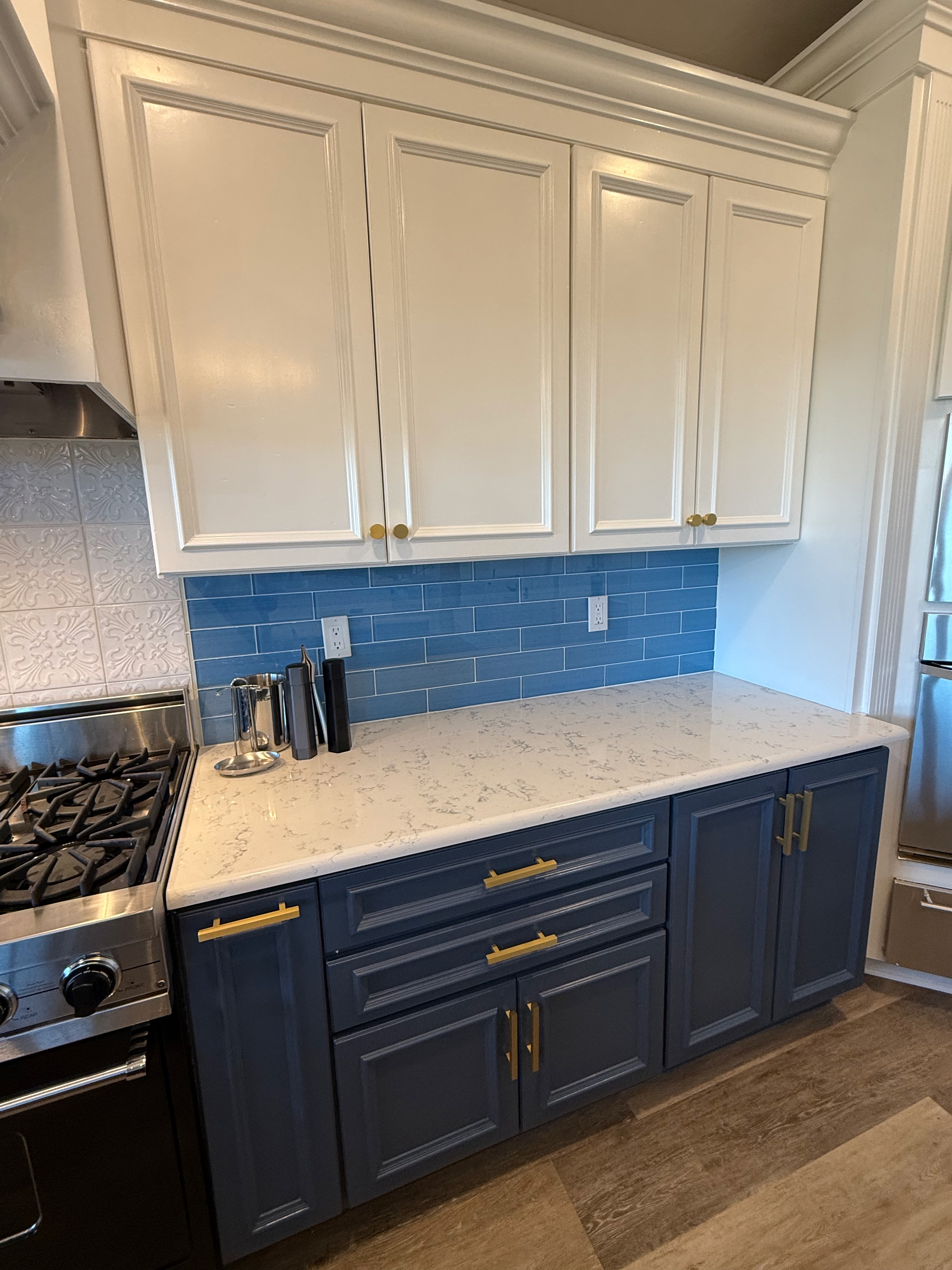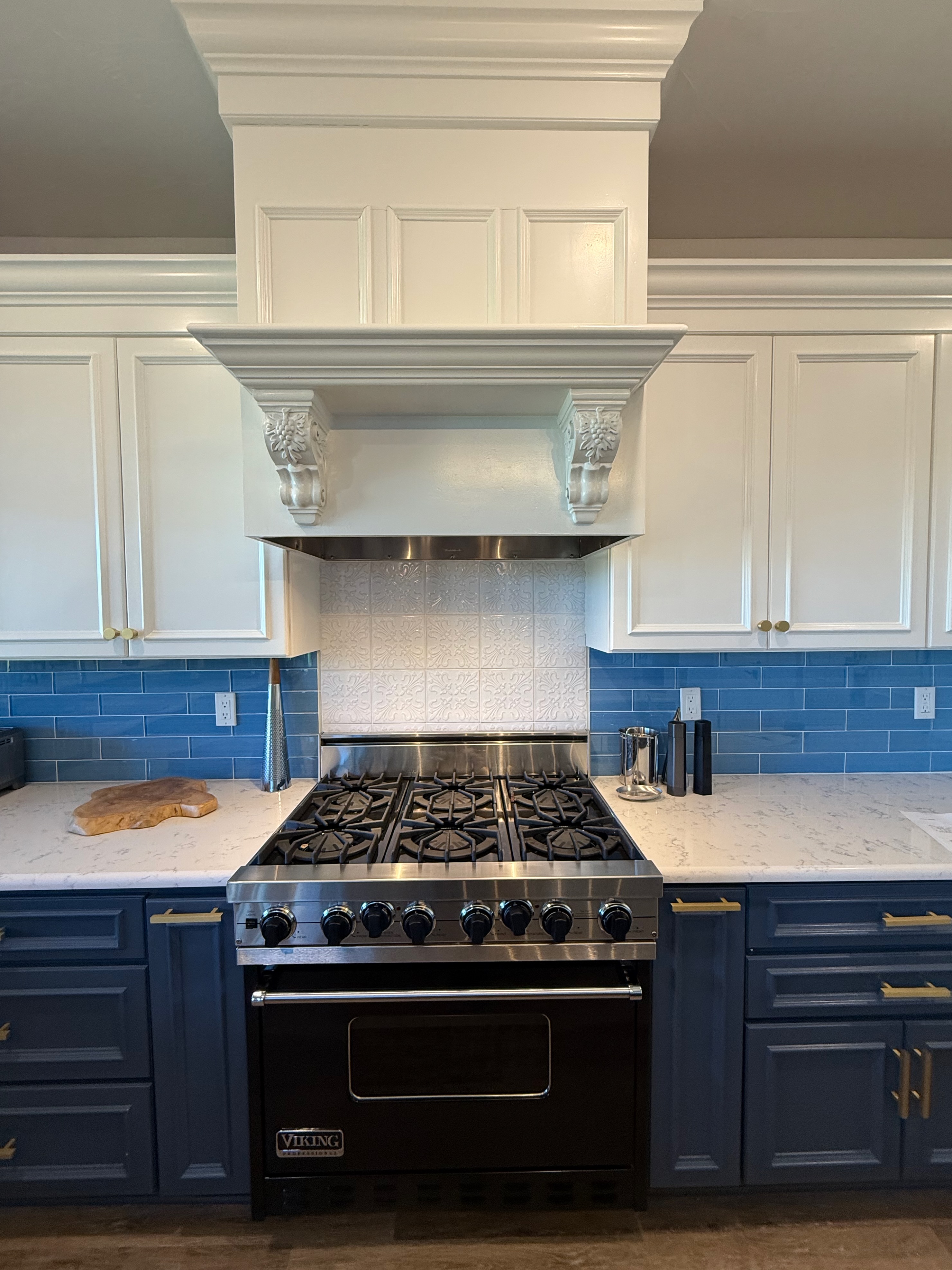 This transitional, modern style kitchen features shaker style cabinets which are timeless and versatile with a classic white upper cabinet with lower cabinets in a popular blue sophisticated contrast. The quartz countertops and brushed brass door hardware lends a traditional elegant feel. The kitchen package comes with luxury Viking, Sub-Zero and Dacor appliances. Available early July tbd. Price for the package below. Available tbd early July.