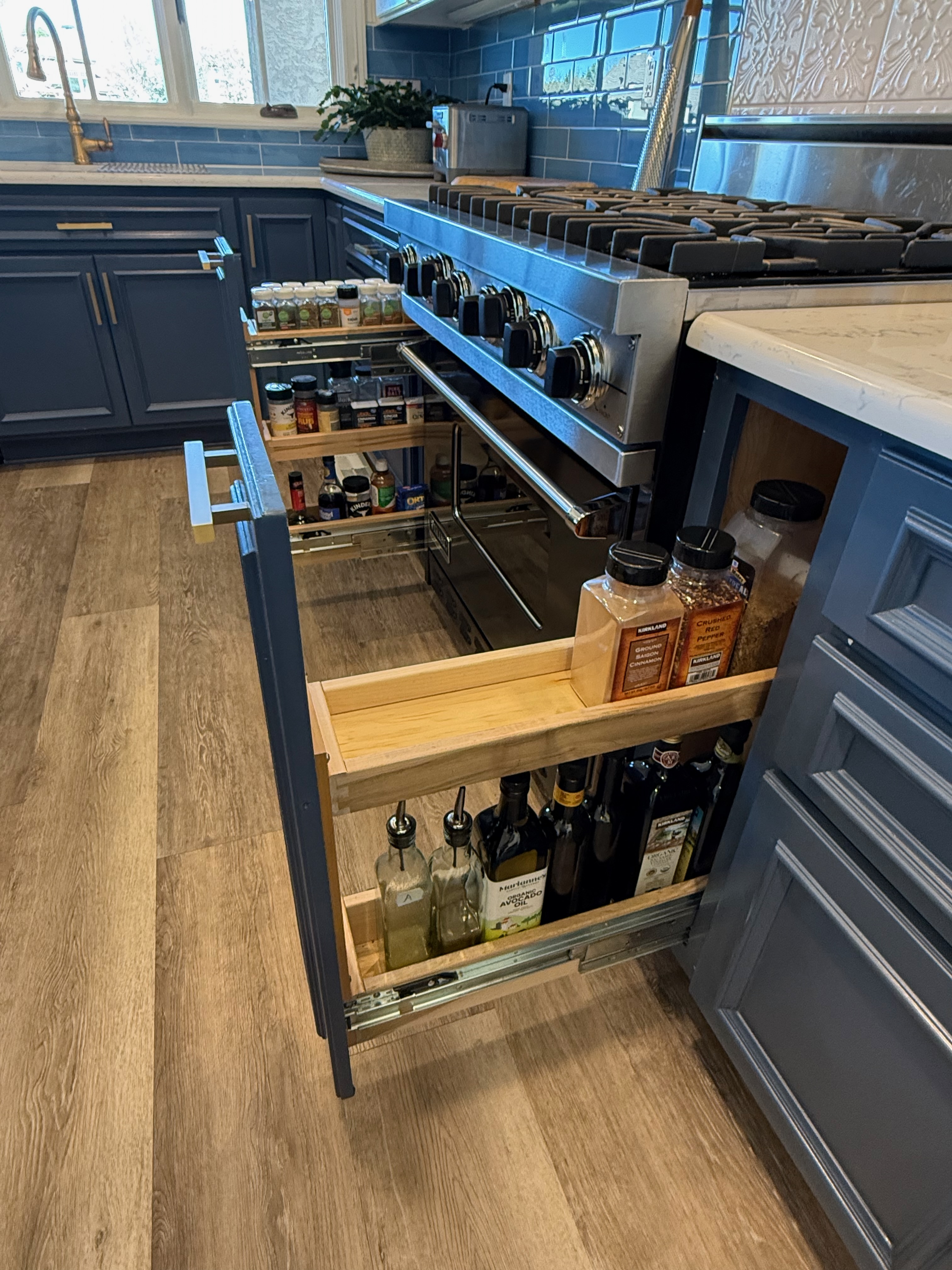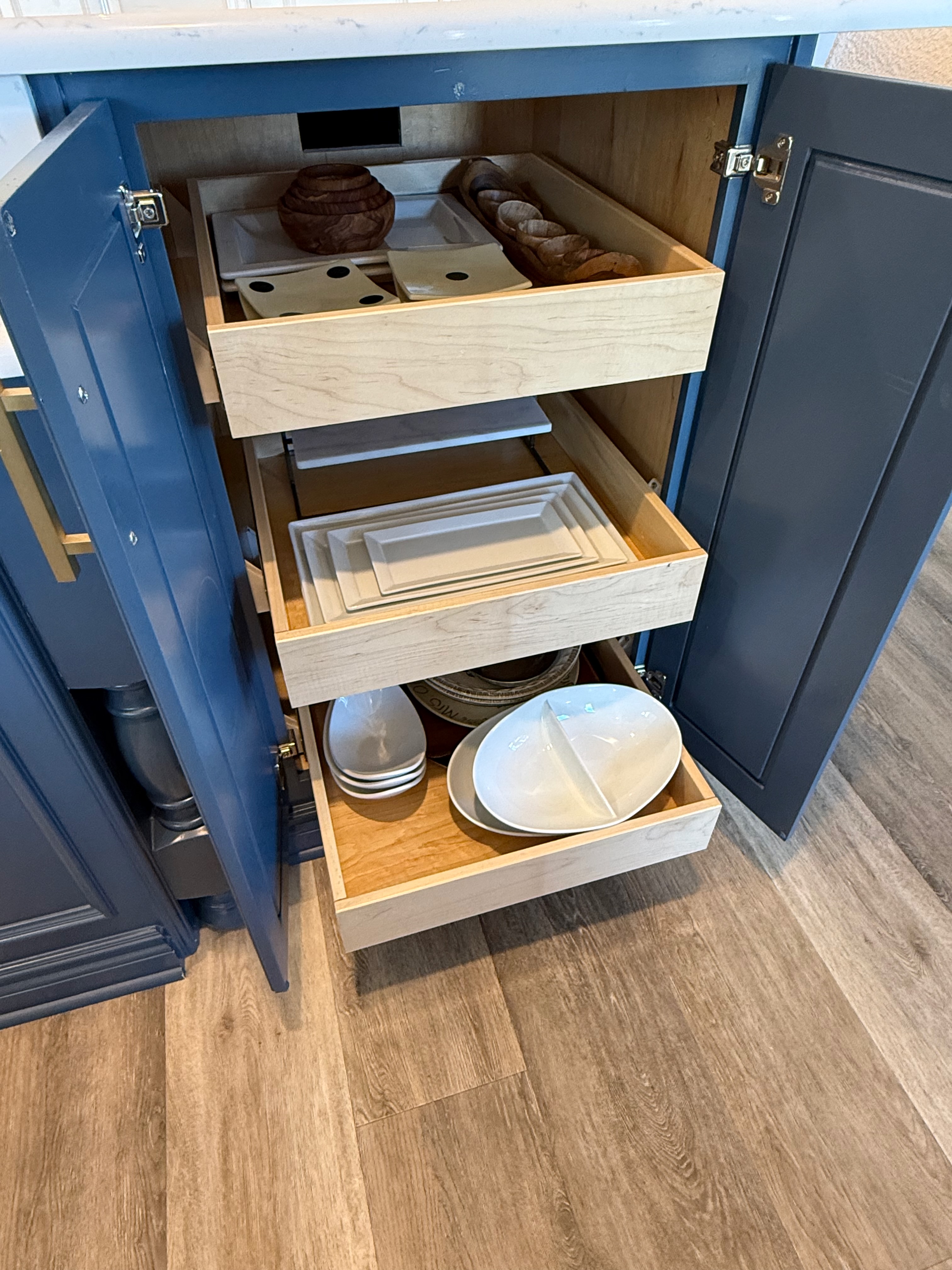 2-Two door cabinets on the side that have 3 rollout drawers inside Dim.; 24”w x 35”h cabinet only/42 ½”h w/ counter x 24”d
