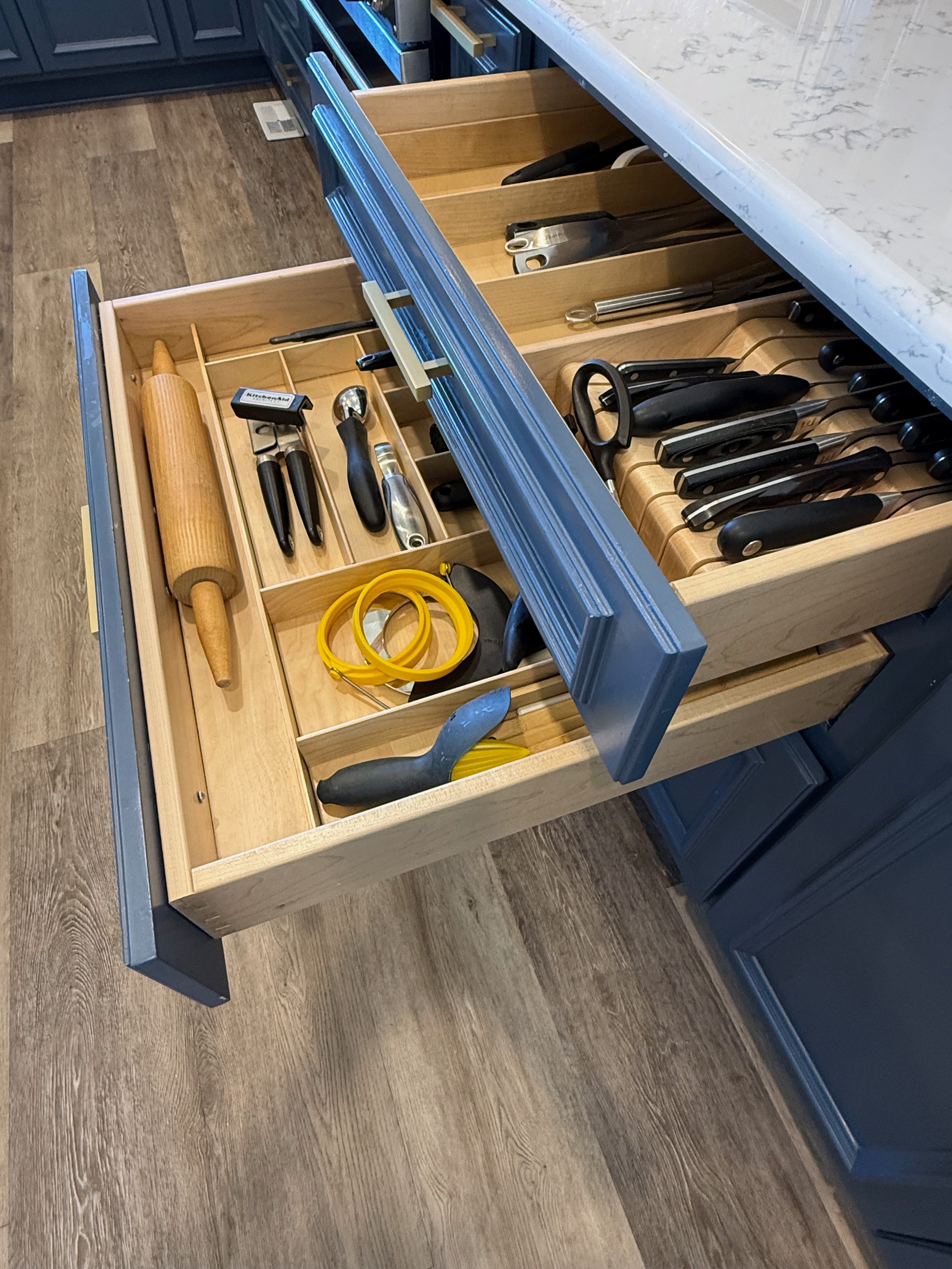 1-Three drawer base cabinet Dim.: 30”w x 34 1/2” cabinet/ 36”h w/ crown x 24”d