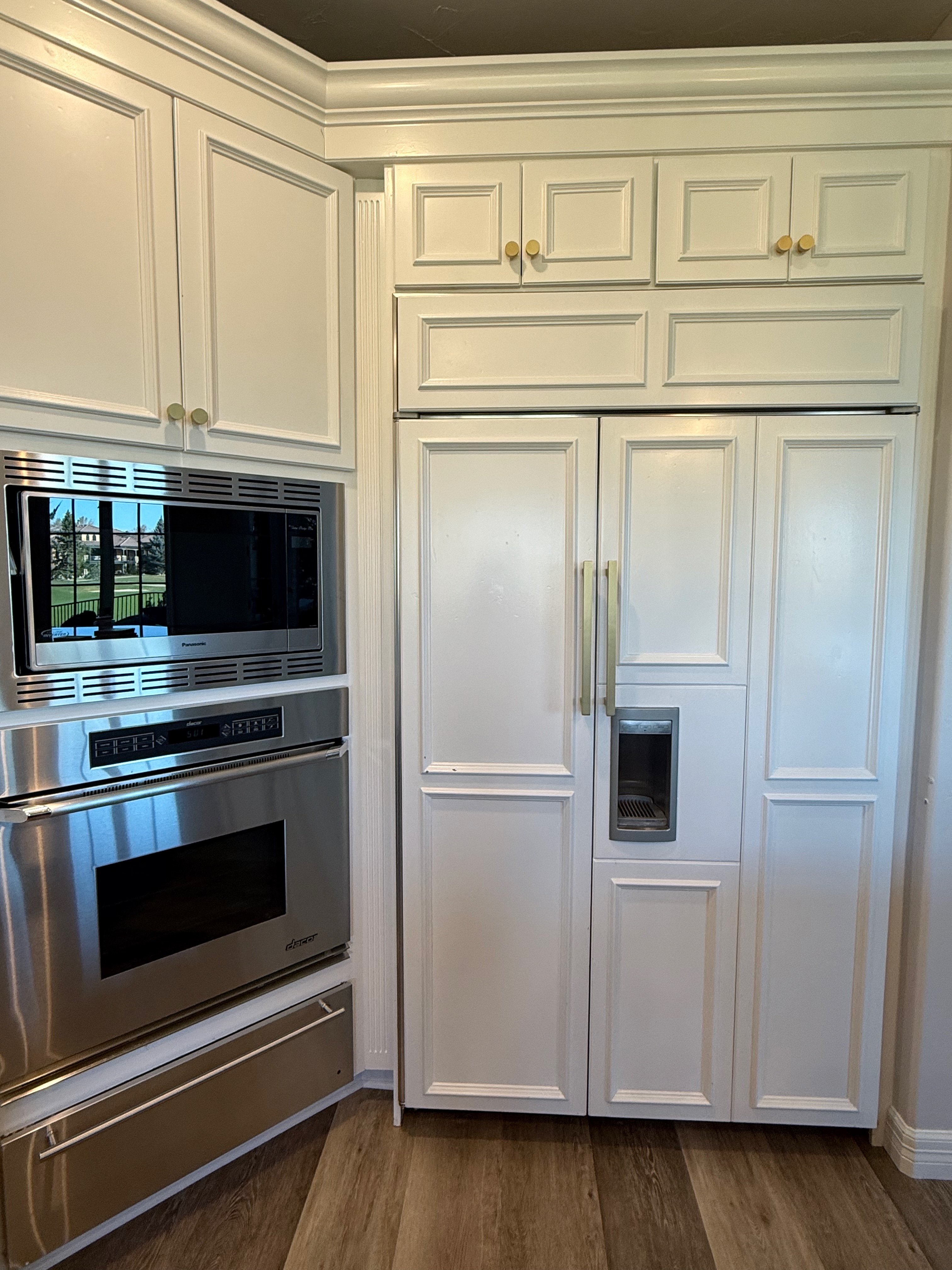2-Two door wall cabinets over the refrigerator Dim.: 24”w x 11 ½”h cab only/18 ½”h w/ crown x 24”d