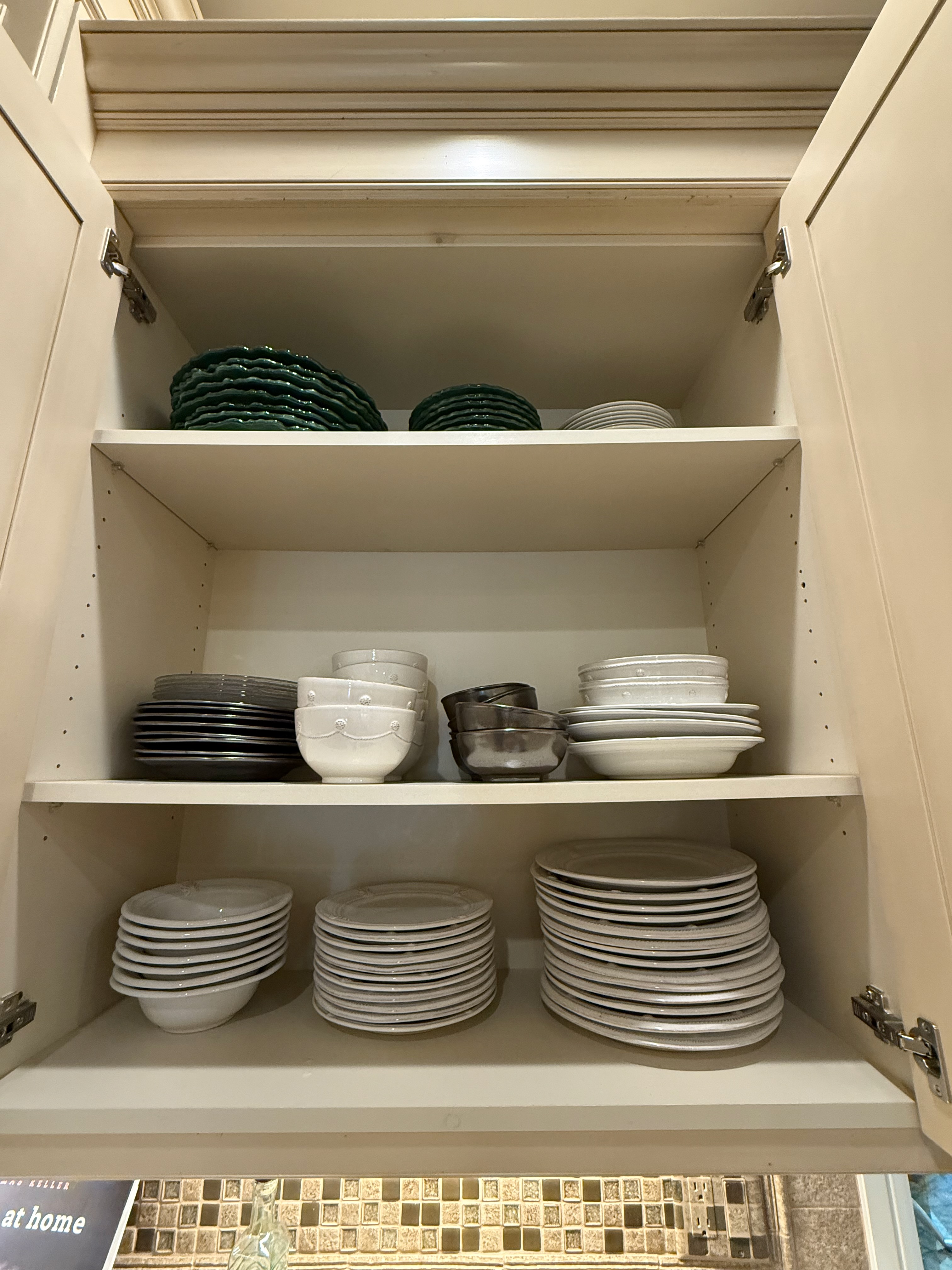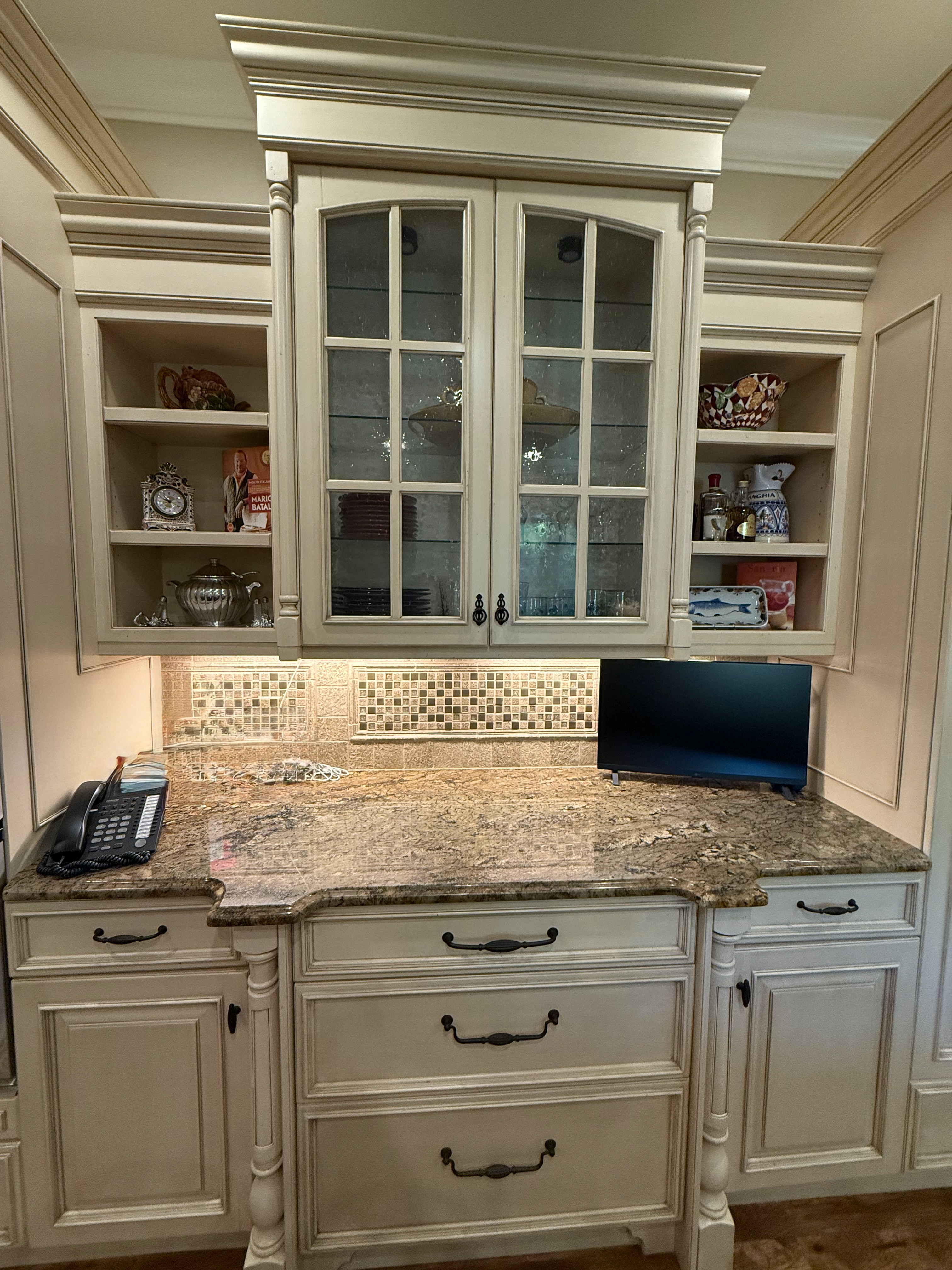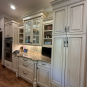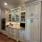 1-Two door wall cabinet on the sink wall Dim.: 42”w x 40”h cab. only/44”h to mid-crown/47 ½”h to top of crown/49”h with the bottom trim x15”d
