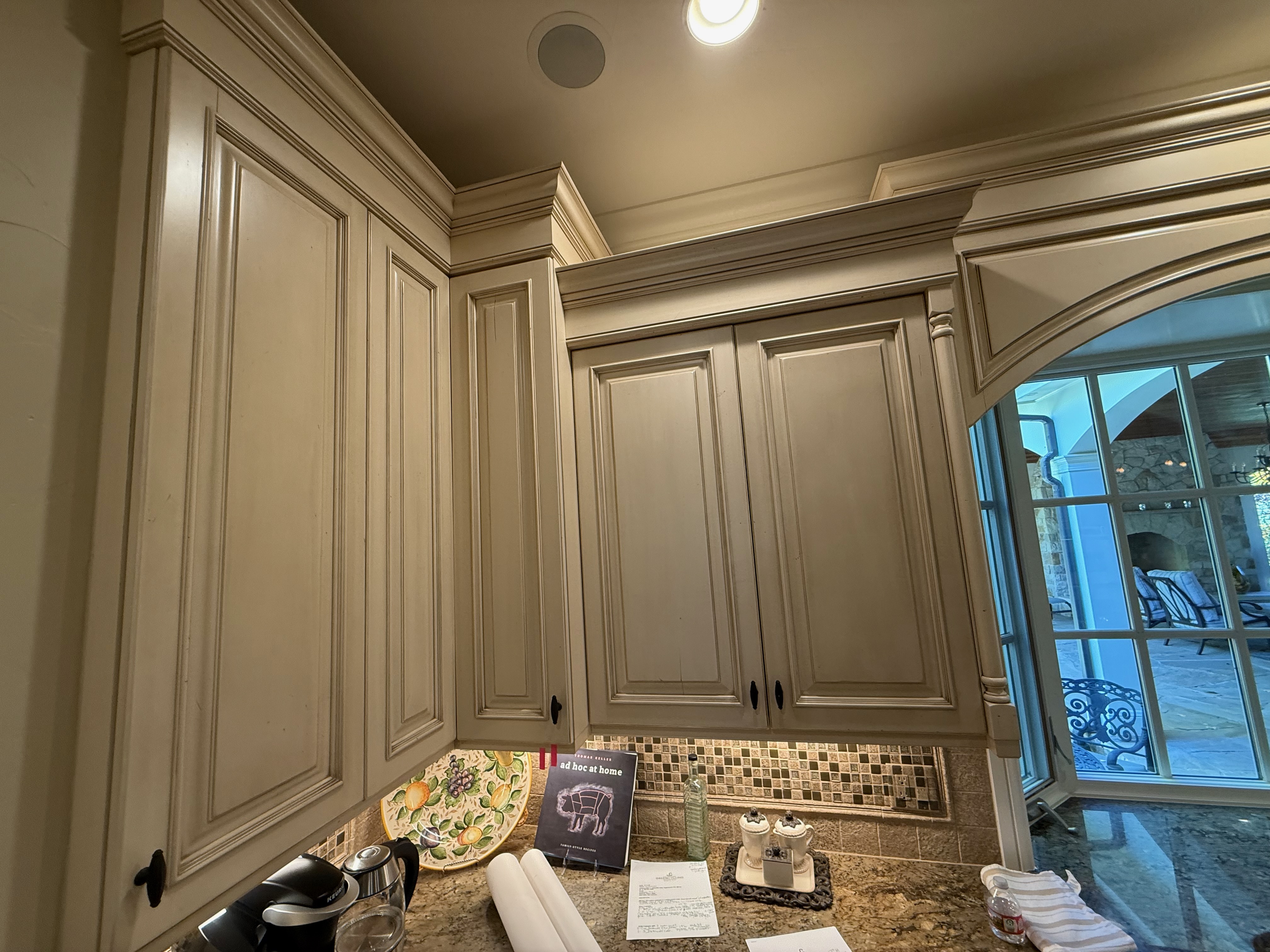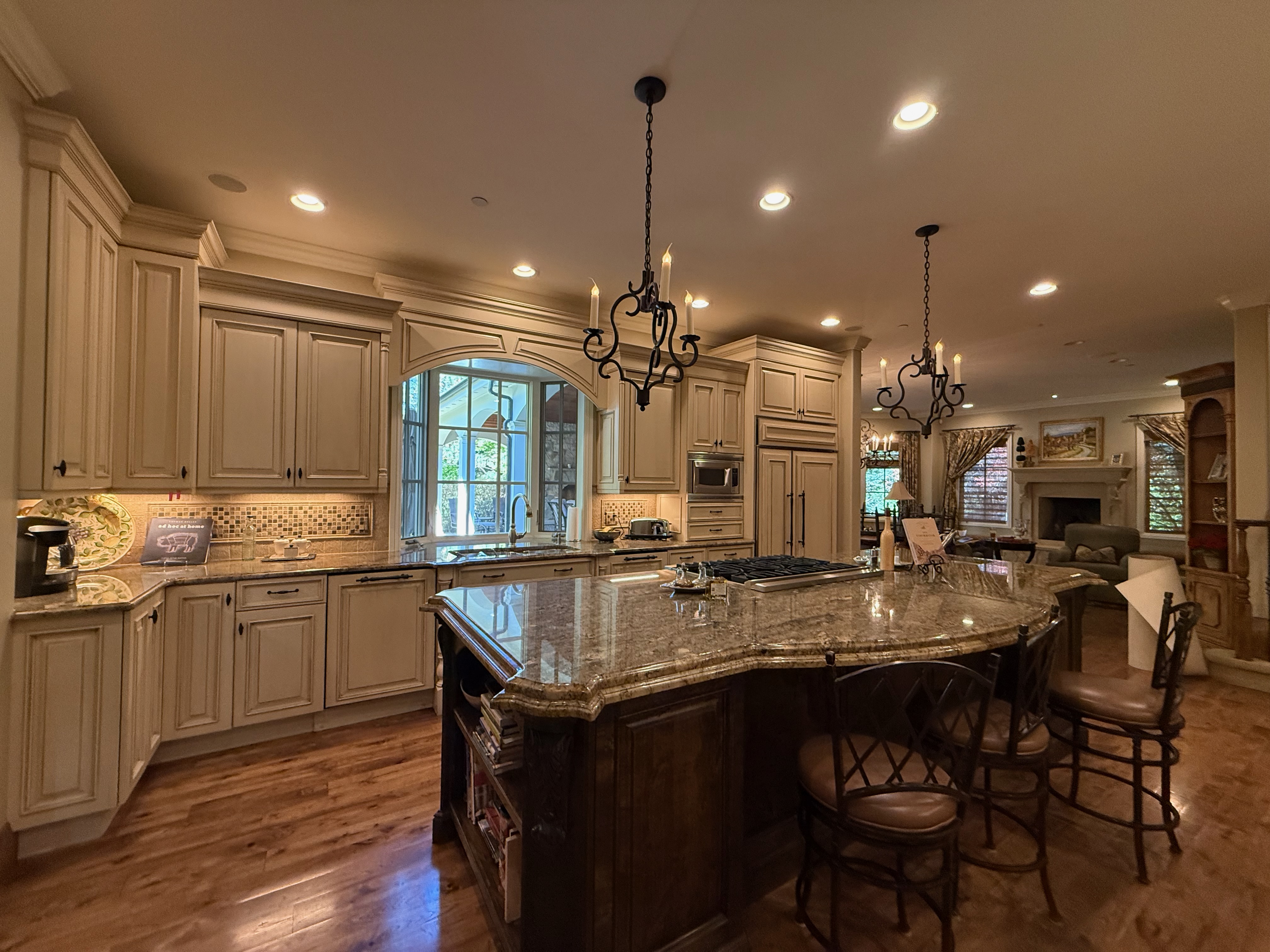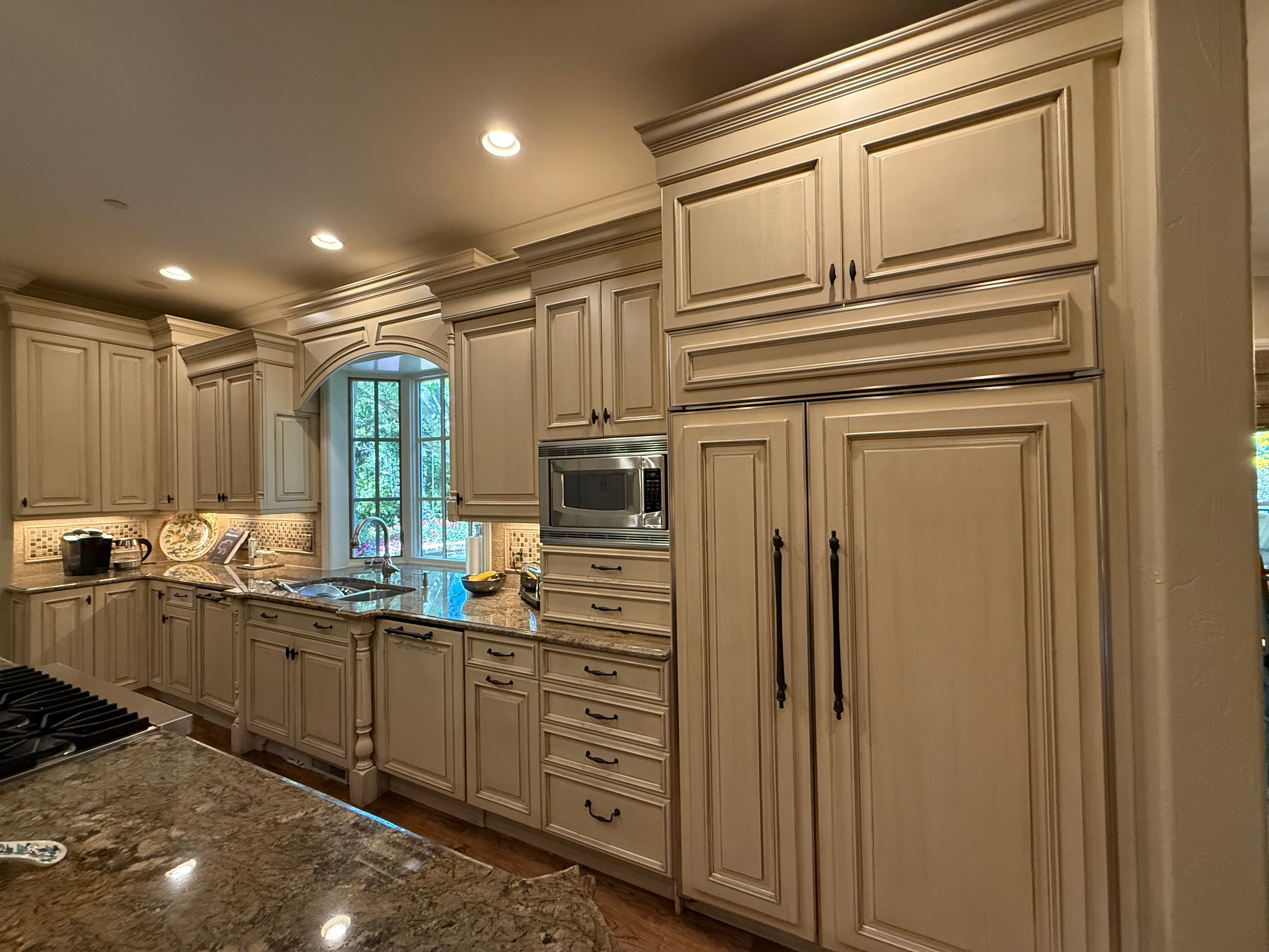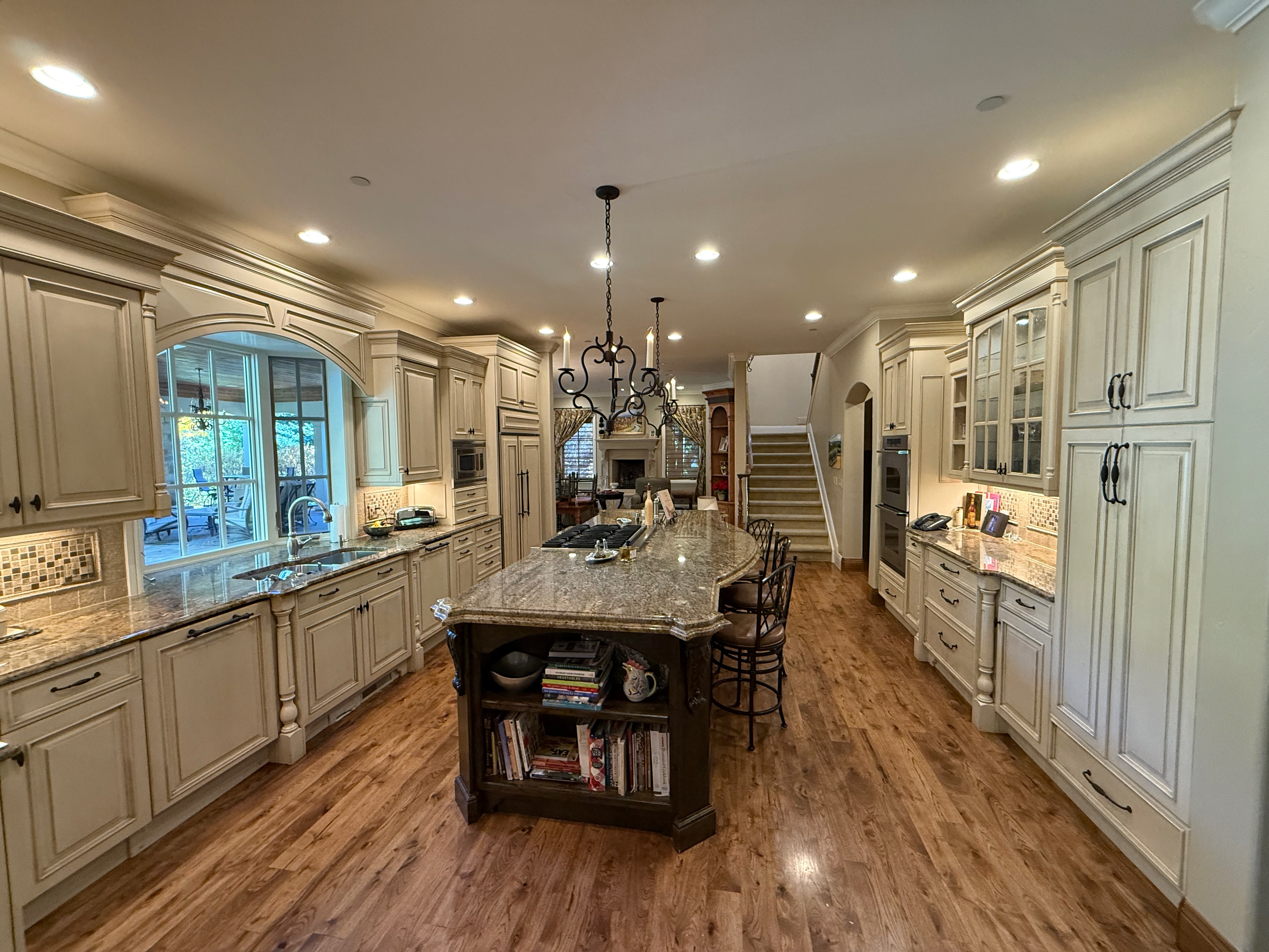 Beautiful William Ohs style, custom made kitchen cabinetry in a warm off-white/cream finish with raised panels. There is a nice large Knotty Alder Wood contrasting island, being the central gathering place of the kitchen. The cabinet drawers have the soft close feature and dove tail joinery. The kitchen package comes with Sub-Zero,Viking, Dacor and KitchenAid appliances. Also included are the slab granite countertops, sinks, faucet sets, disposals, under cabinet lighting and pendant lights. Everything is available to be removed, tbd mid-January 2026, by a licensed contractor or we have licensed contractors available to hire to remove the kitchen and move it to your home. Pricing below.