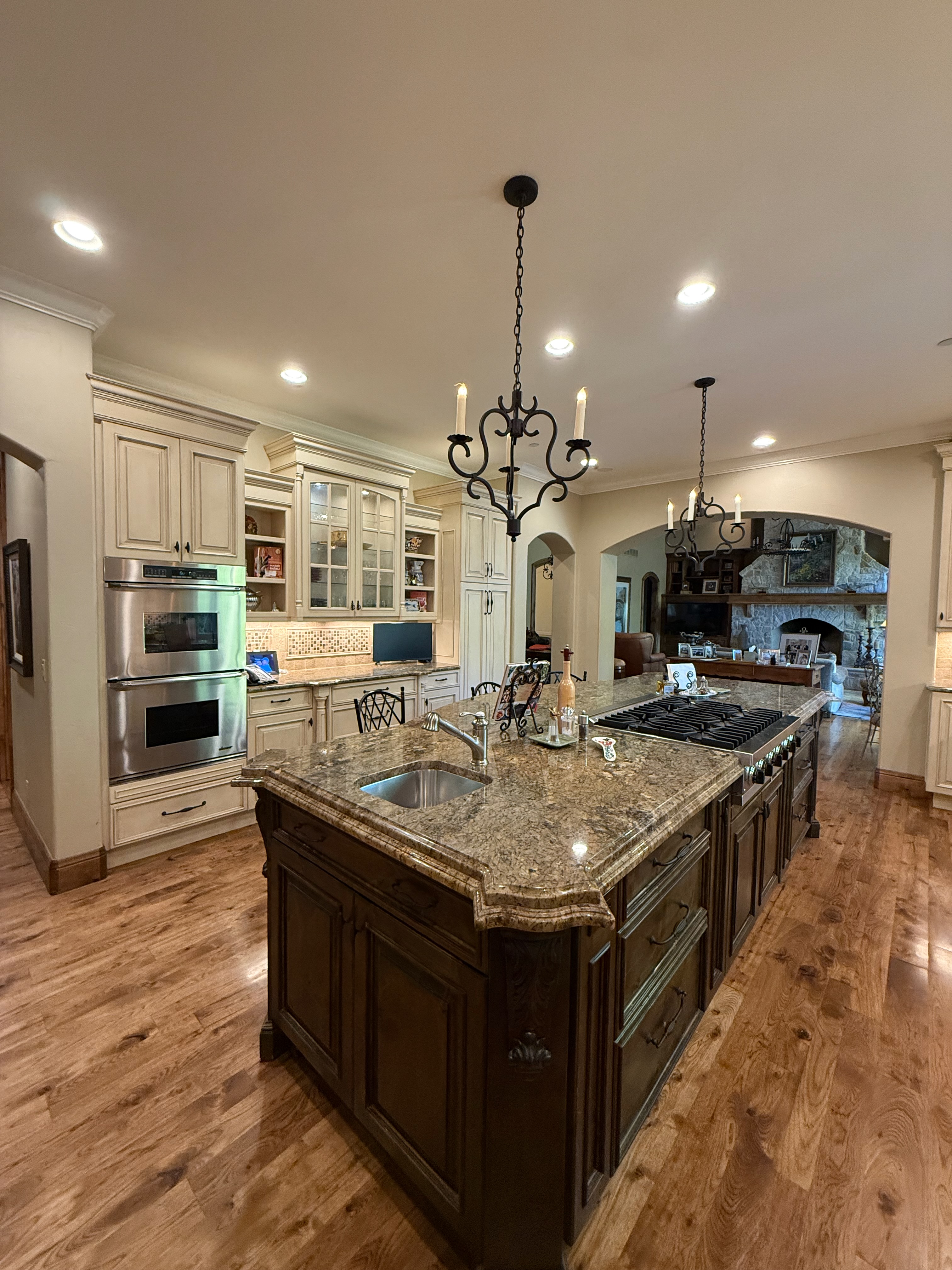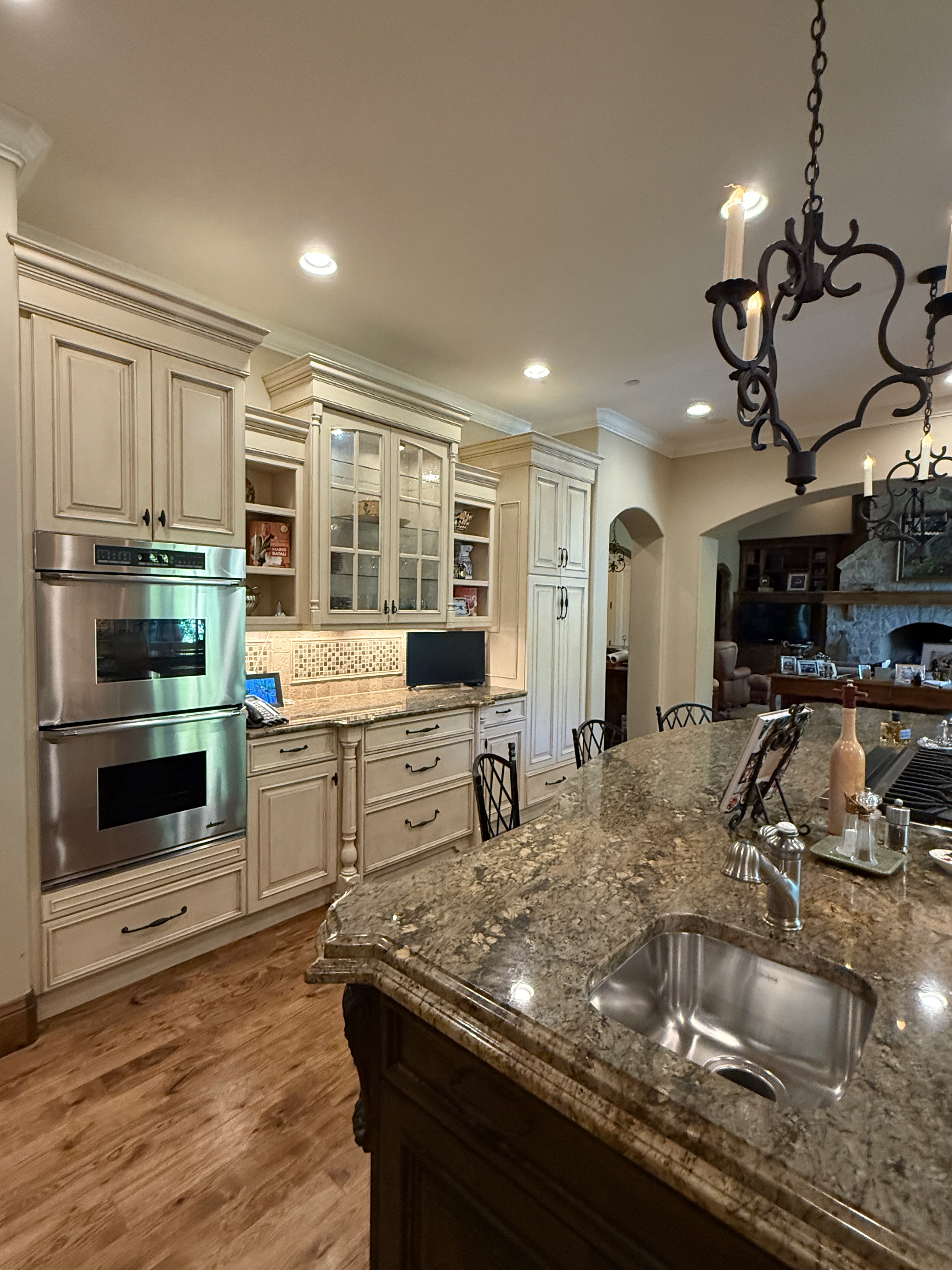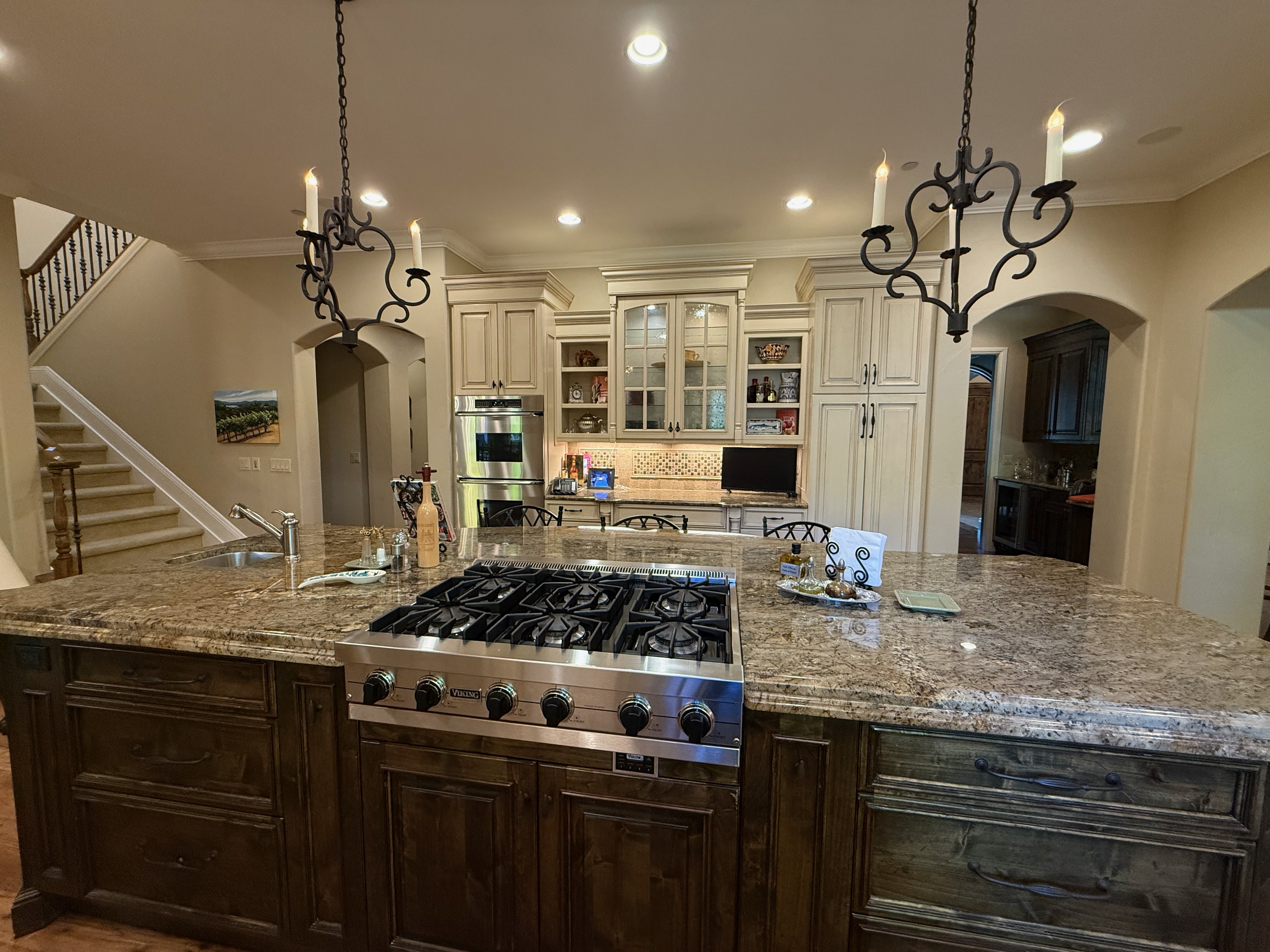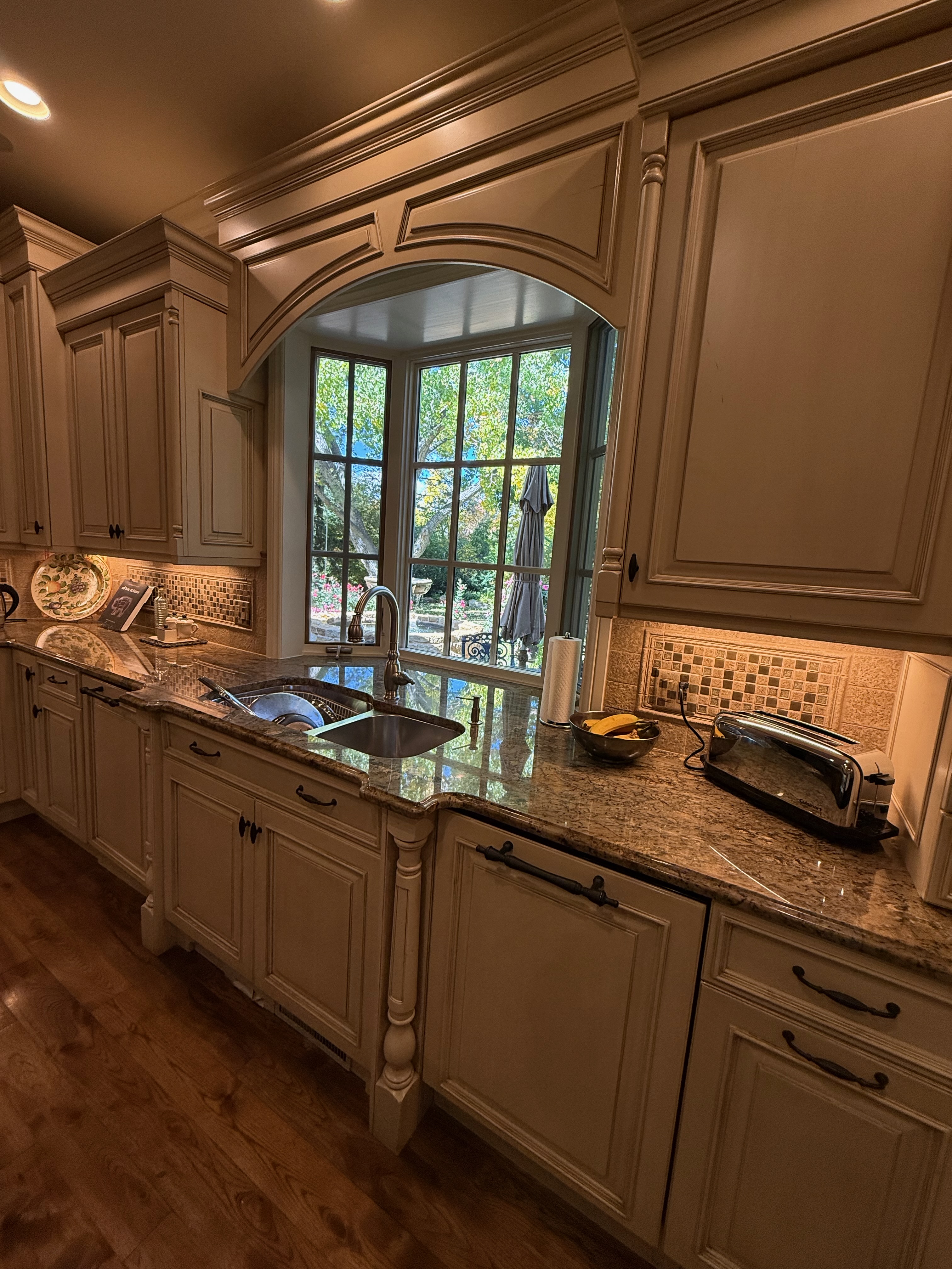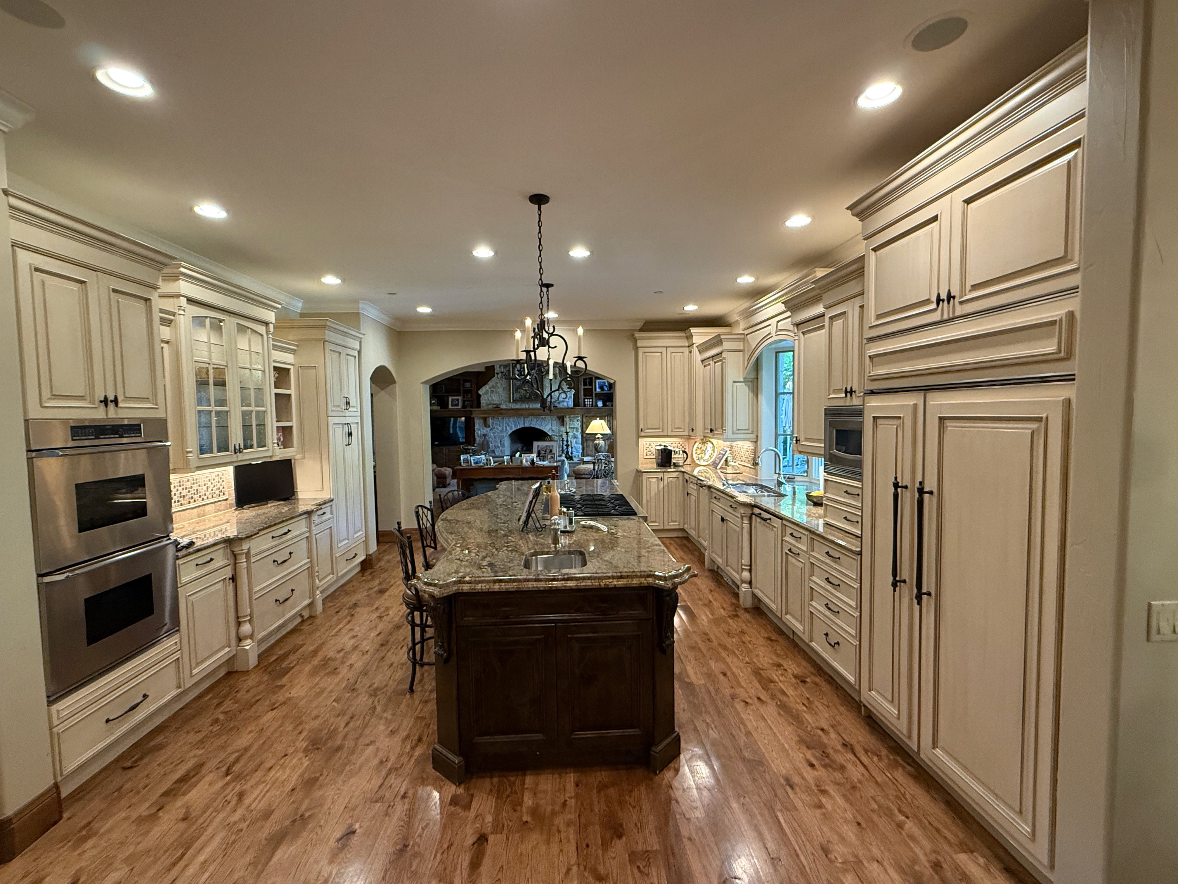 Beautiful William Ohs style, custom made kitchen cabinetry in a warm off-white/cream finish with raised panels. There is a nice large Knotty Alder Wood contrasting island, being the central gathering place of the kitchen. The cabinet drawers have the soft close feature and dove tail joinery. The kitchen package comes with Sub-Zero,Viking, Dacor and KitchenAid appliances. Also included are the slab granite countertops, sinks, faucet sets, disposals, under cabinet lighting and pendant lights. Everything is available to be removed, tbd mid-January 2026, by a licensed contractor or we have licensed contractors available to hire to remove the kitchen and move it to your home. Pricing below.