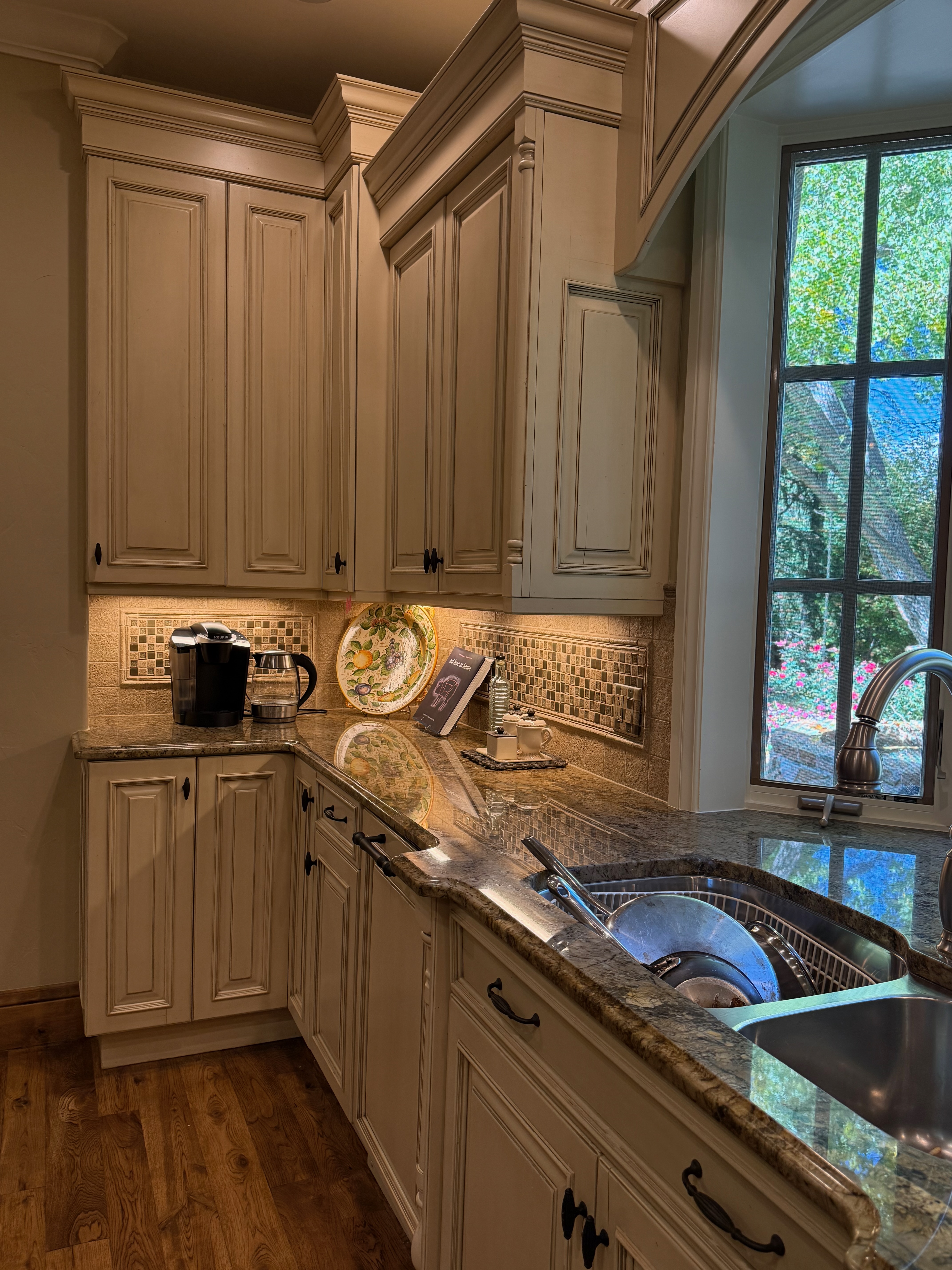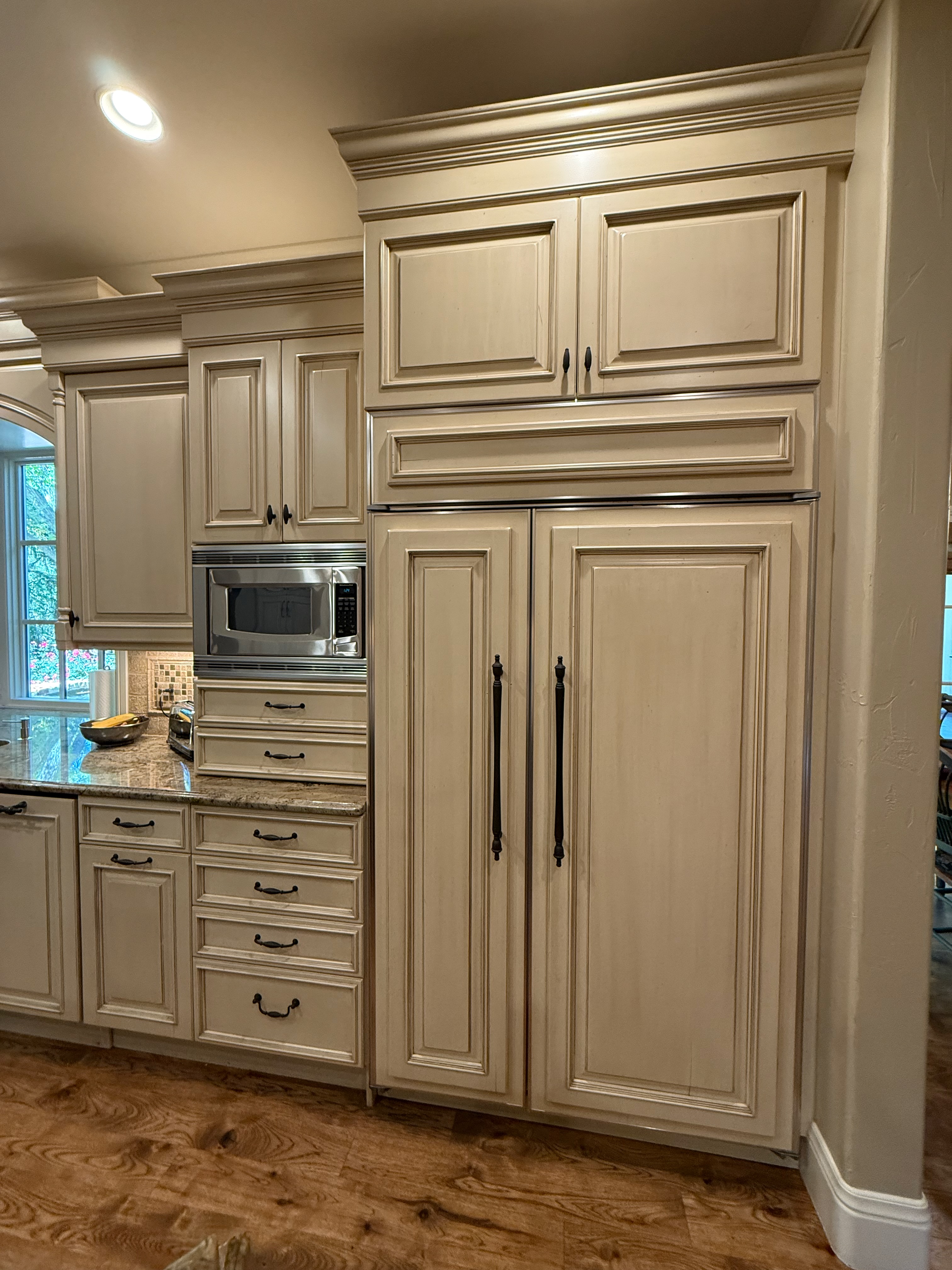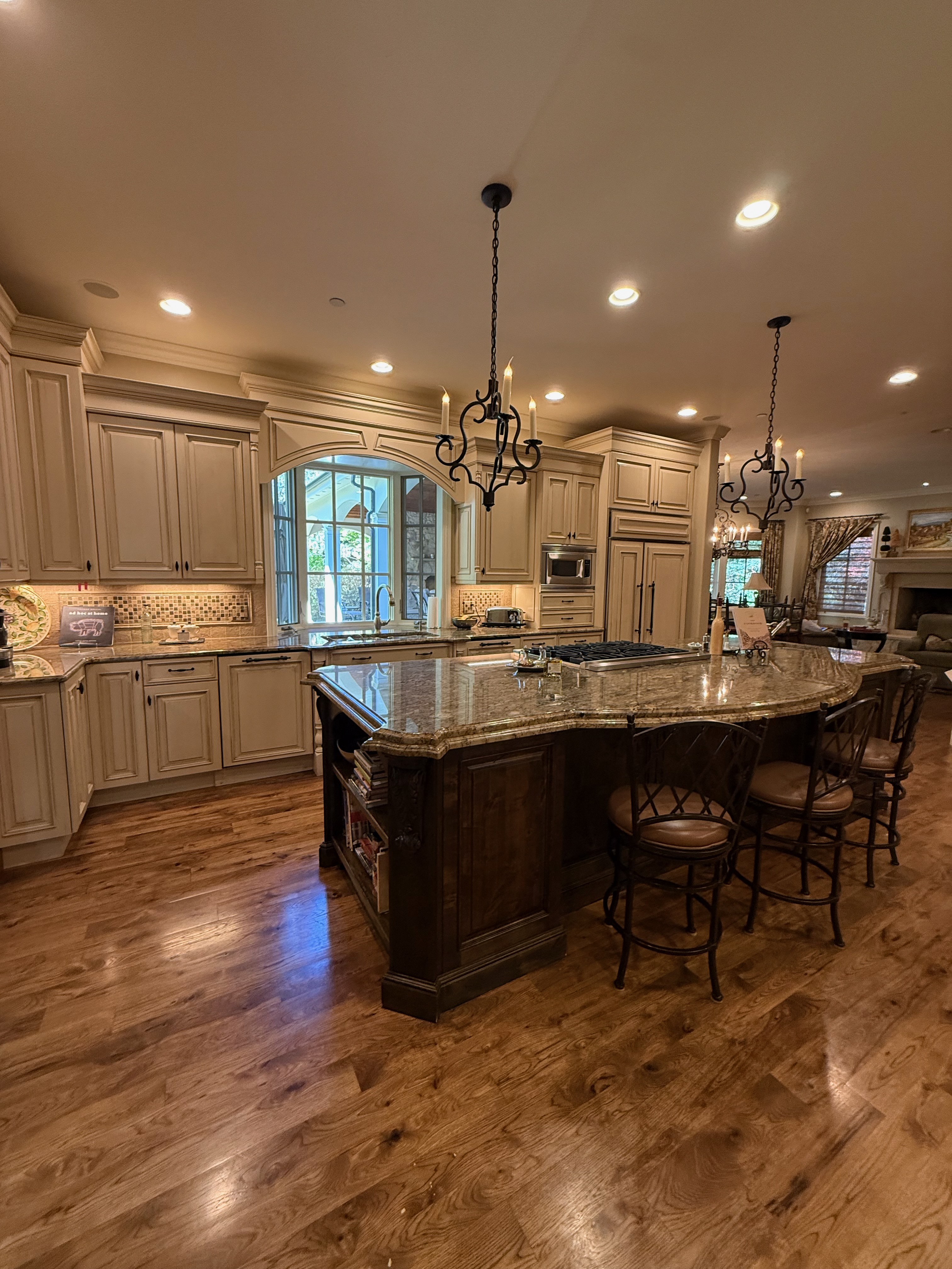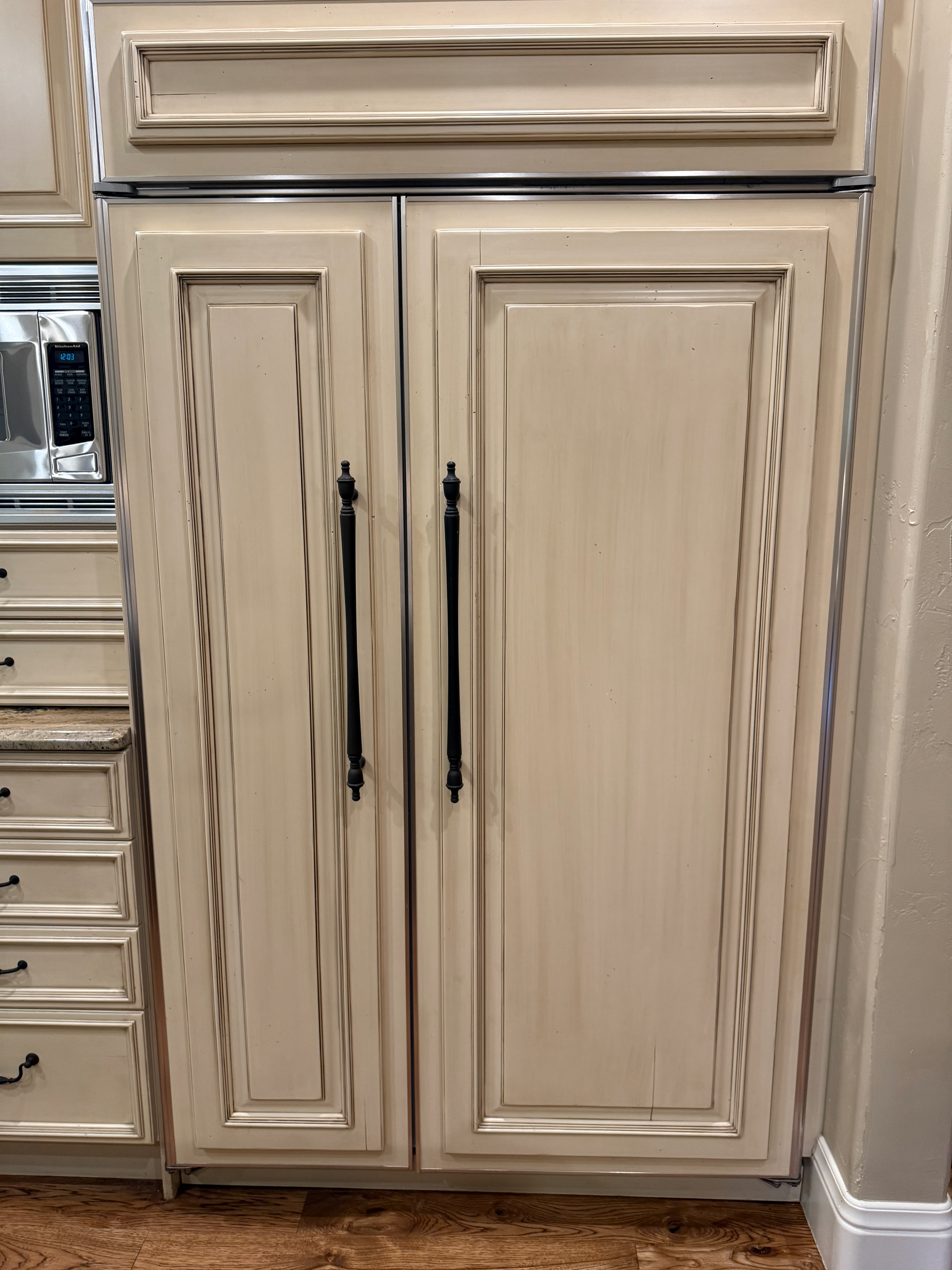 Beautiful William Ohs style, custom made kitchen cabinetry in a warm off-white/cream finish with raised panels. There is a nice large Knotty Alder Wood contrasting island, being the central gathering place of the kitchen. The cabinet drawers have the soft close feature and dove tail joinery. The kitchen package comes with Sub-Zero,Viking, Dacor and KitchenAid appliances. Also included are the slab granite countertops, sinks, faucet sets, disposals, under cabinet lighting and pendant lights. Everything is available to be removed, tbd mid-January 2026, by a licensed contractor or we have licensed contractors available to hire to remove the kitchen and move it to your home. Pricing below.
