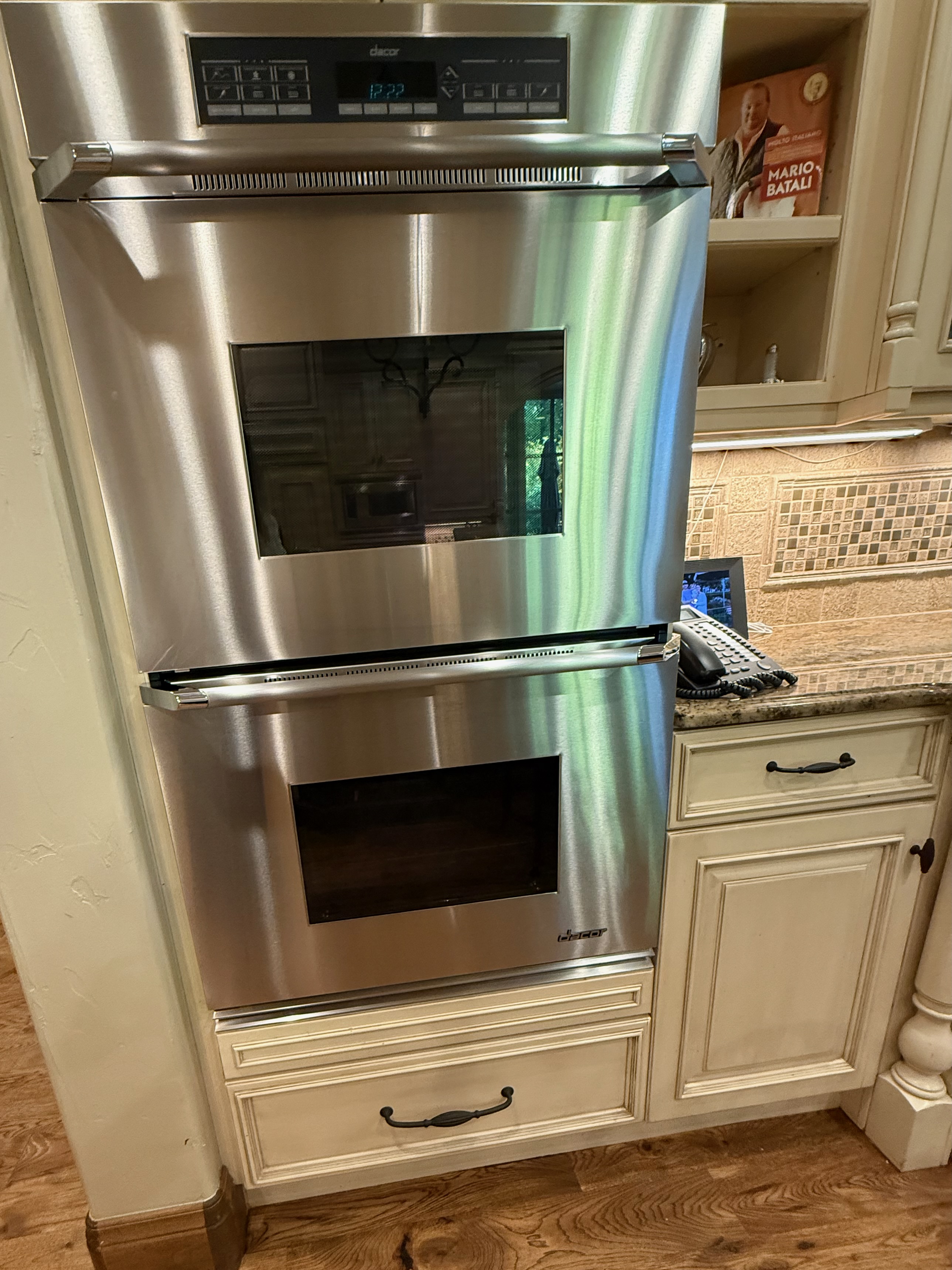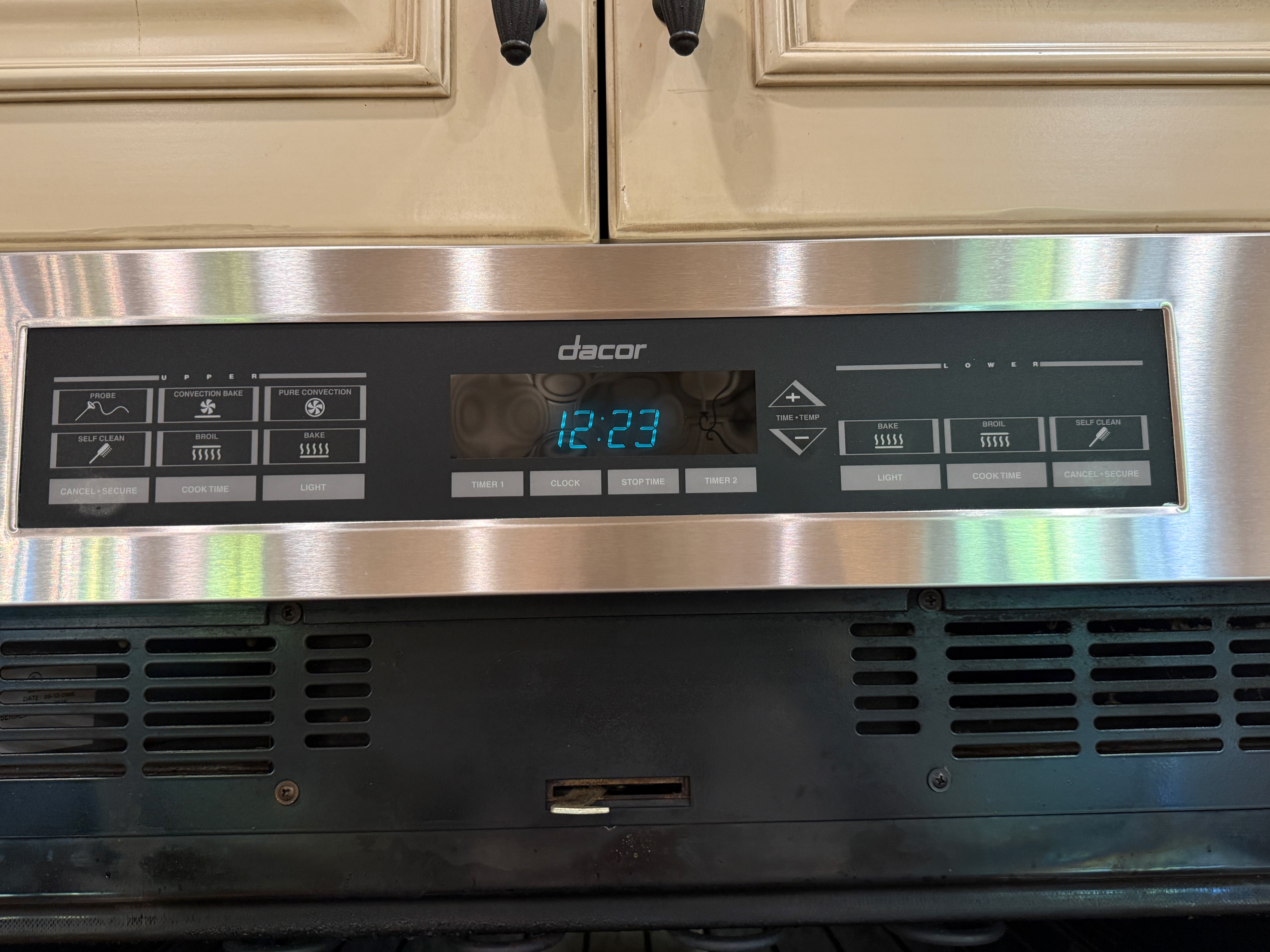 30” Dacor Stainless Steel Double electric wall Oven Model #ECS230SCH 3.9/4.4 cu. ft. Self-Cleaning Convection Ovens, Electronic Controls and a Butterfly Baking Element in Each Oven, Listing price new $3,299