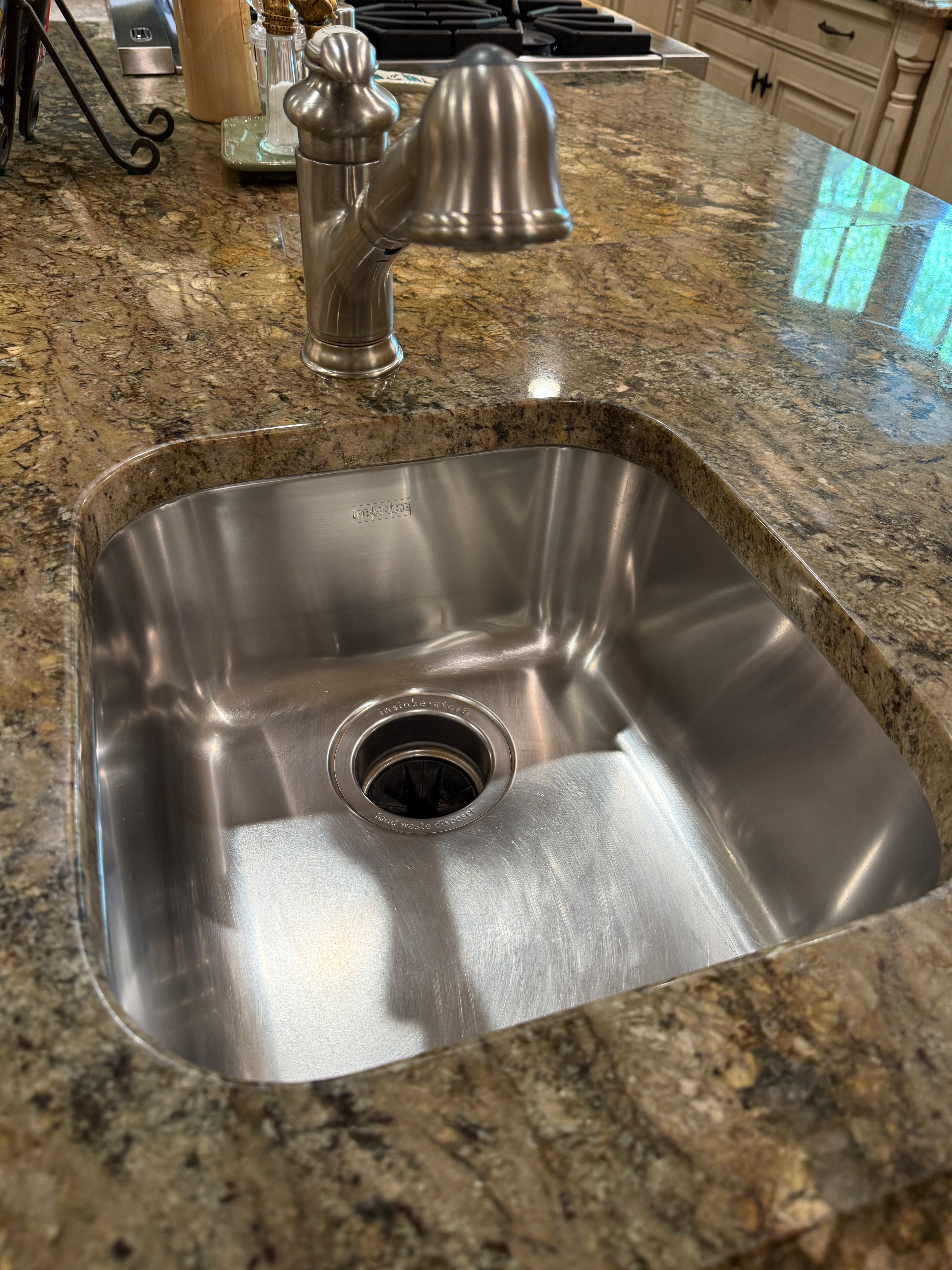 1-One false drawer, two door prep sink base cabinet at the end of the island Dim.: 37”w/38”w x 36 ½”h/38”h x 24”d, Frnke under mount sink and Kohler faucet set