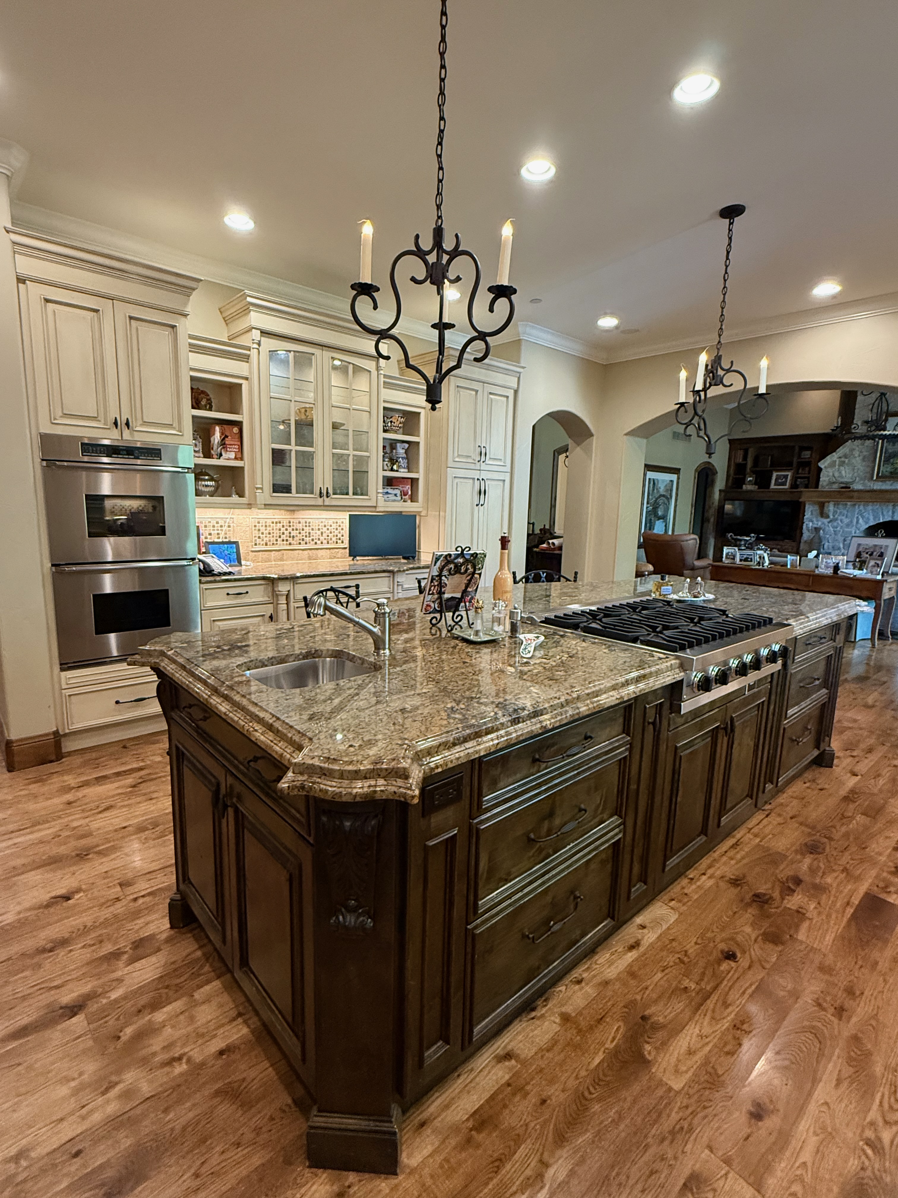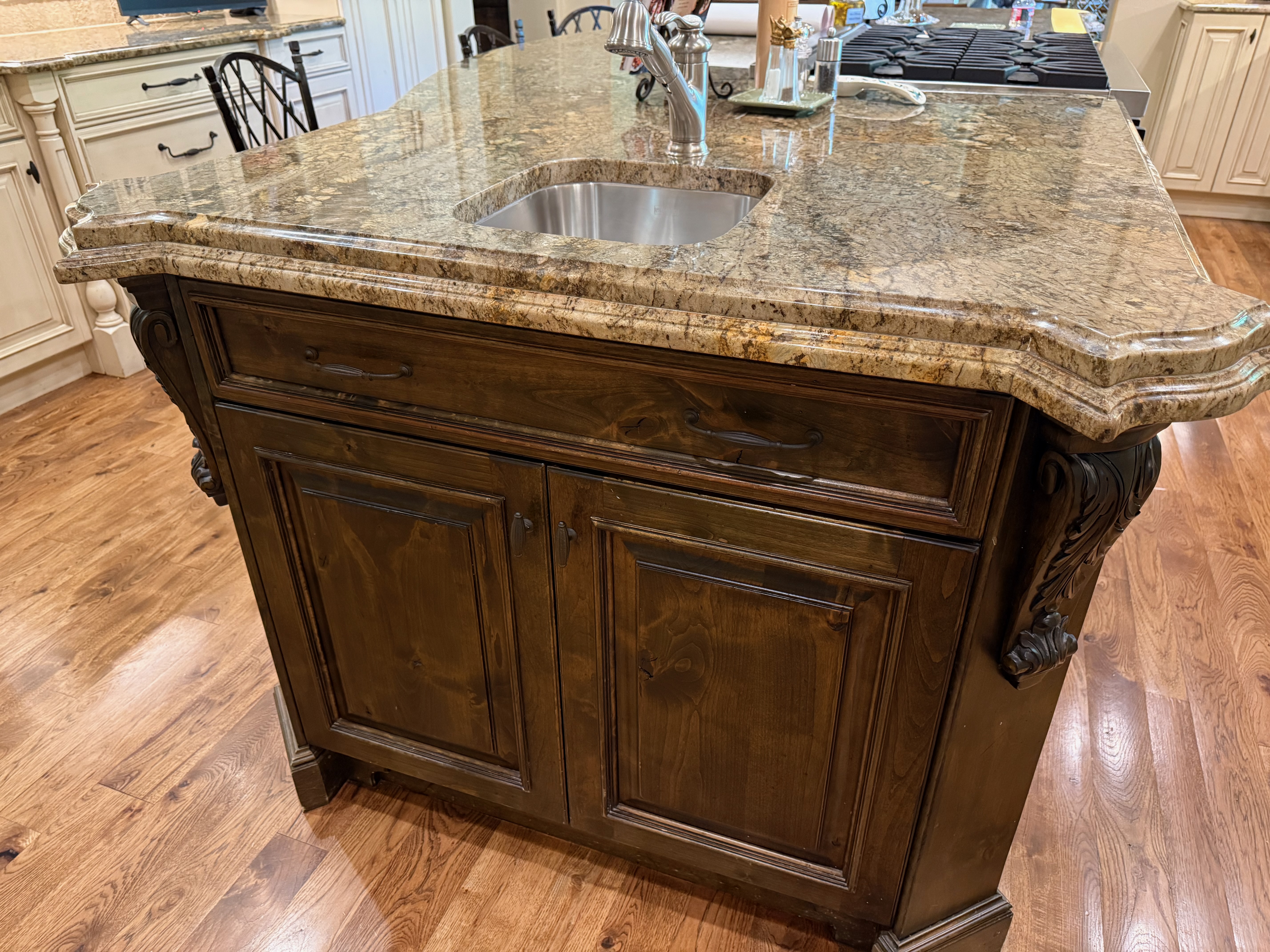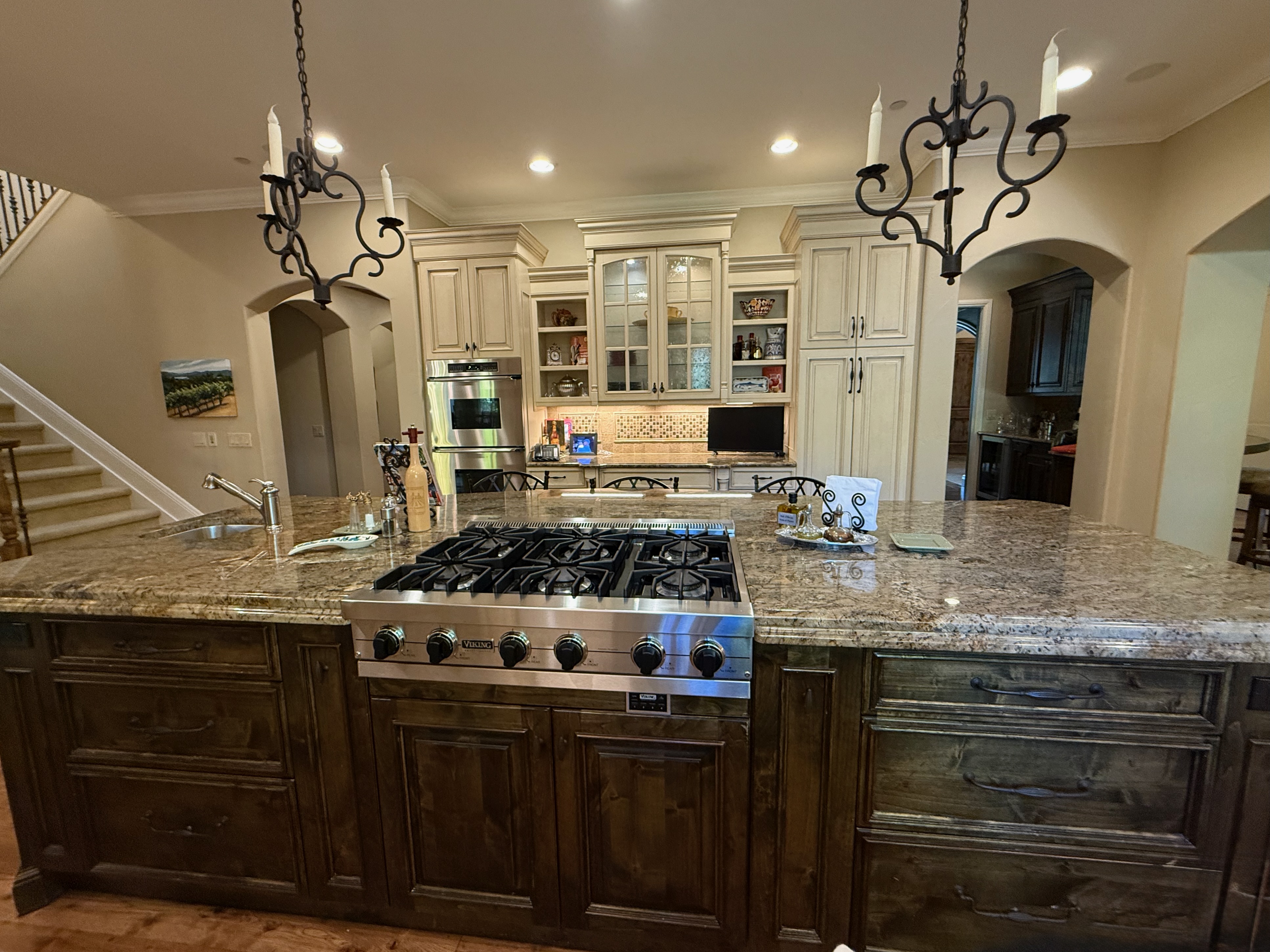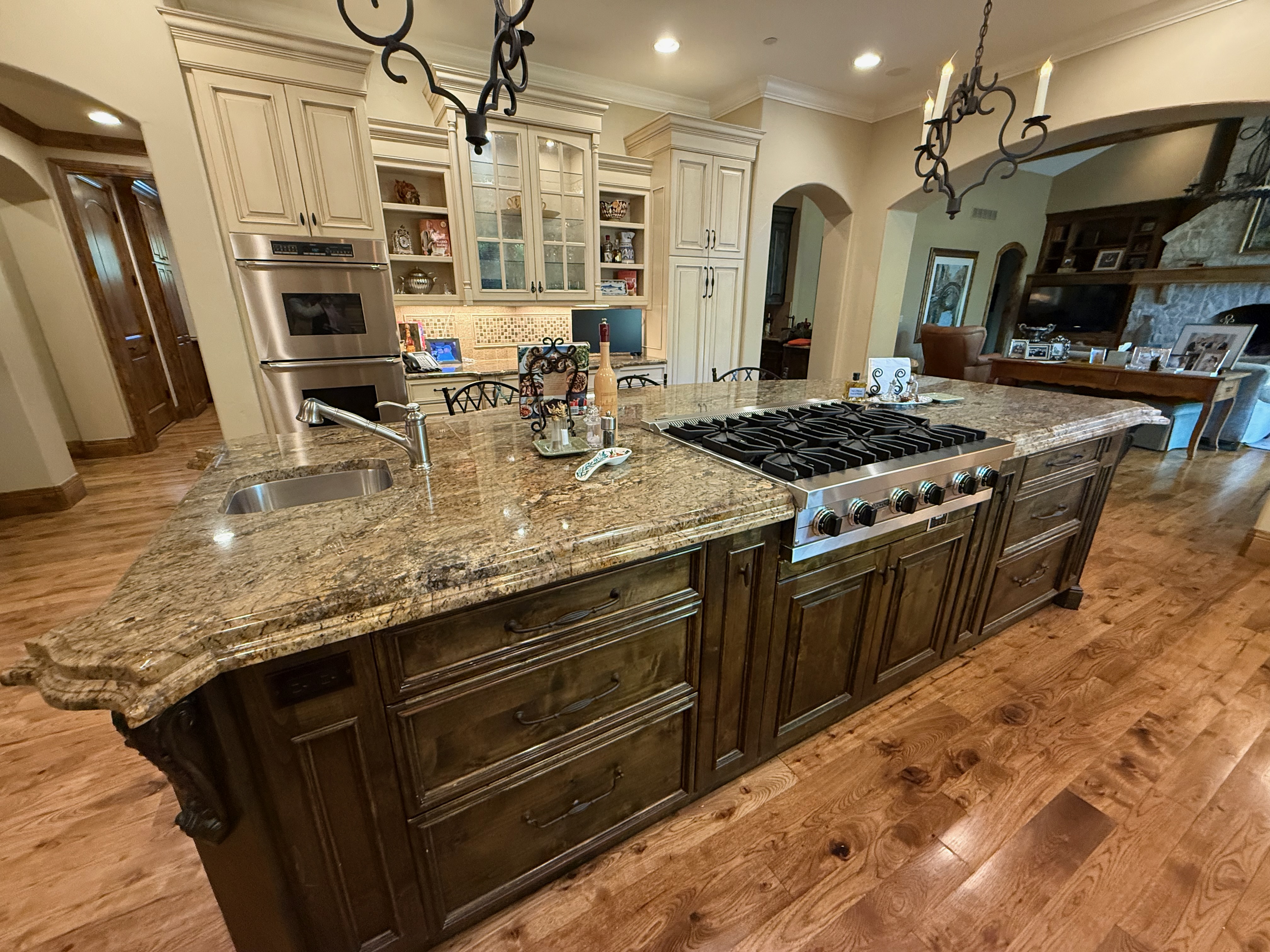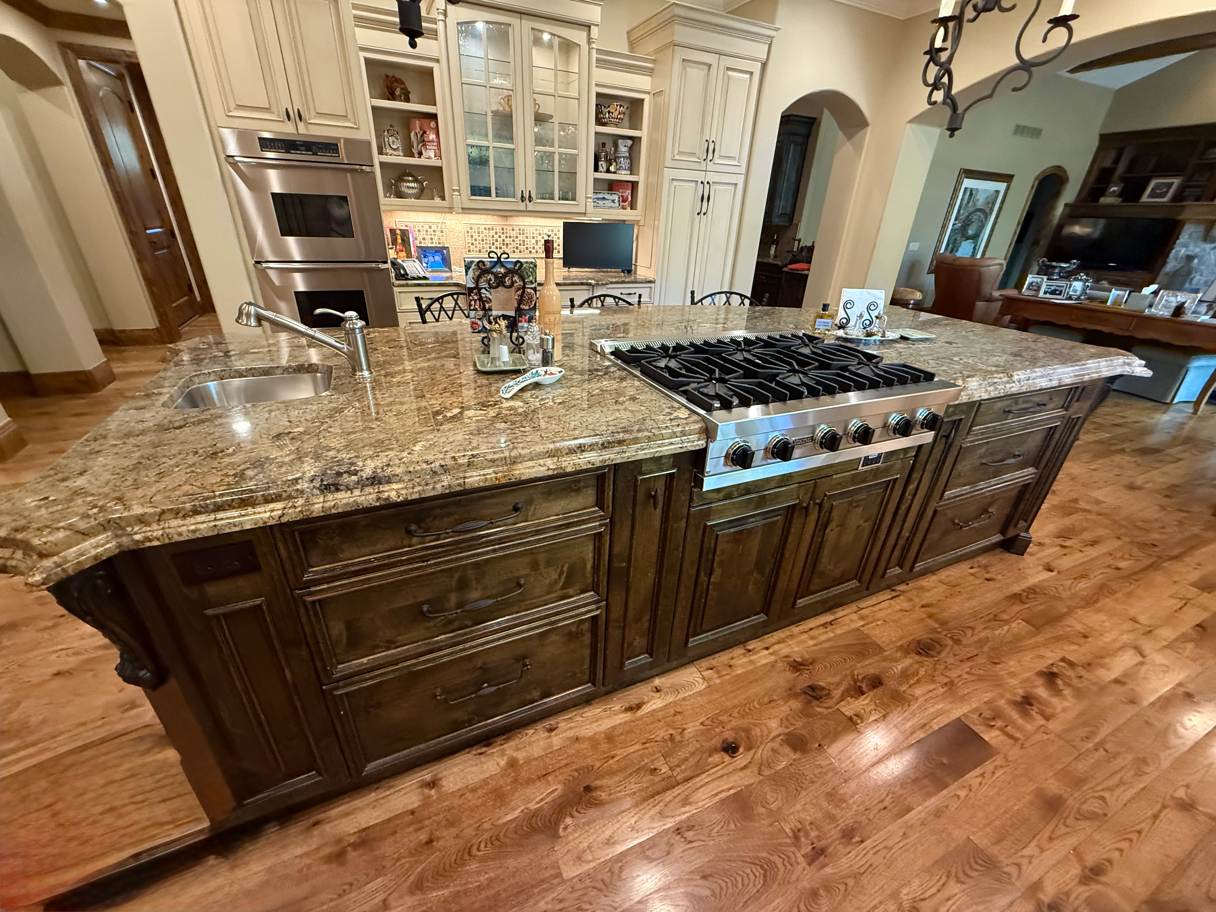 ISLAND-Contrasting Knotty Alder Wood Cabinets
