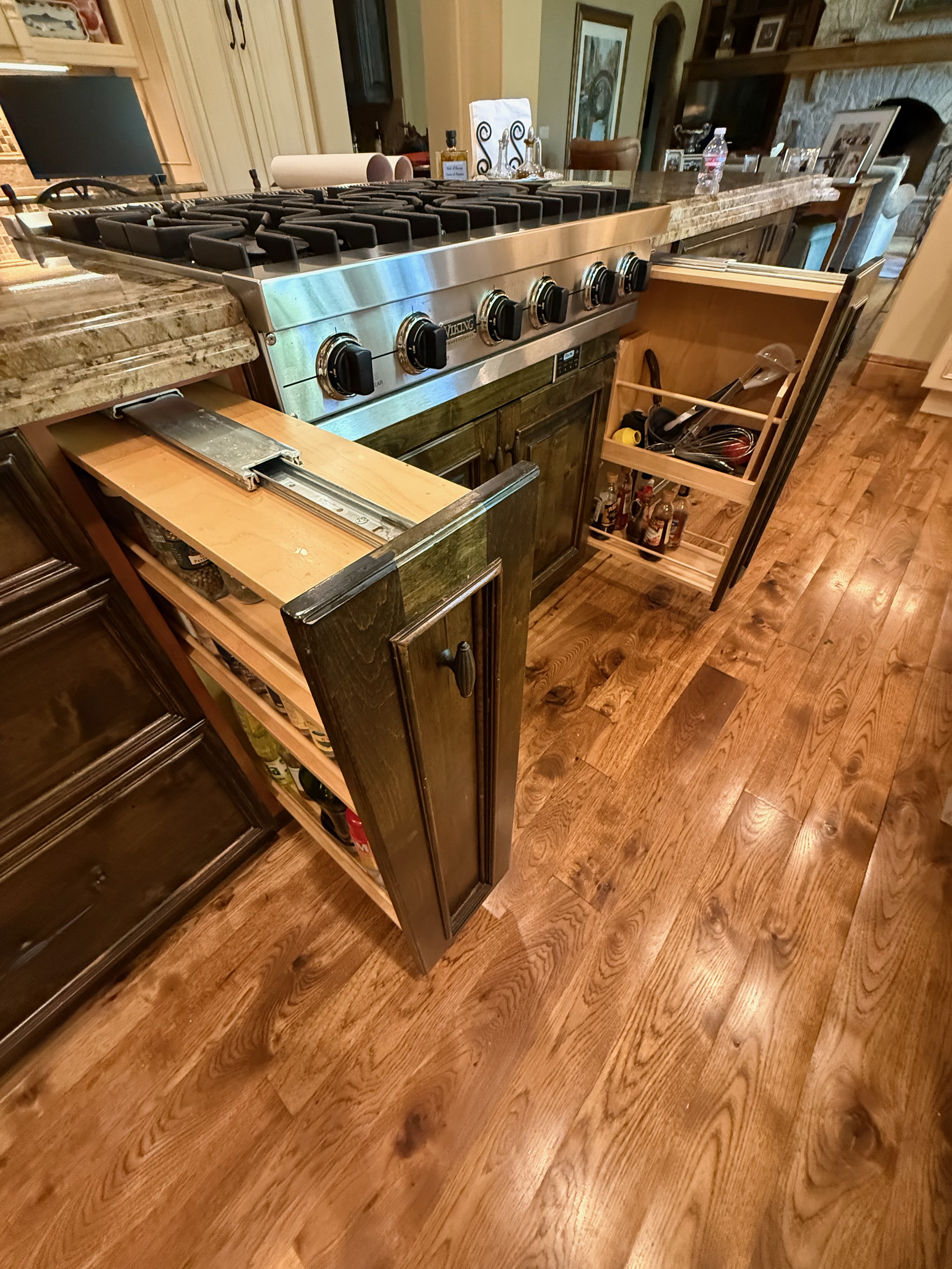 2-One door spice/supply pull outs on either side of the range top Dim.: 9”w x x 36 ½”h/38”h x 24”d