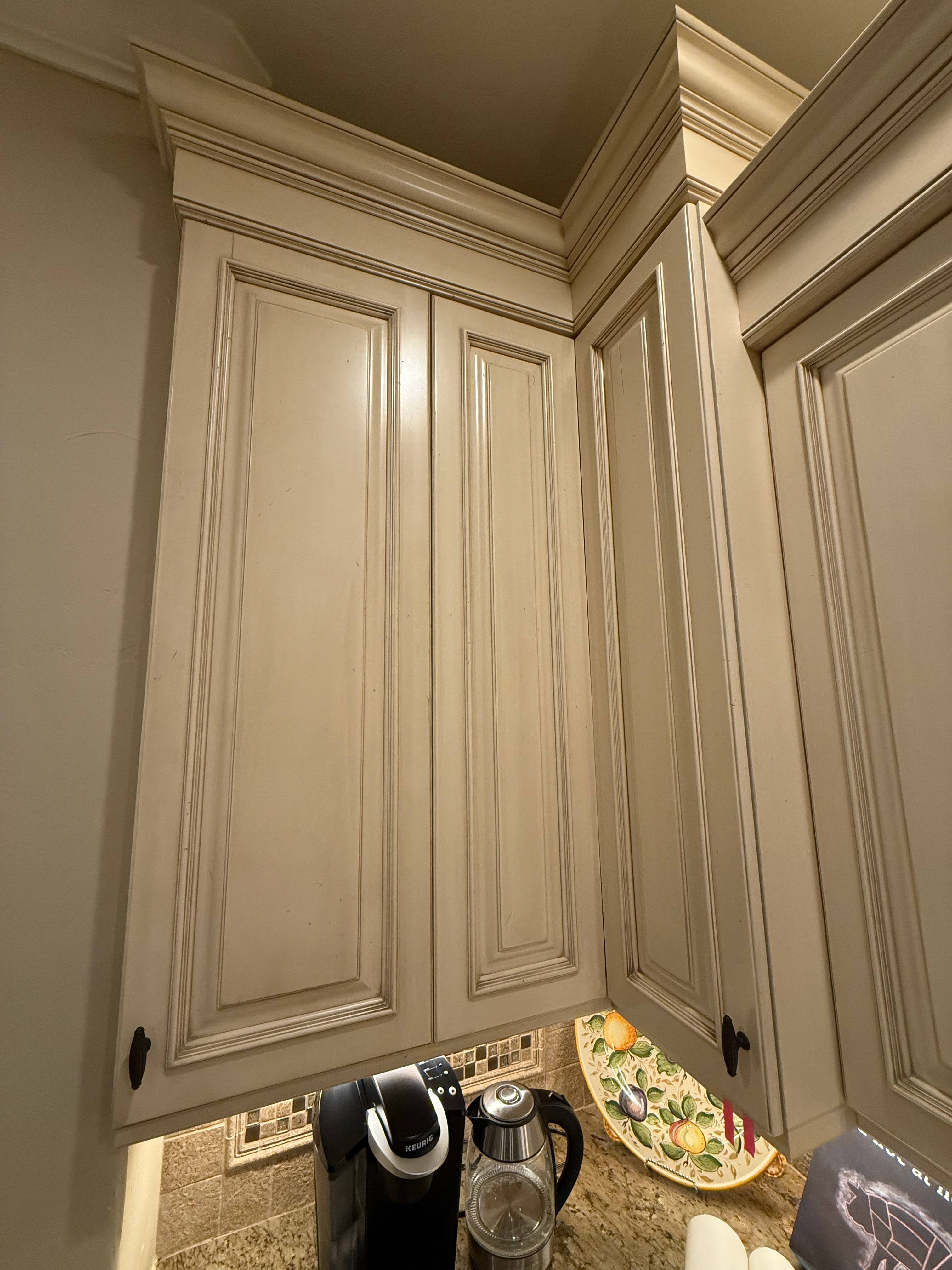 1-Four door, one drawer double tall pantry cabinet w/ four pull-out drawers inside Dim.; 30” w x 97 ¾”h cabinet only/102”h to center crown/106”h to the top crown x 24”d