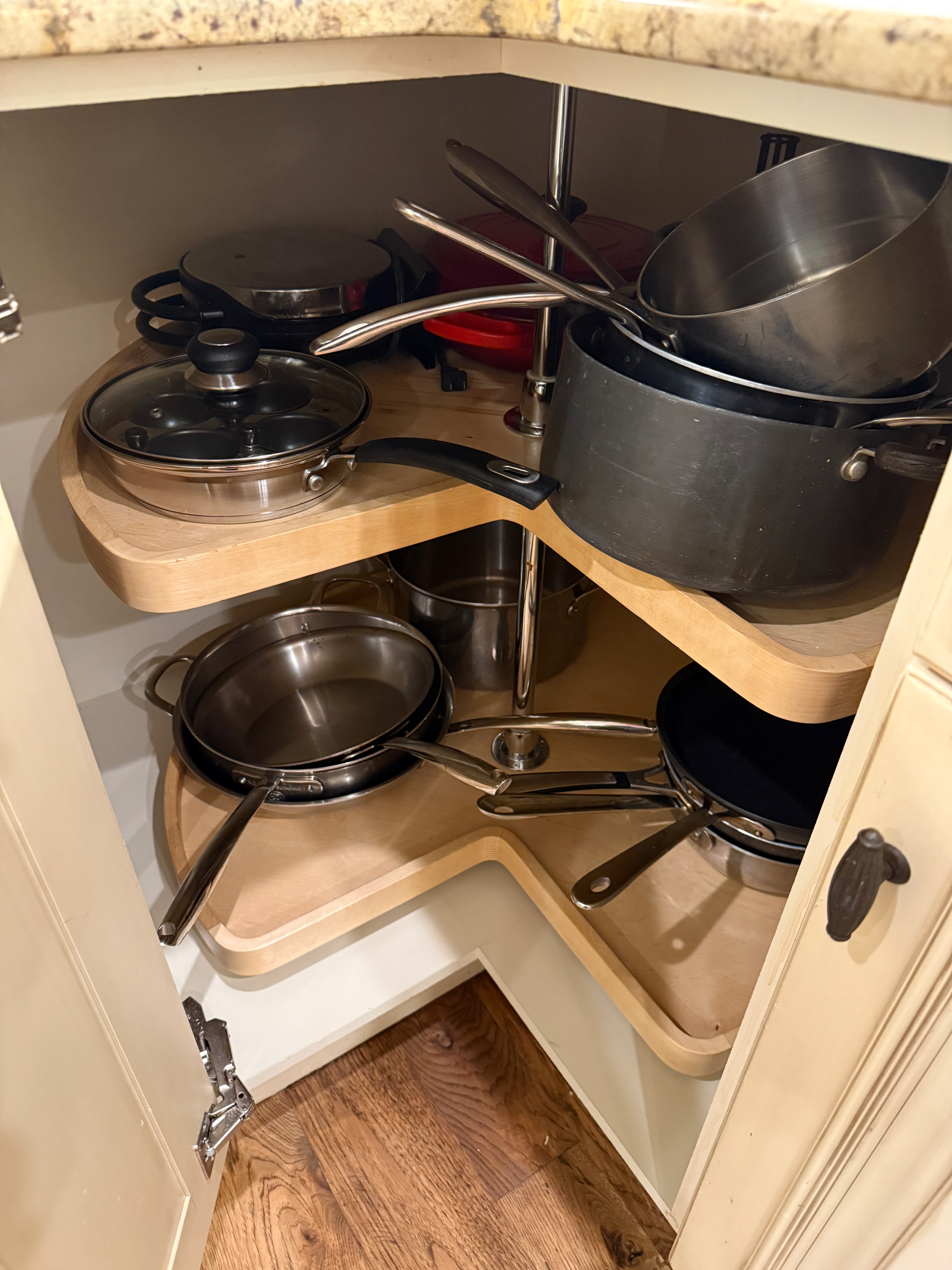 1-Lazy Susan base cabinet Dim.: 36” w x 36 1/2”/38”h w/ counter x 24” d