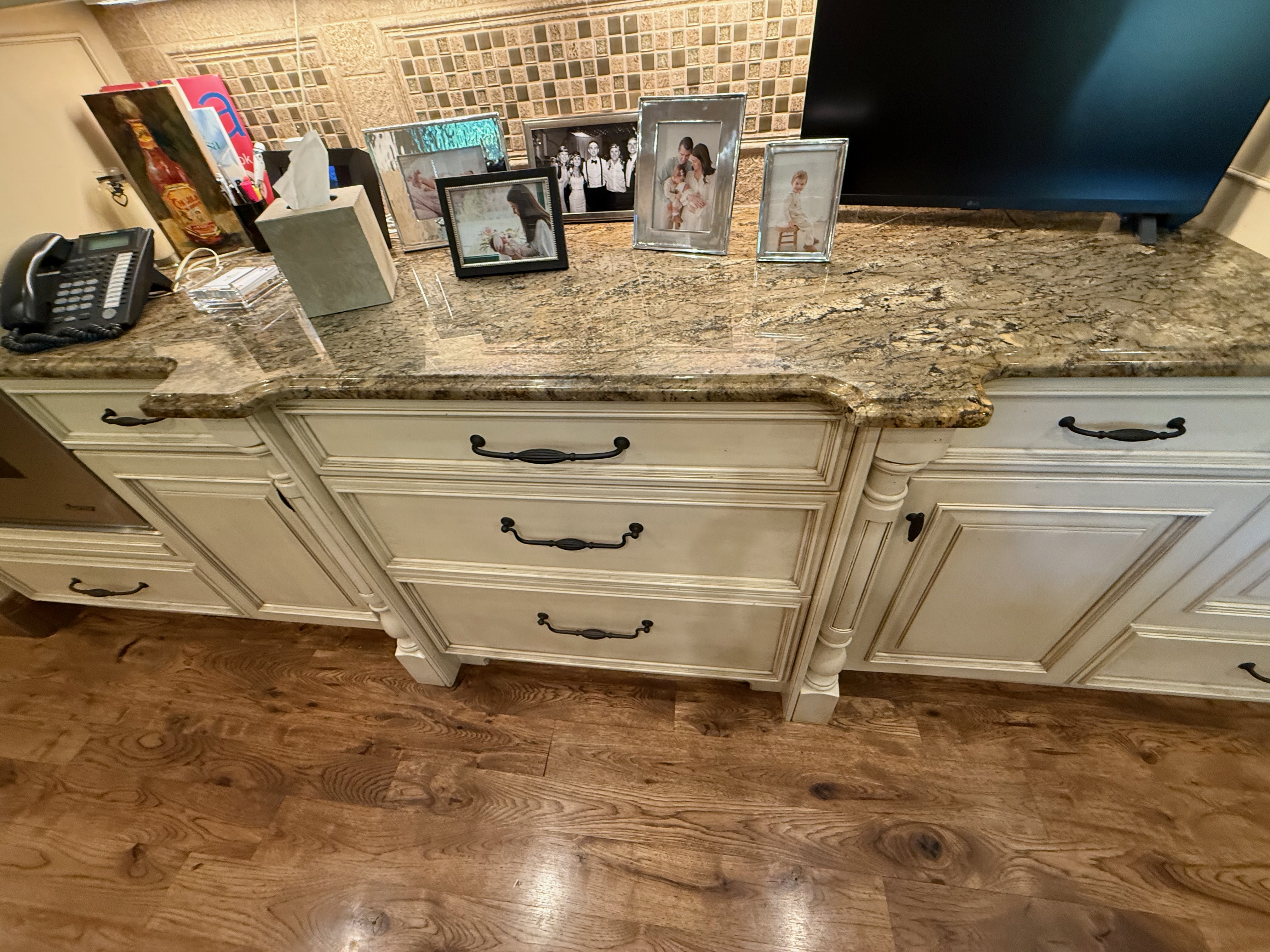 EXCLUSIONS: Wet Bar Fridge, Wet Bar Ice Maker and Wet Bar Brass covered bar top