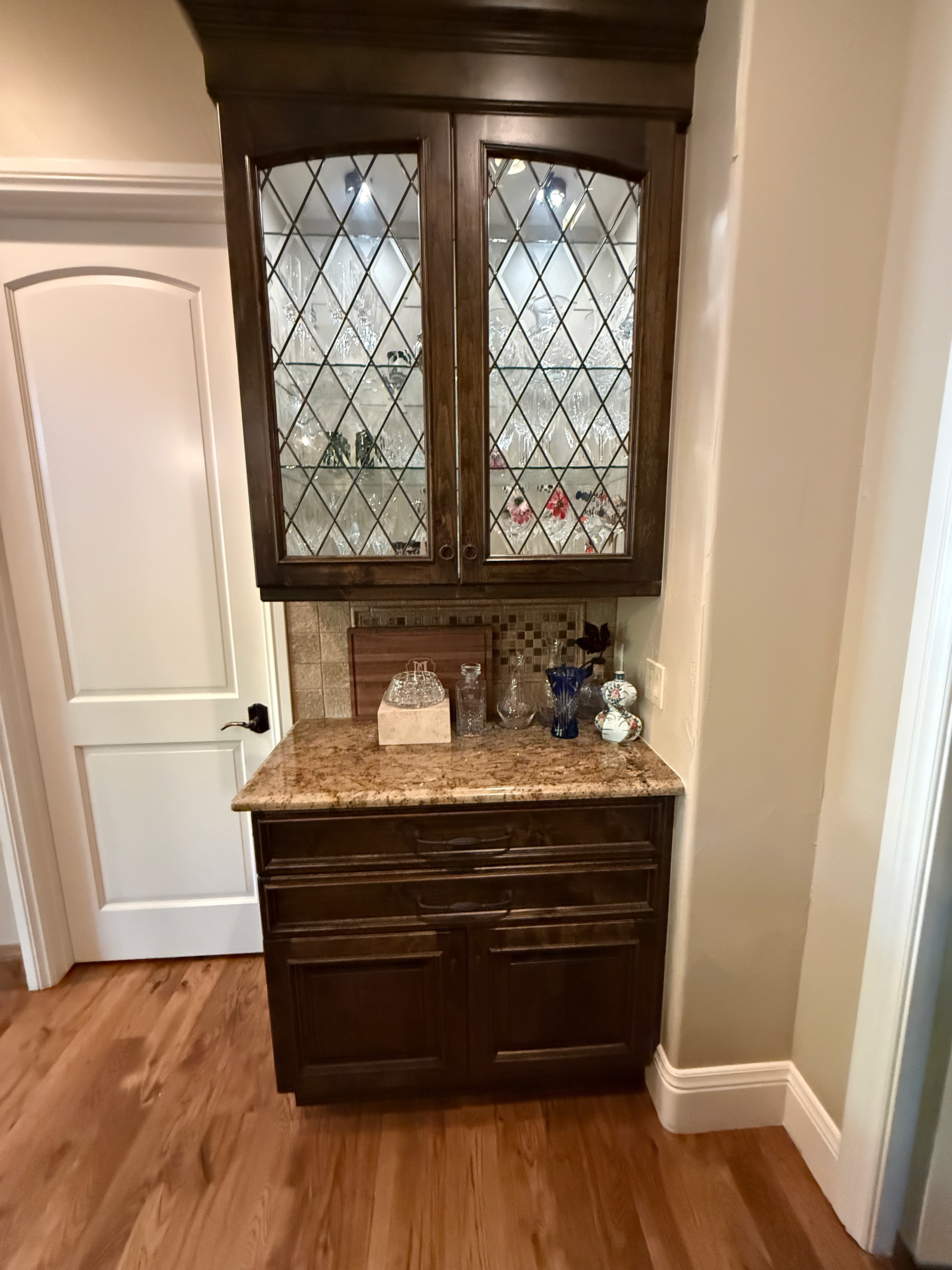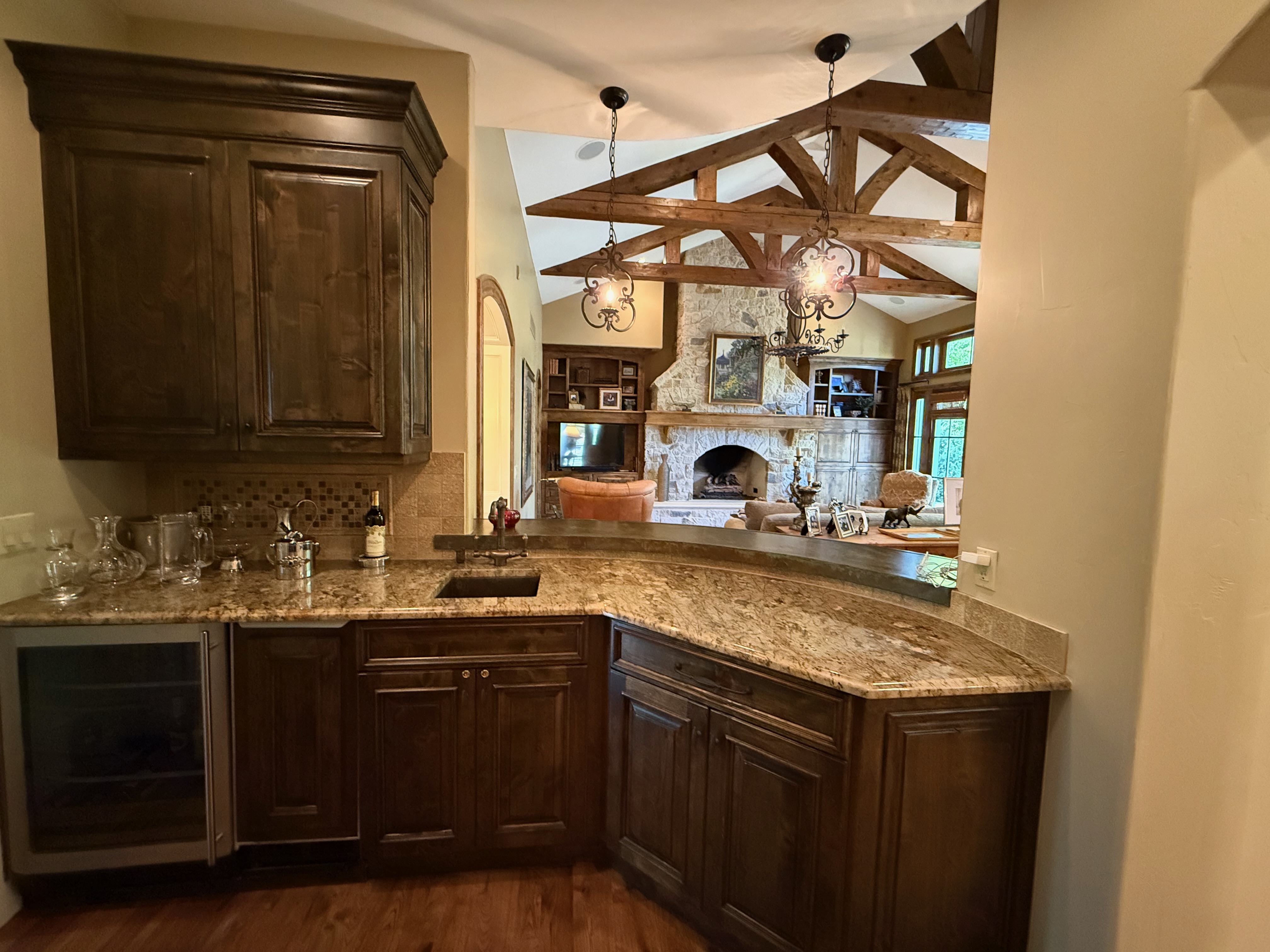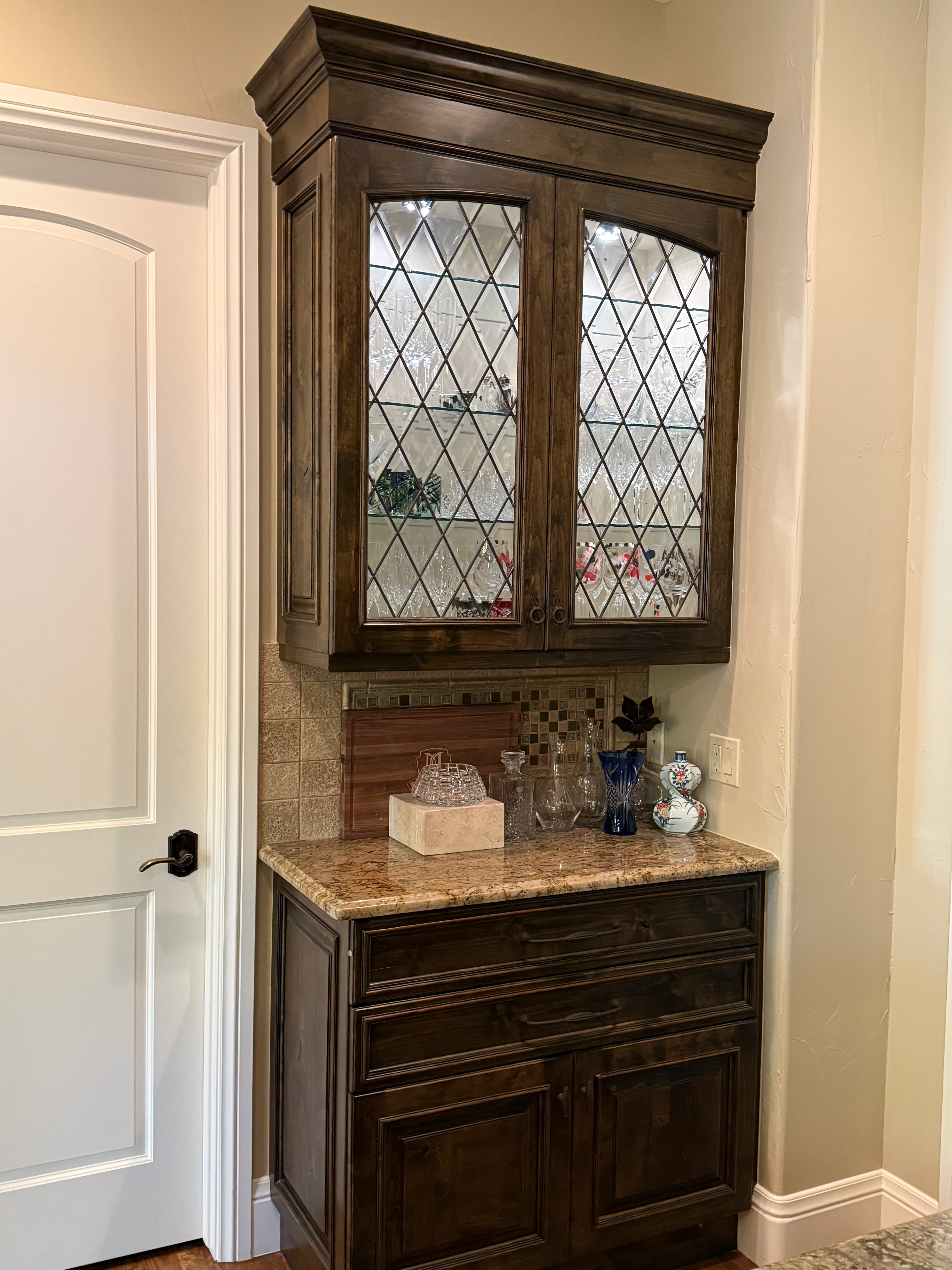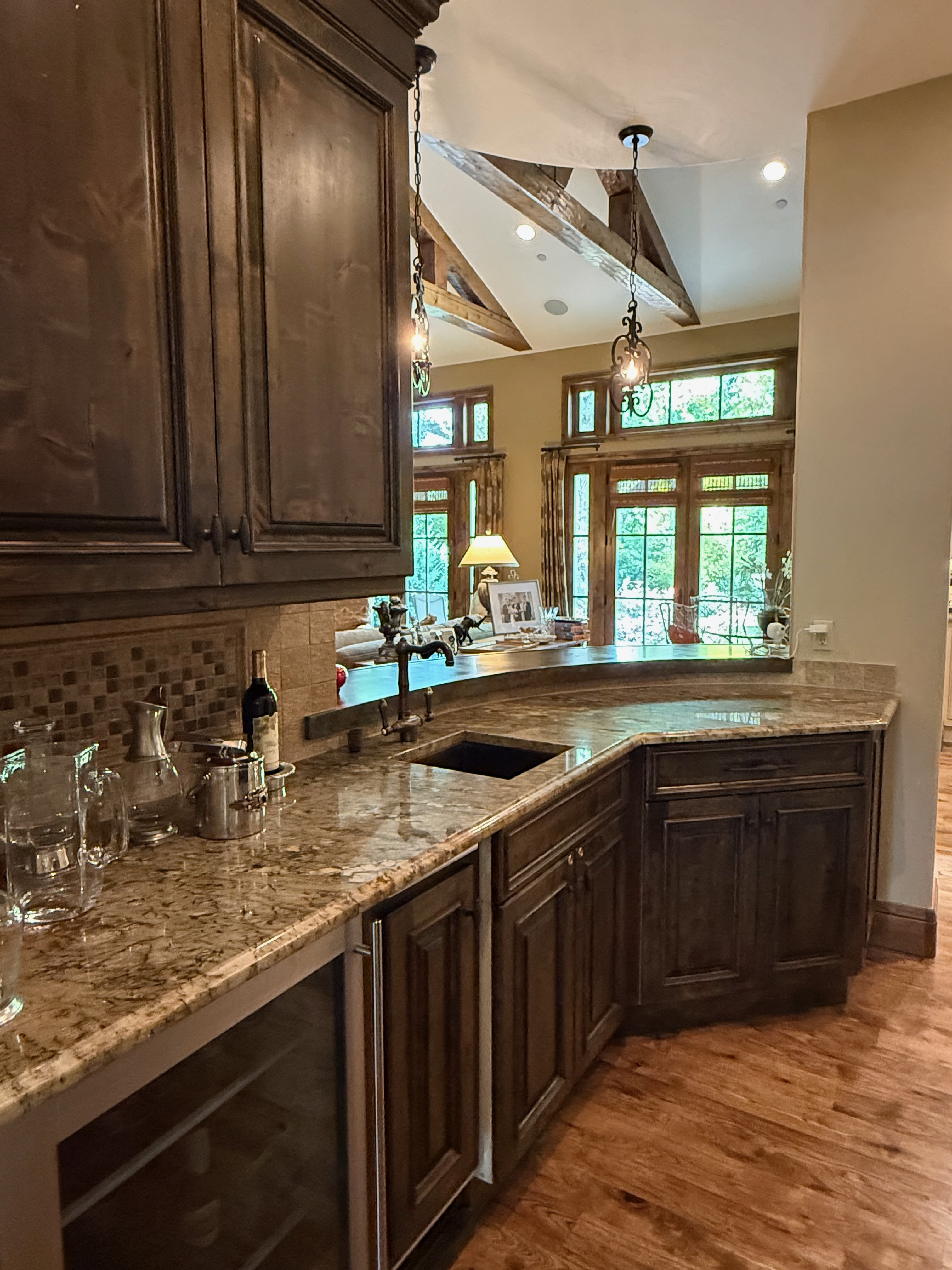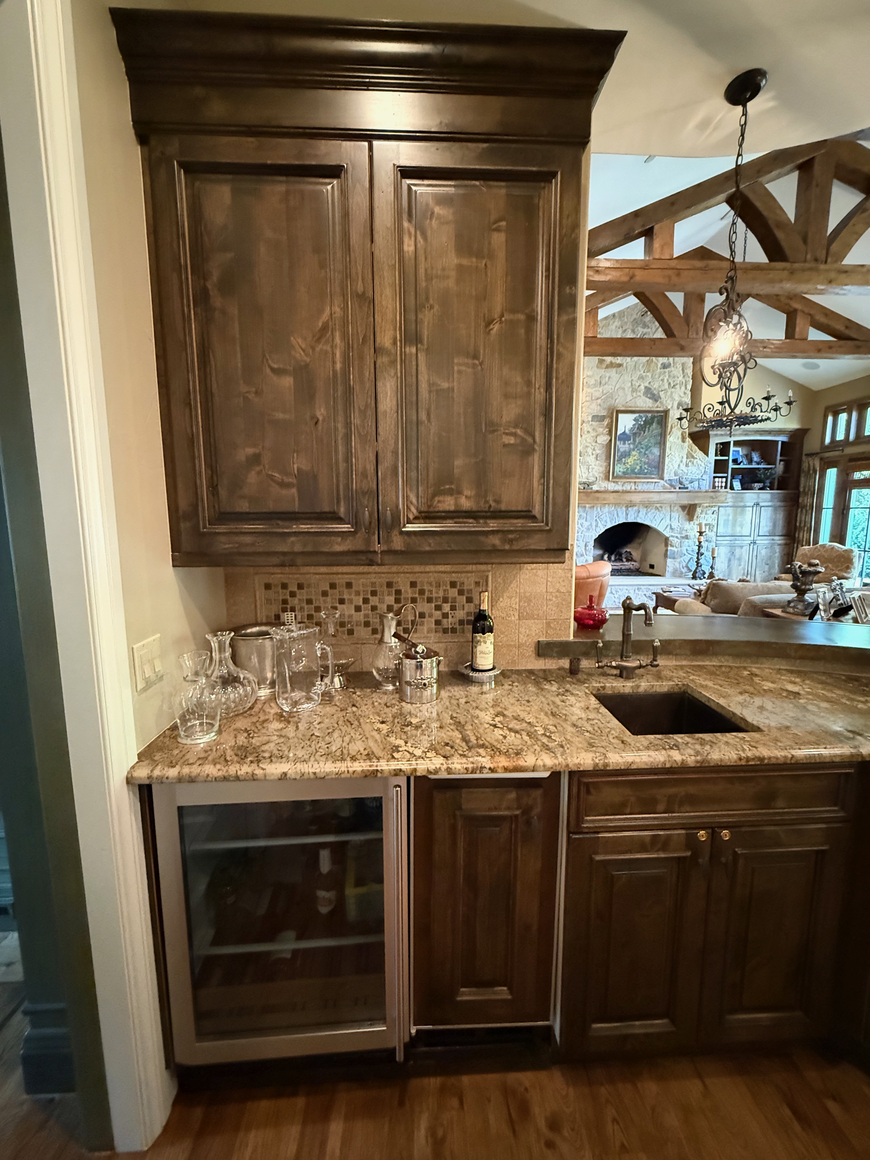 WET BAR-Knotty Alder wood matching the island in the kitchen