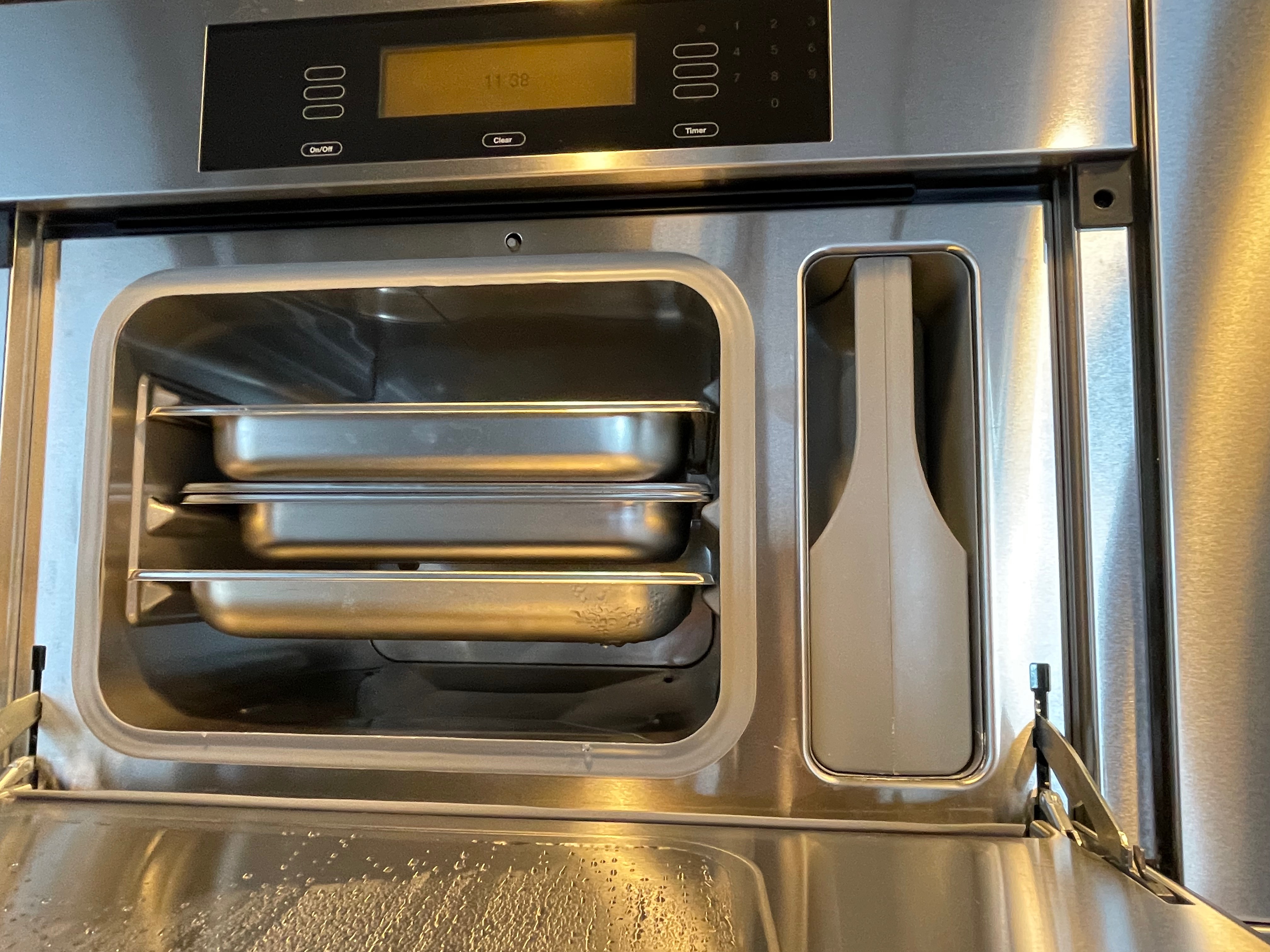 24" Inch Steam Oven with 1.37 Quart Water Reservoir, MasterChef Touch Controls, Food-Driven Menu System, Stainless Steel Interior and Signature Handle, Model #DG4084 Serial #07967780000 08/12 Dim.: 17 3/4”h, Listing price new $2,495