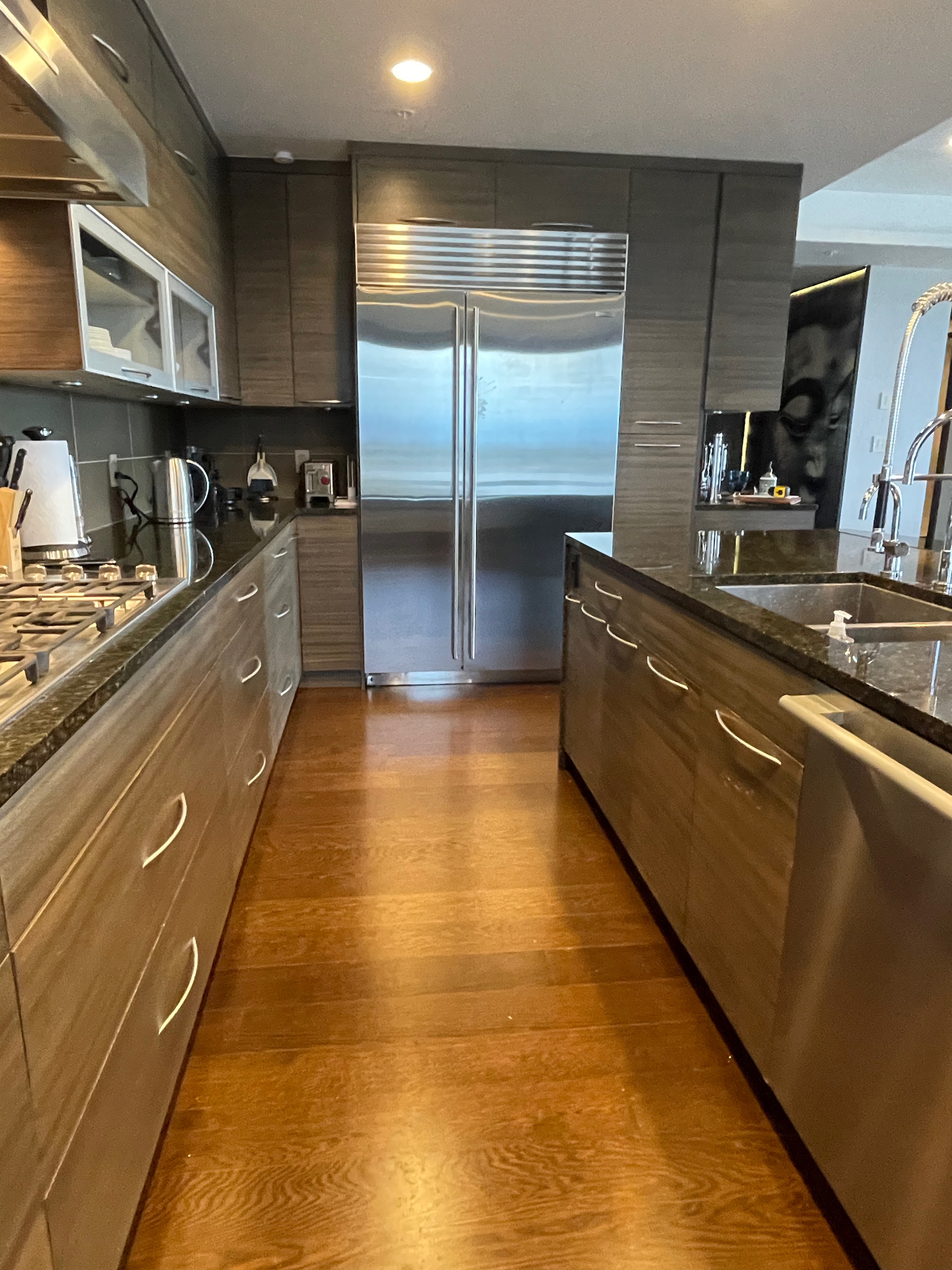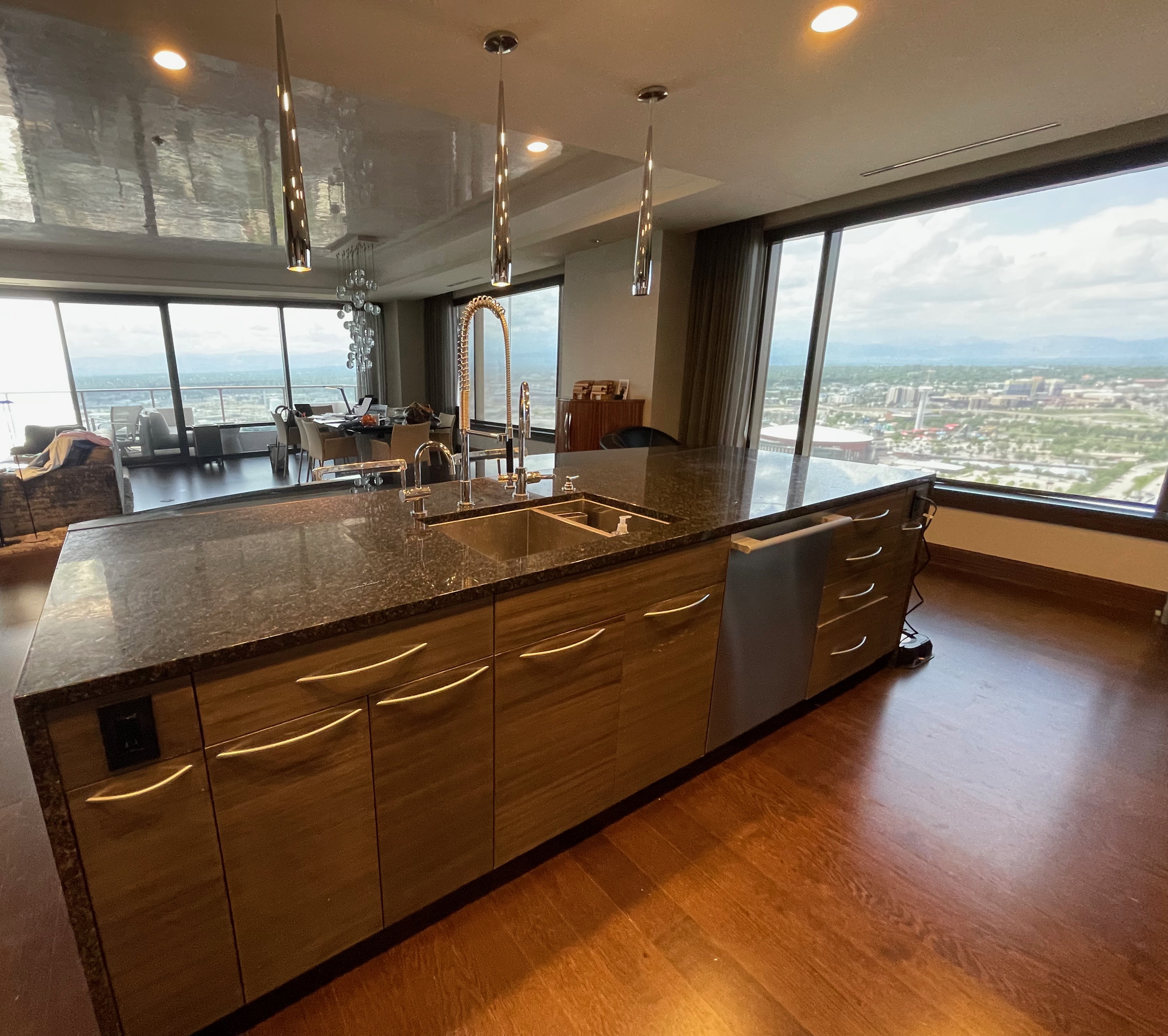 Nice sleek KABI modern kitchen coming out of multi-million dollar penthouse in downtown Denver. This kitchen comes with a 48"Sub-Zero refrigerator and beautiful Miele appliance package. Also included in this package are Dornbracht faucet sets, sinks and pendant lights over the island. The kitchen comes with a matching wet bar and two Sub-Zero under counter refrigerators! This kitchen package will be available for removal November 18th by a qualified buyer or there are licensed contractors that can be hired. Price for the package below.