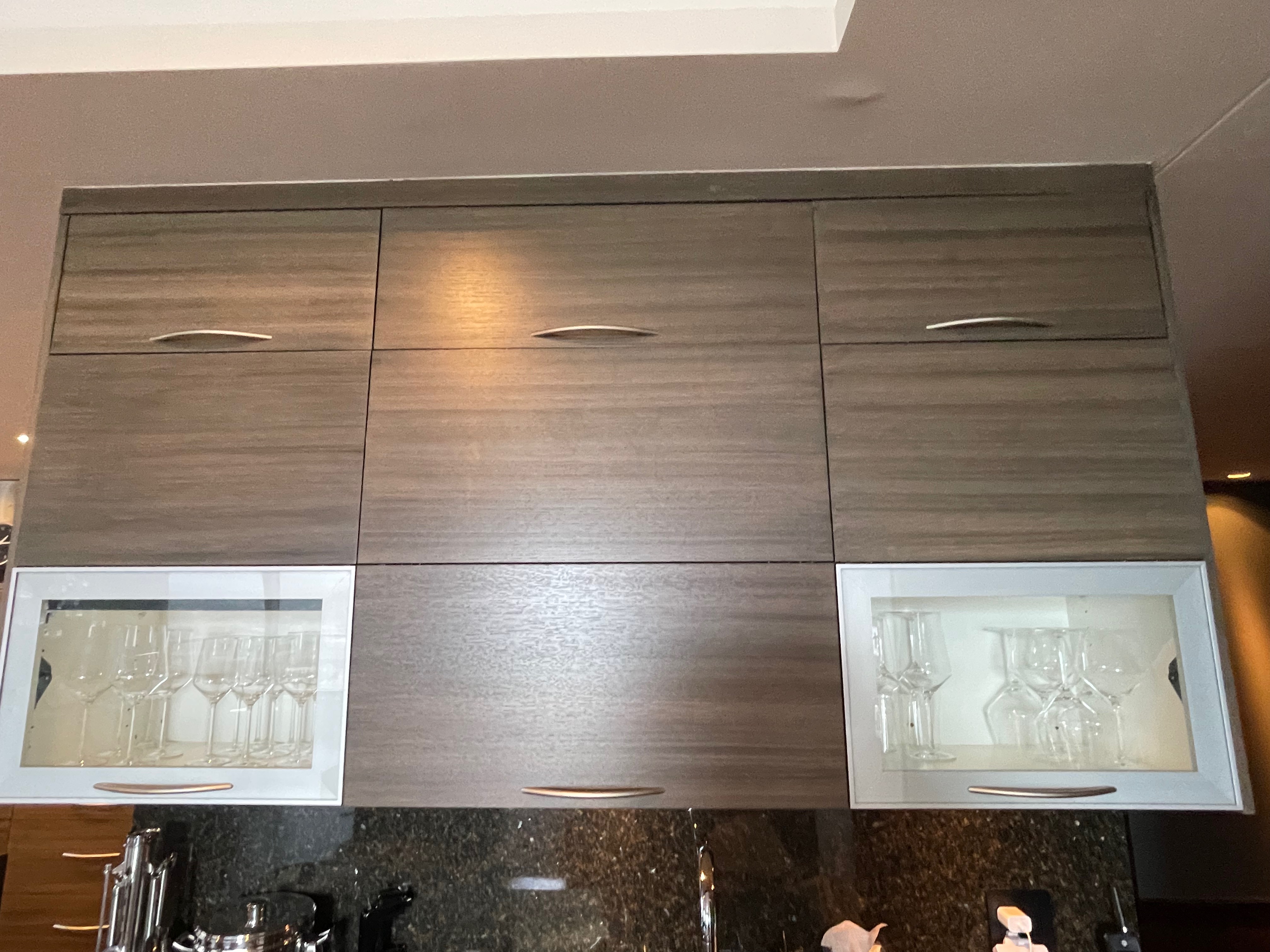 1-Two door lift-up wall cabinet over the Refrigerator Dim.: 12” w x 24”h x 24”d