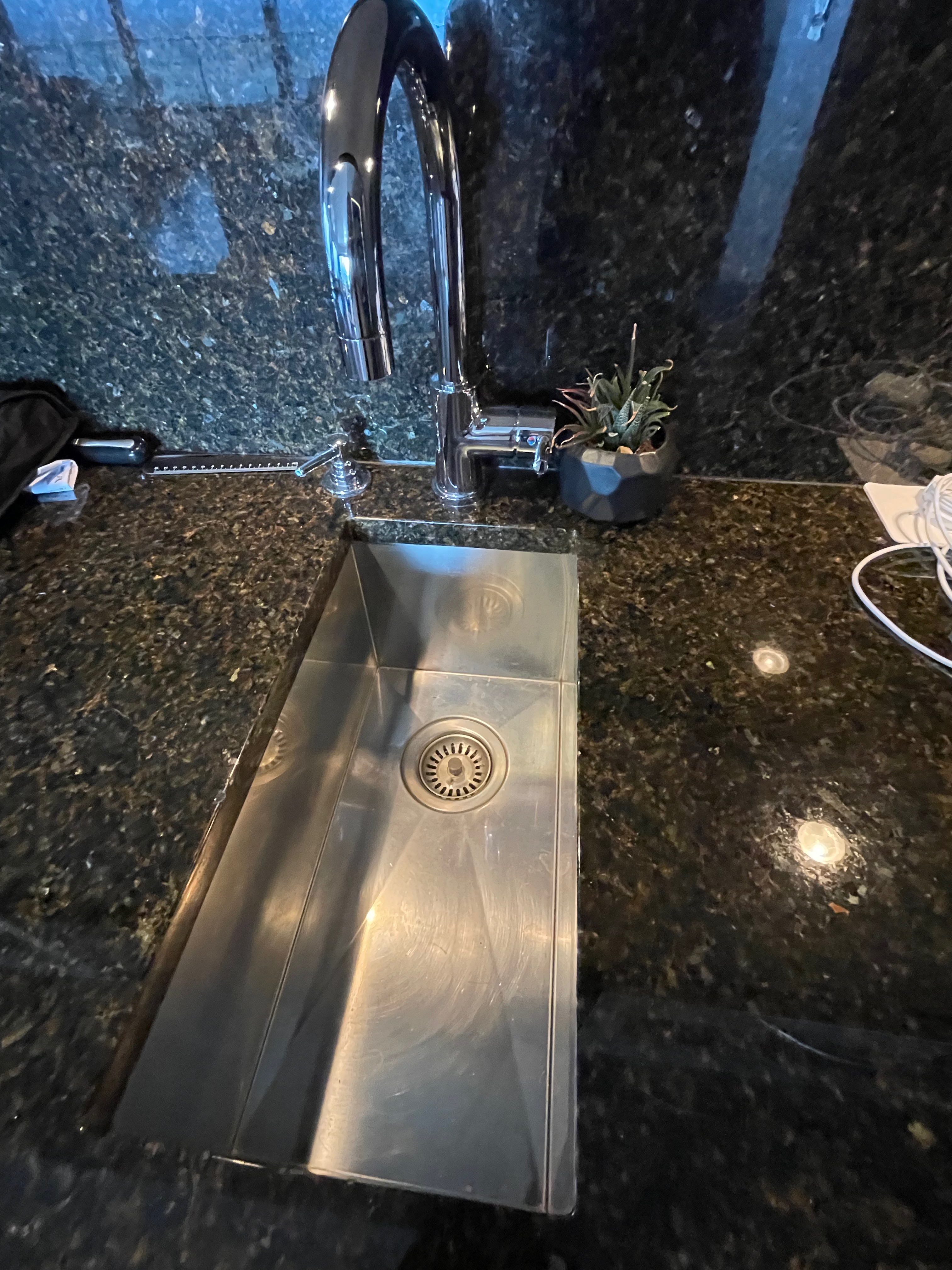 1-One door sink base Dim.: 14 3/4”w x 36”h x 24” d, under mount S/S sink 8 1/2" x 17 1/2"+w/ Dornbacht faucet set