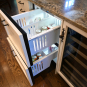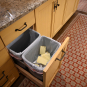1-One drawer, one pull-out door, 2 trash cans Dim.: 16 ½”w x 36”h x 24”d