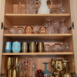 2-Two door glass front wall cabinets Dim.: 39”w x 35 ¾”h cab.only/39”h crown/40 ¼” overall x 13 ½”d, 1 ¾” filler right