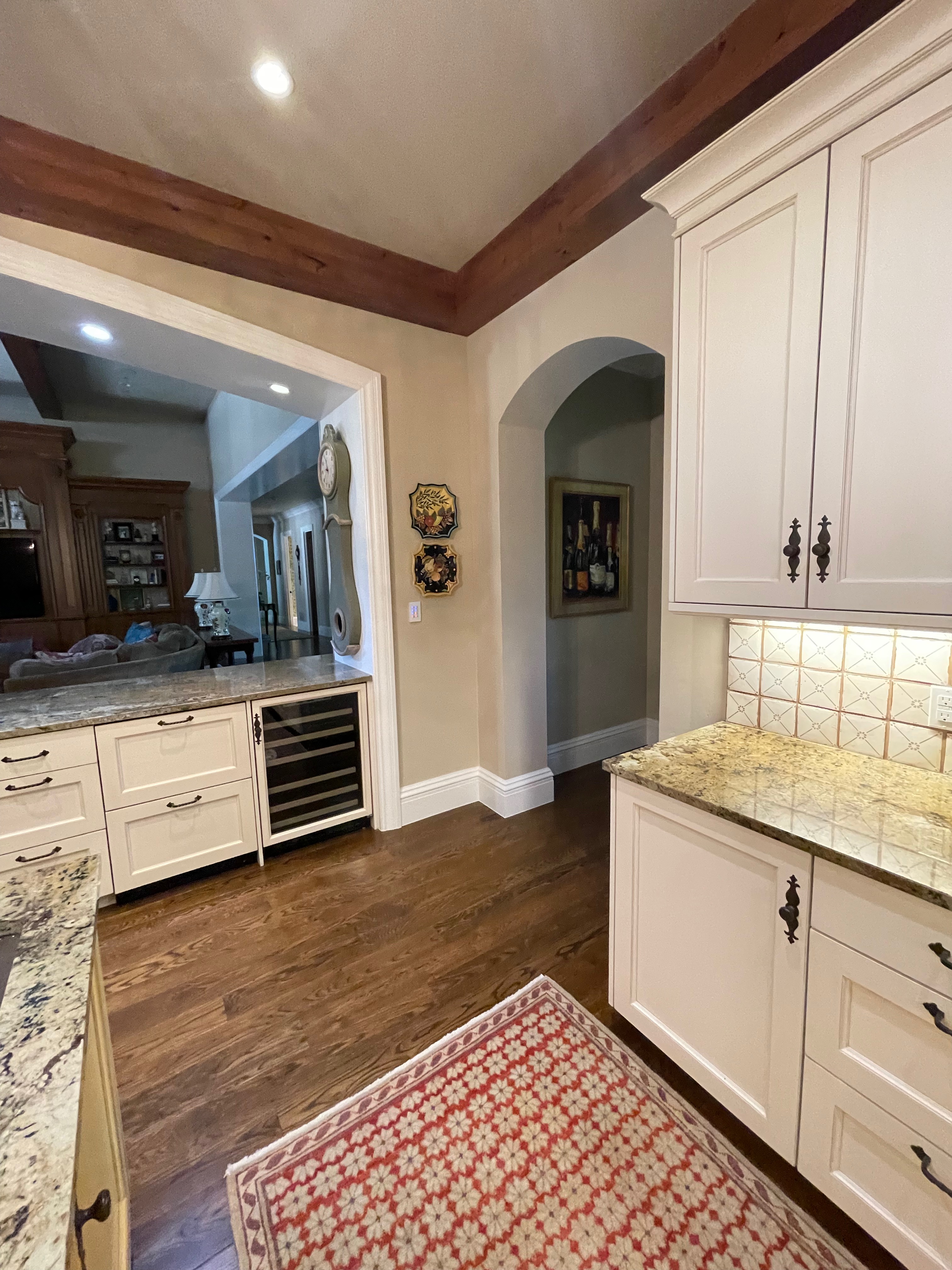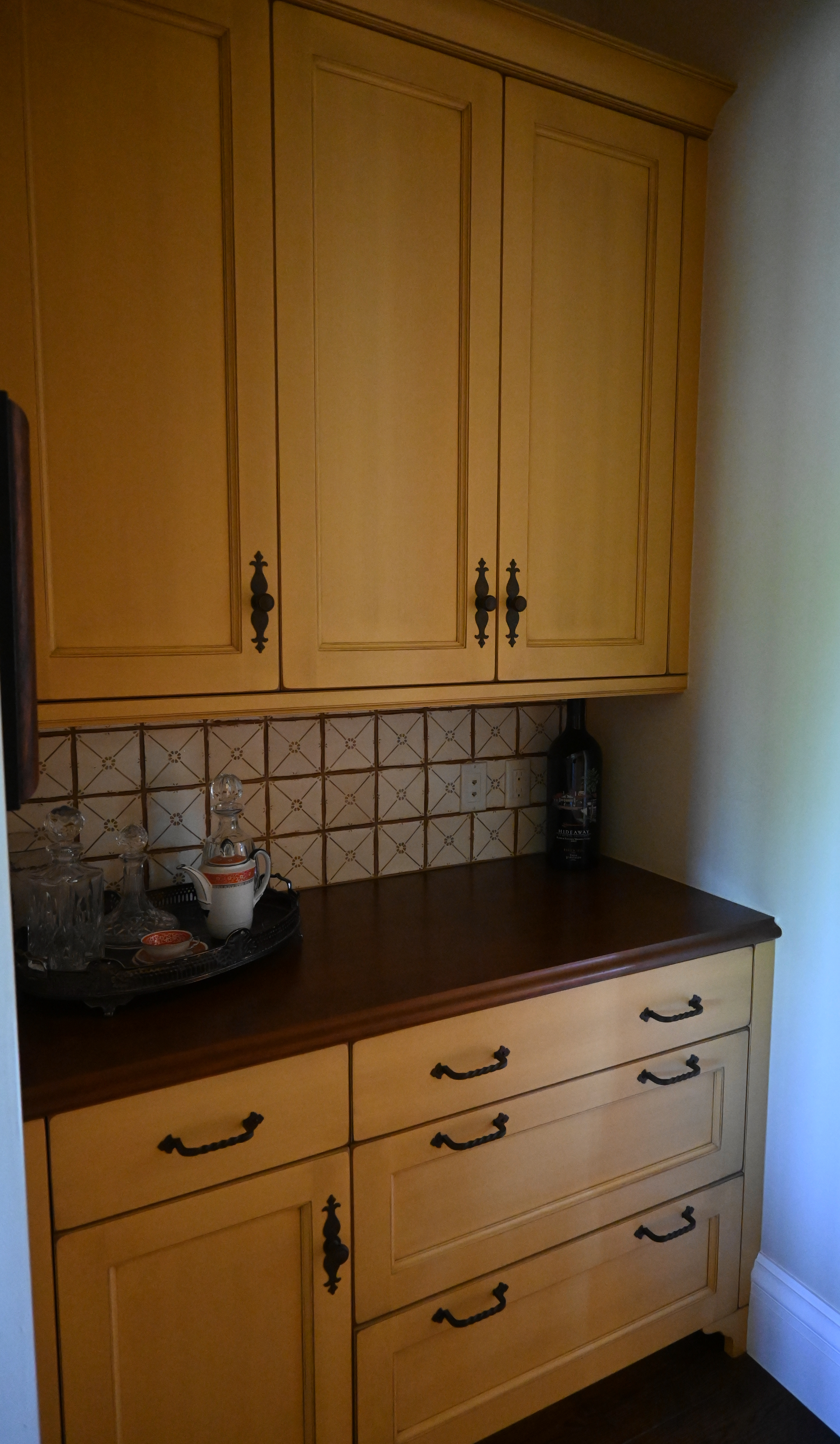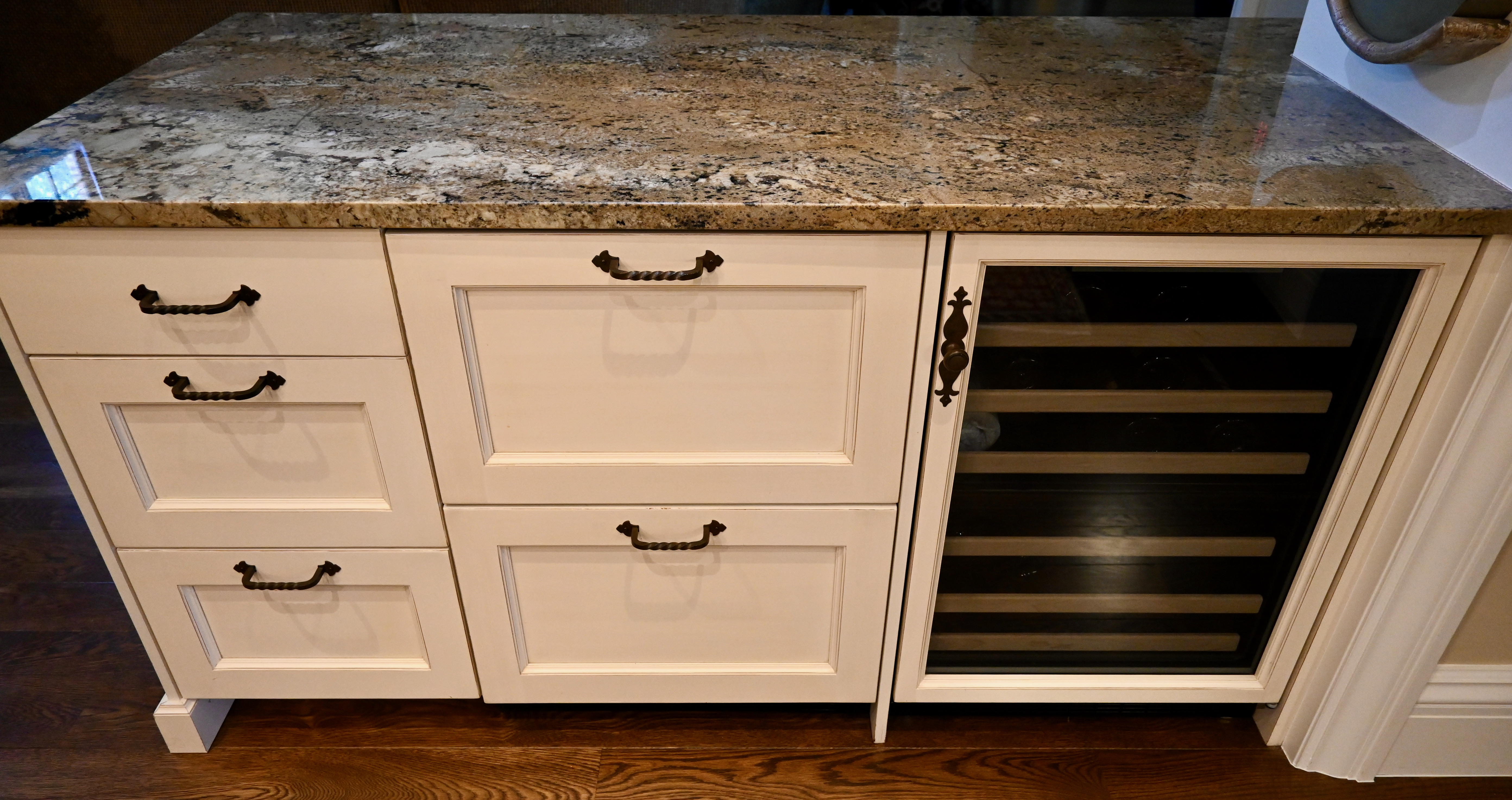 WINE BAR OFF THE KITCHEN-Off-white cabinets 69 ¾”w x 25 ¾”d