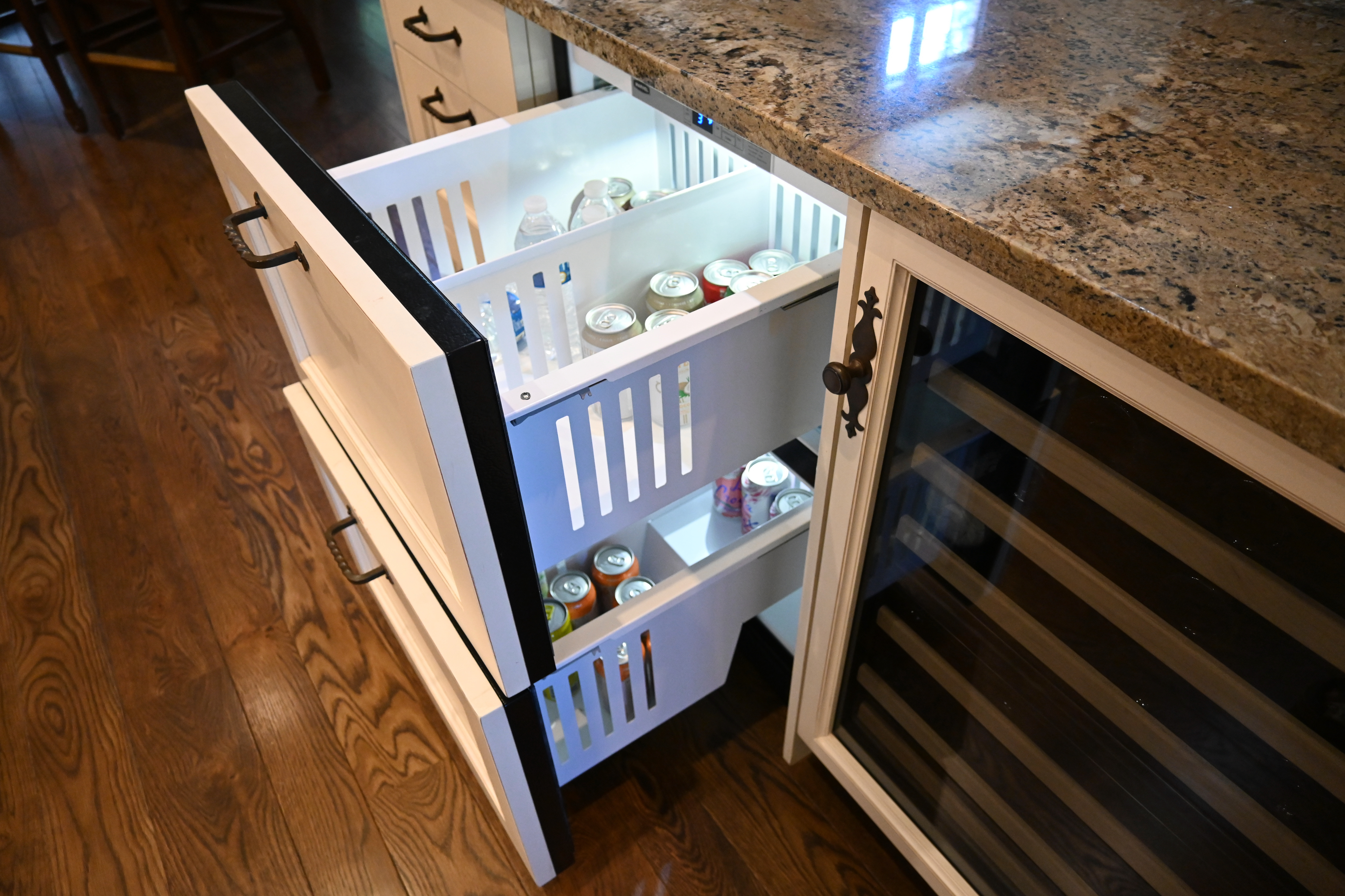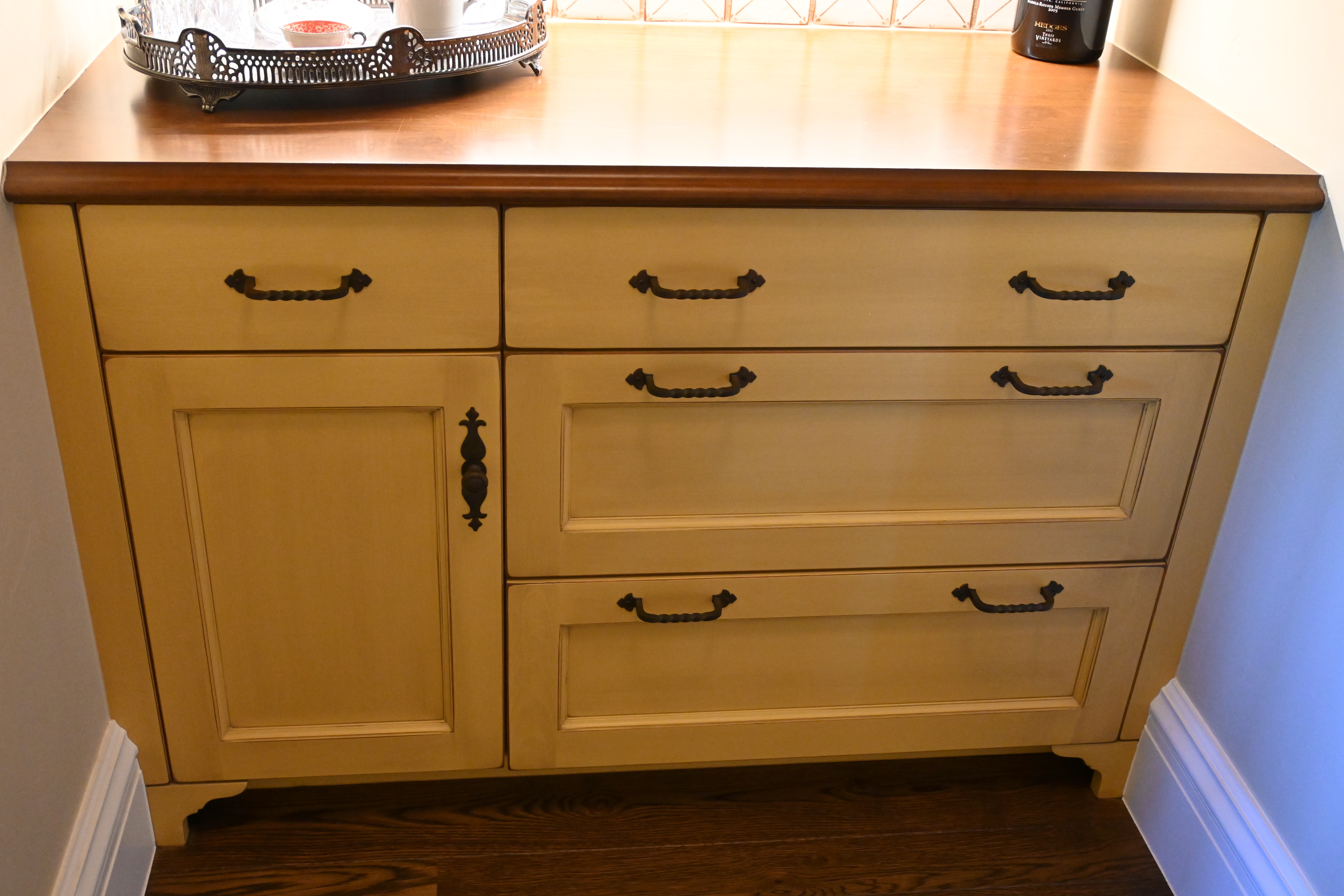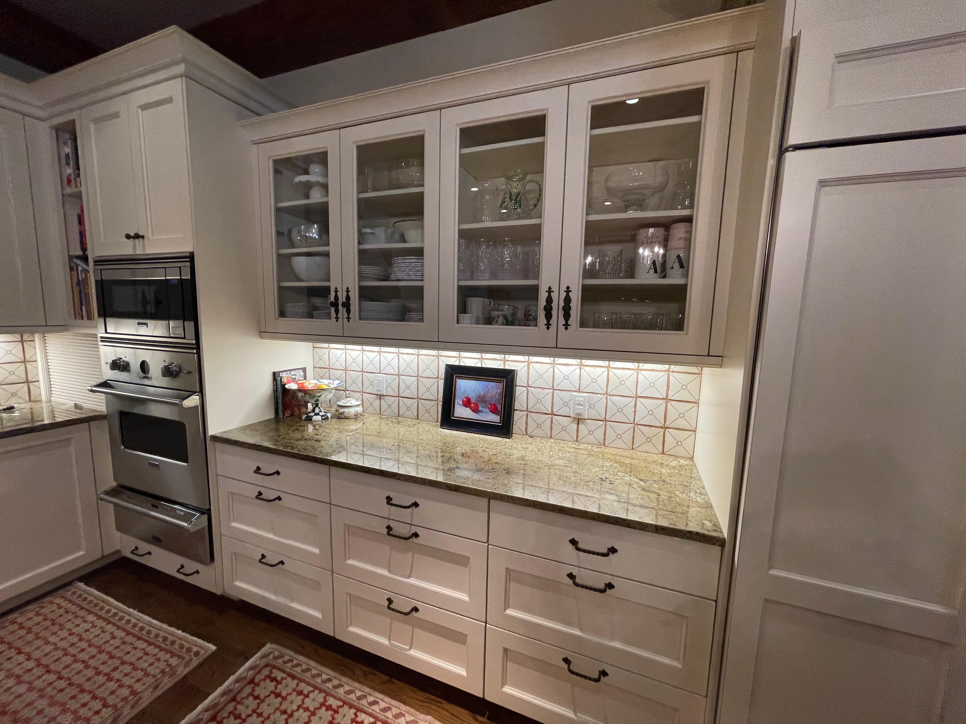 WINE BAR OFF THE KITCHEN-Off-white cabinets 69 ¾”w x 25 ¾”d