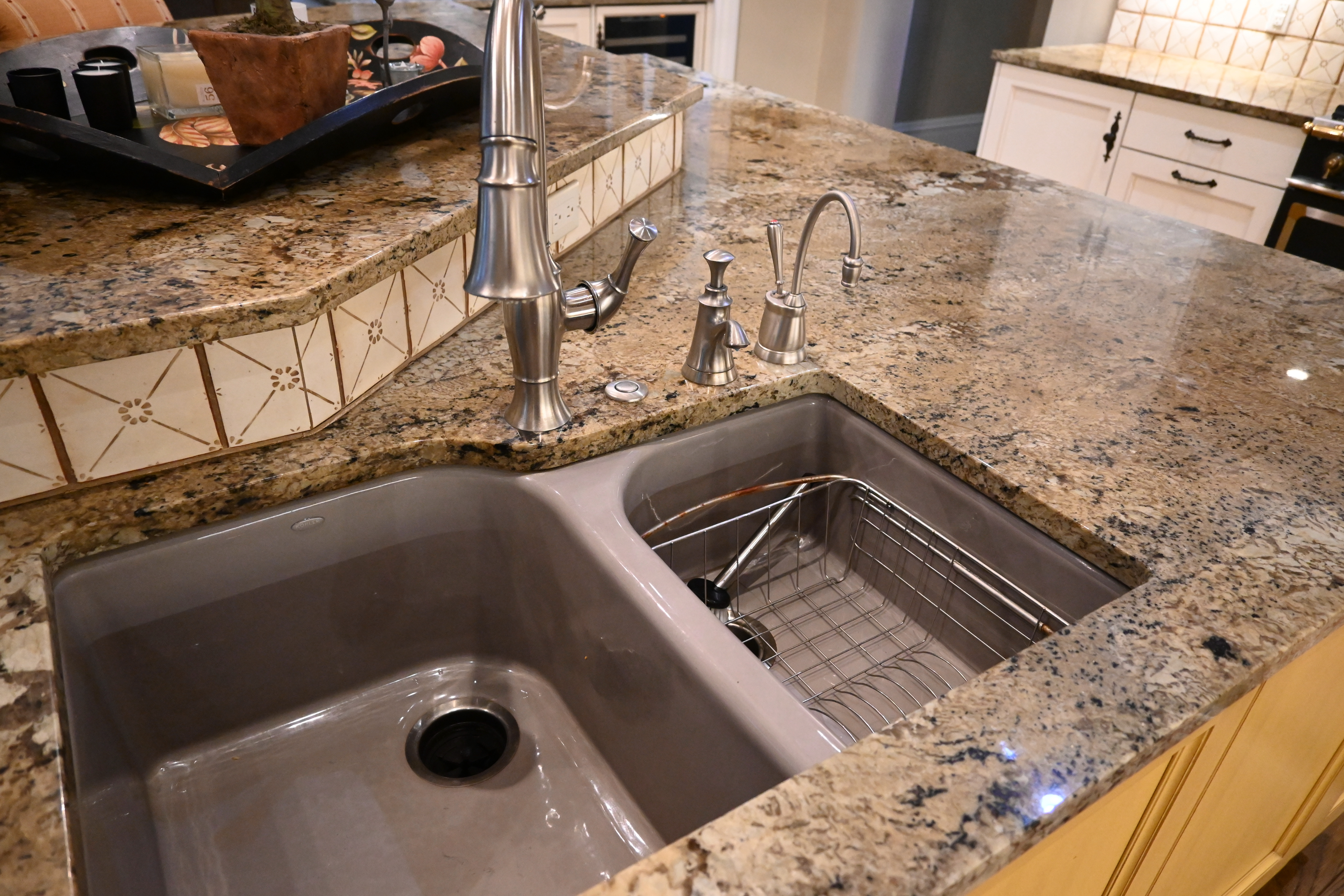 1-Two door sink base Dim.: 36”w x 36”h x 24”d, Kohler under mount sink 30” x 19”/16 ¾”, faucet set, insta-hot and disposal
