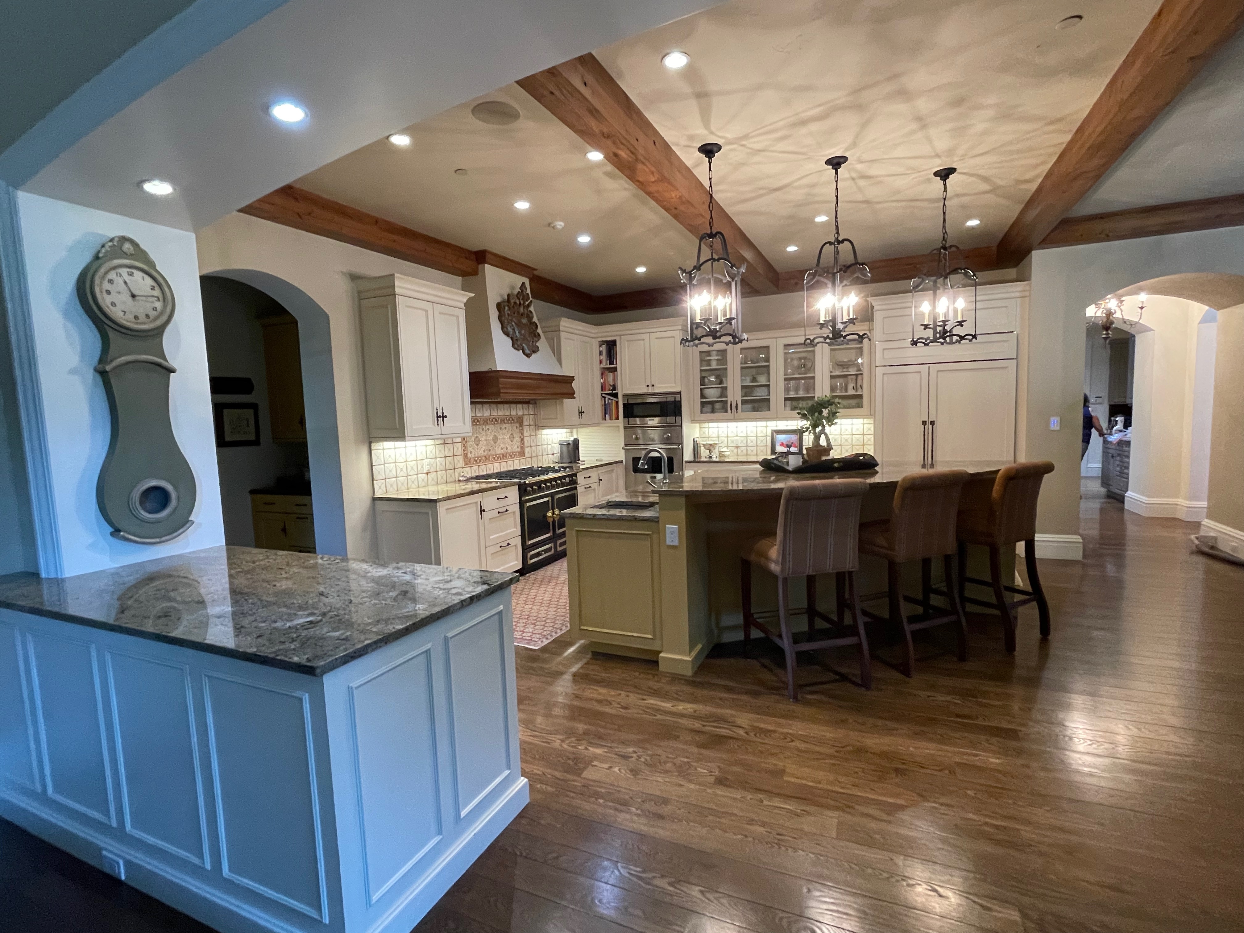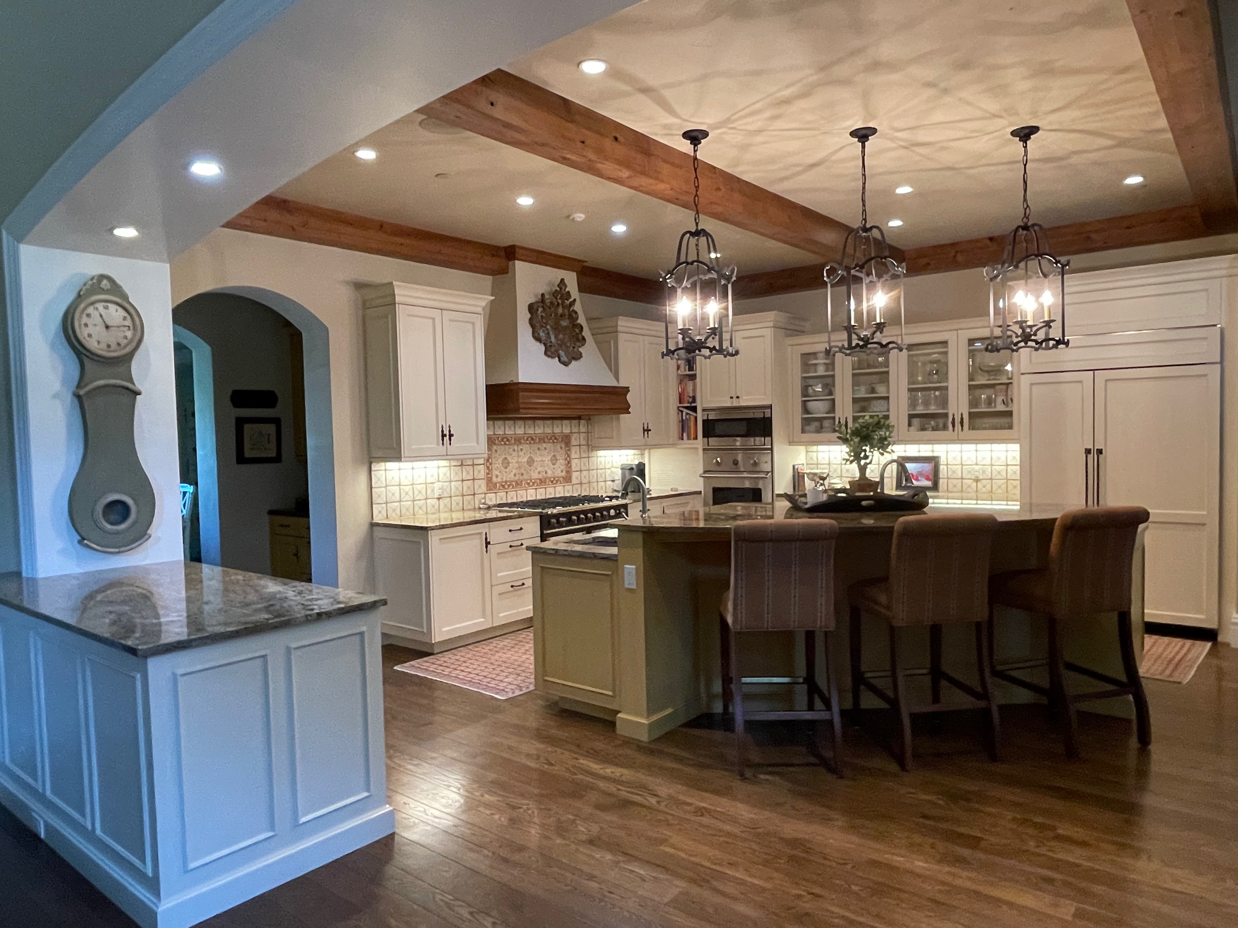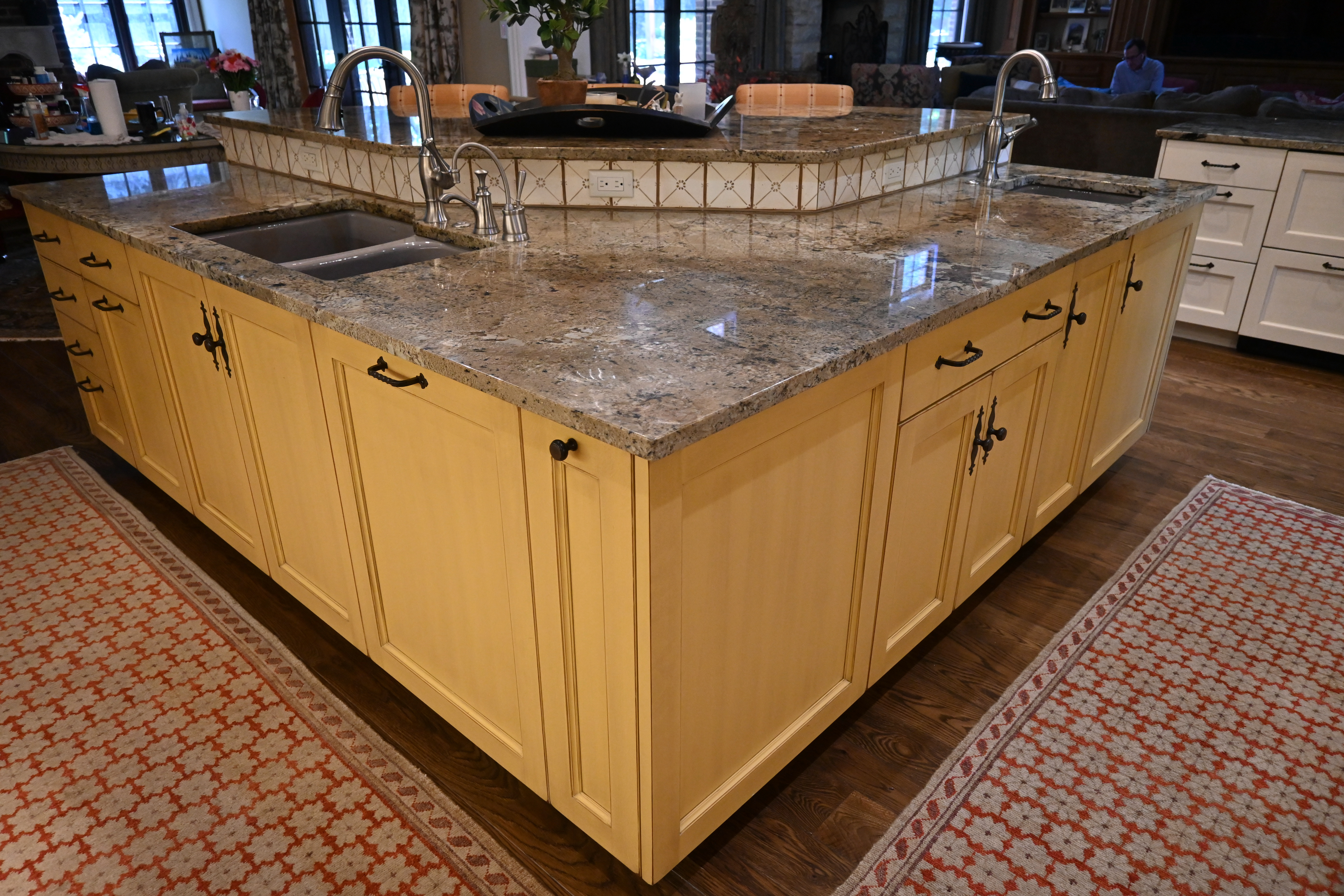 Gorgeous handcrafted custom cabinets from “Quality Custom Cabinetry” in Pennsylvania. This dream kitchen comes with a French “La Cornue” Range, Sub-Zero Refrigerator & wine cooler, Viking oven warming drawer, microwave and more. The perimeter cabinetry and wine bar are in a soft off-white. The island and sideboard/coffee bar are in a contrasting yellow. The kitchen is in like new condition only 7 years old. This kitchen would be well over $150k new. Available in December/Jan. Licensed sub-contractors are available to hire to remove the kitchen. Price for the package below.