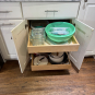1-One drawer, one door base cabinet with trash can Dim.: 12”w x 36”h x 24”d