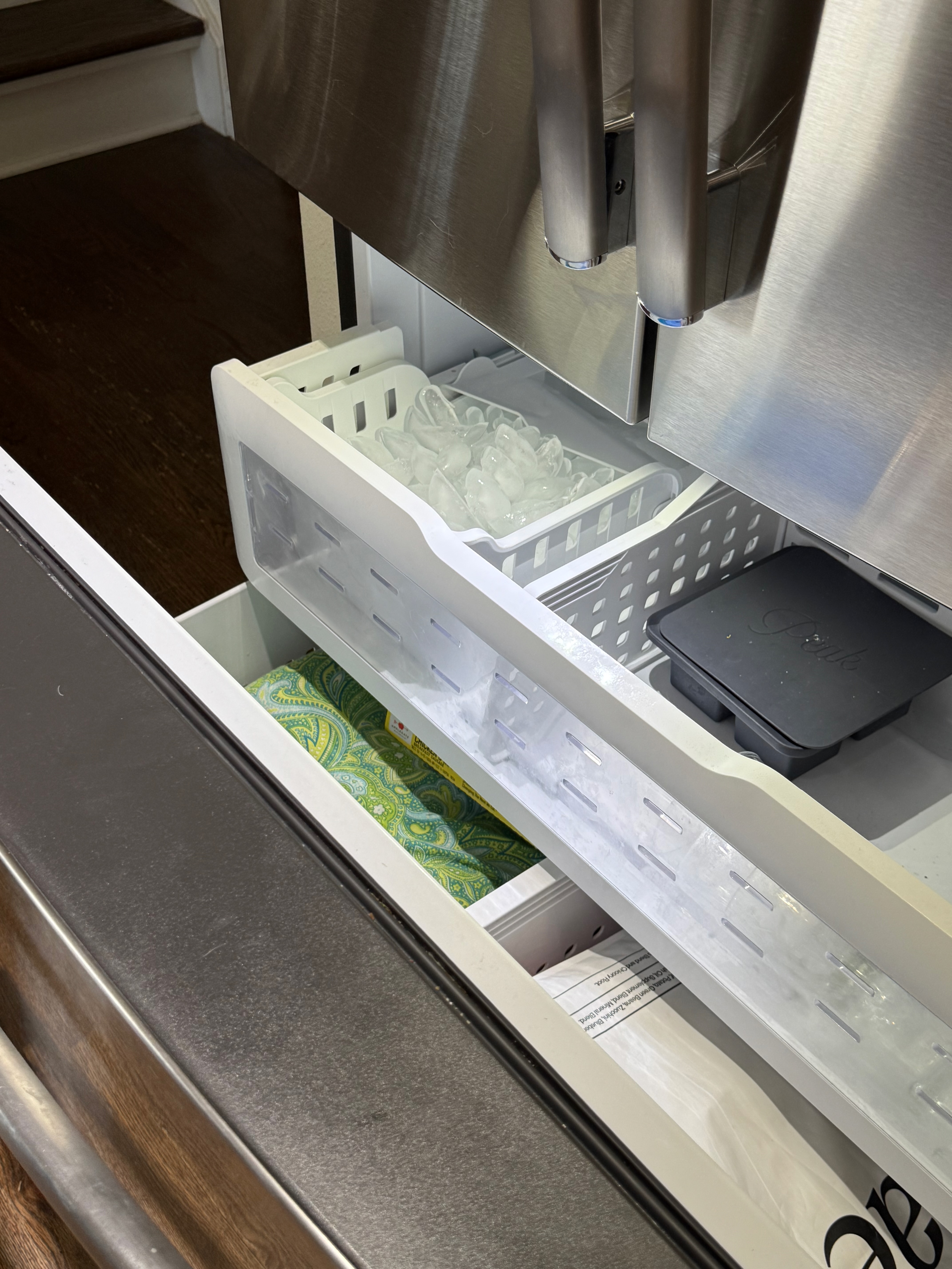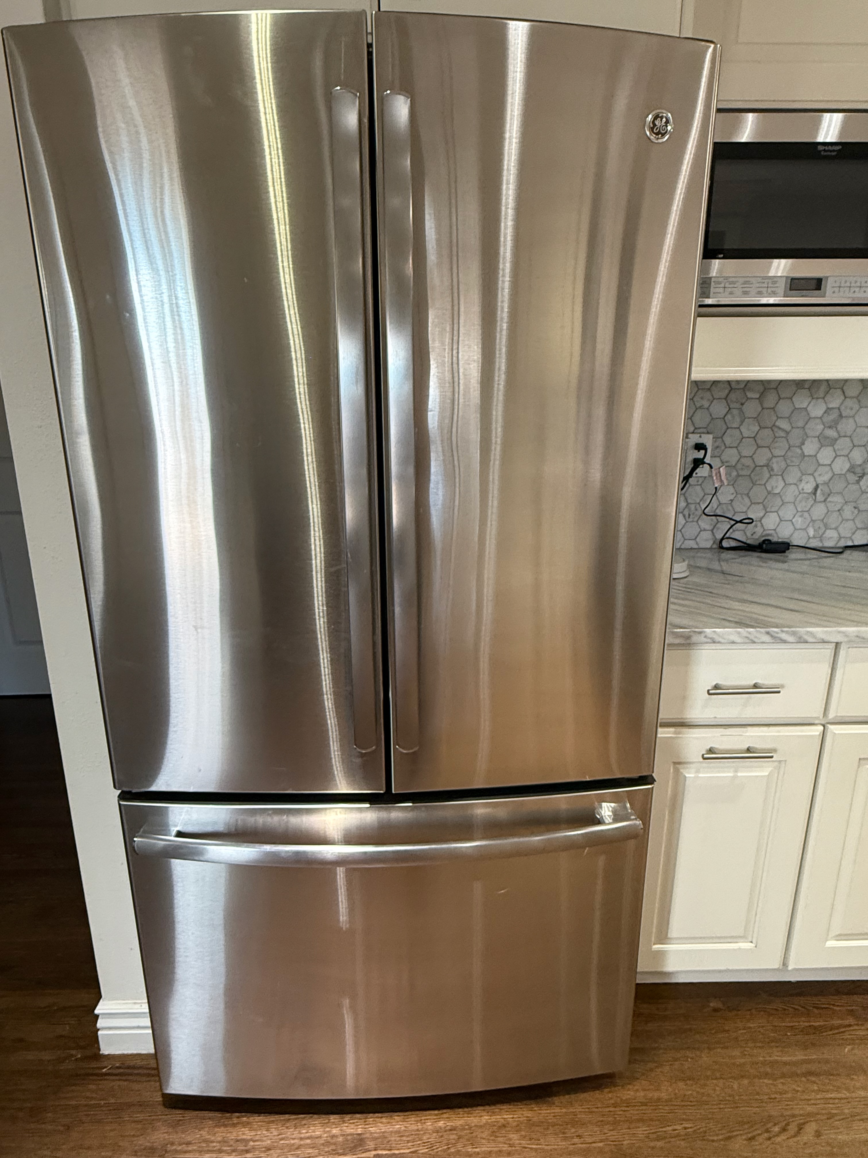36” GE French Door refrigerator Model #PWE23KSDESS, Serial #DF527102 02/15 Features a stainless-steel finish, internal water dispenser, and TwinChill™ evaporators for precise climate control. This ENERGY STAR® qualified, 36-inch wide model includes a full-width temperature-controlled drawer and factory-installed ice maker