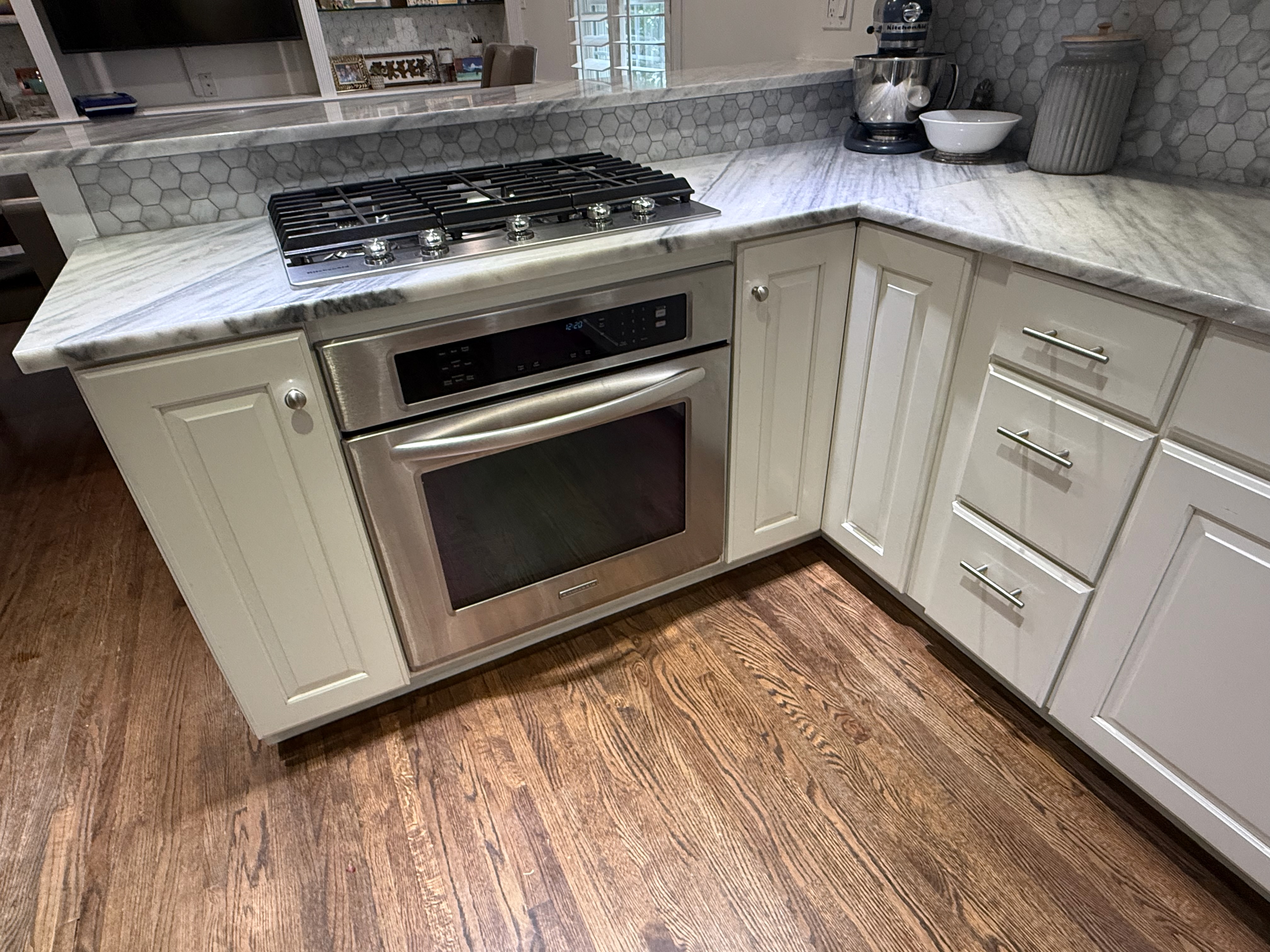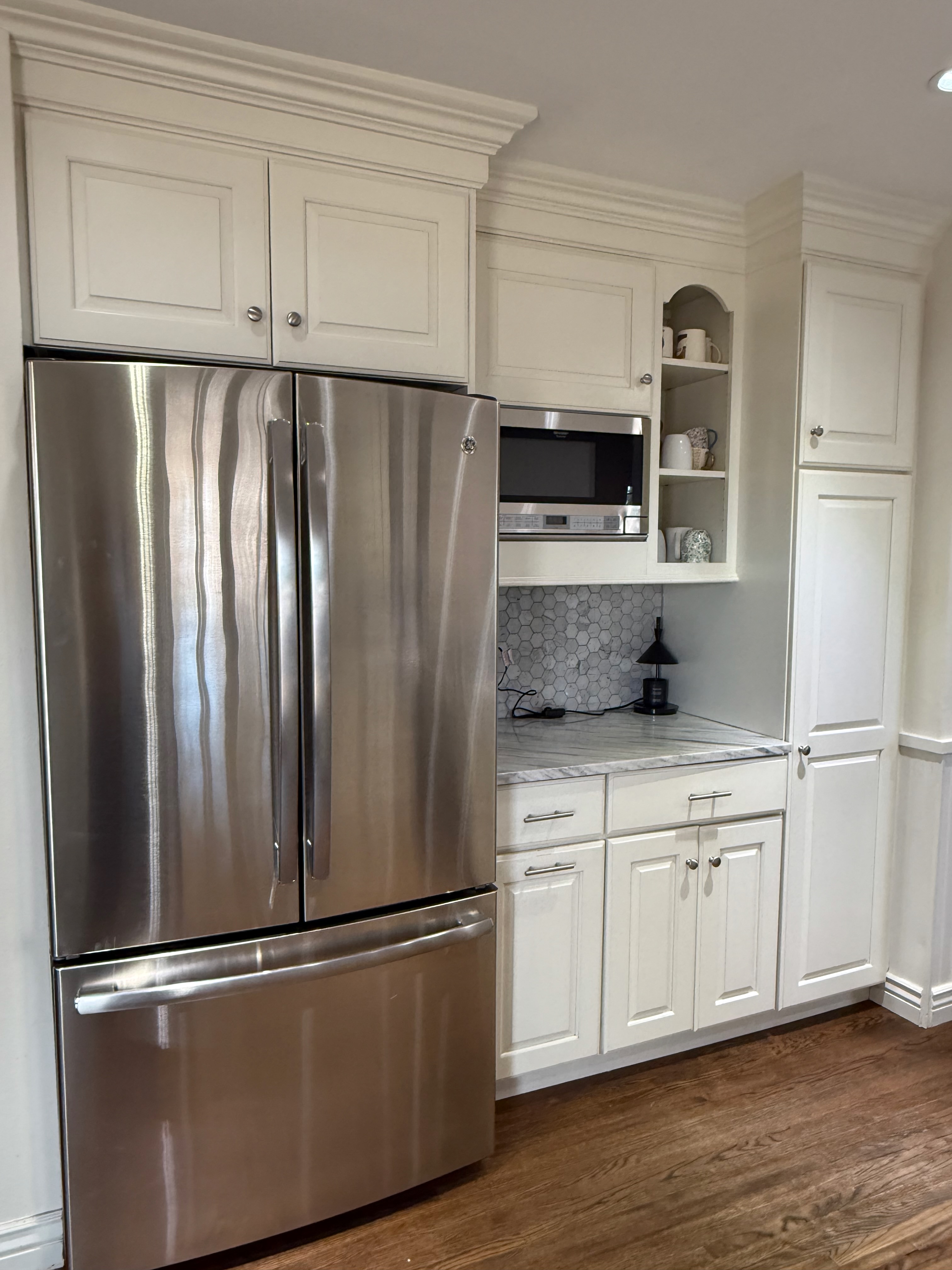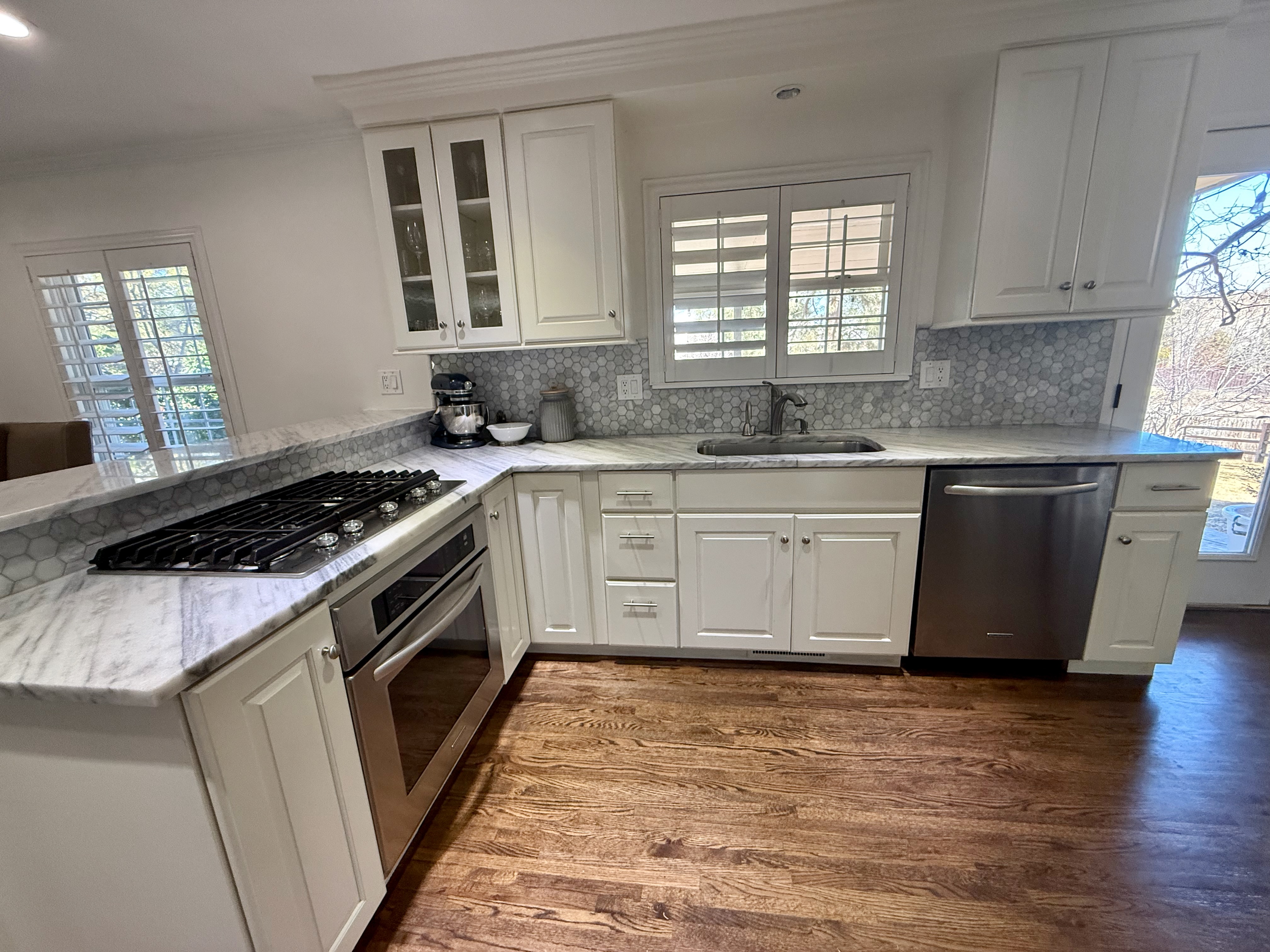 Great Deal! Classic White kitchen with Stainless Steel appliances and Marble countertops. The cabinetry is made by “Holiday kitchens” in WI. The cabinet drawers have the dove-tail and soft close feature. The kitchen package includes nice GE & KitchenAid Stainless Steel appliances, marble countertops, sink, faucet set and disposal to complete the set. The kitchen is available to be uninstalled the weekend of 3/21. There are licensed contractors available to be hired to uninstall the kitchen. Price for the package below.