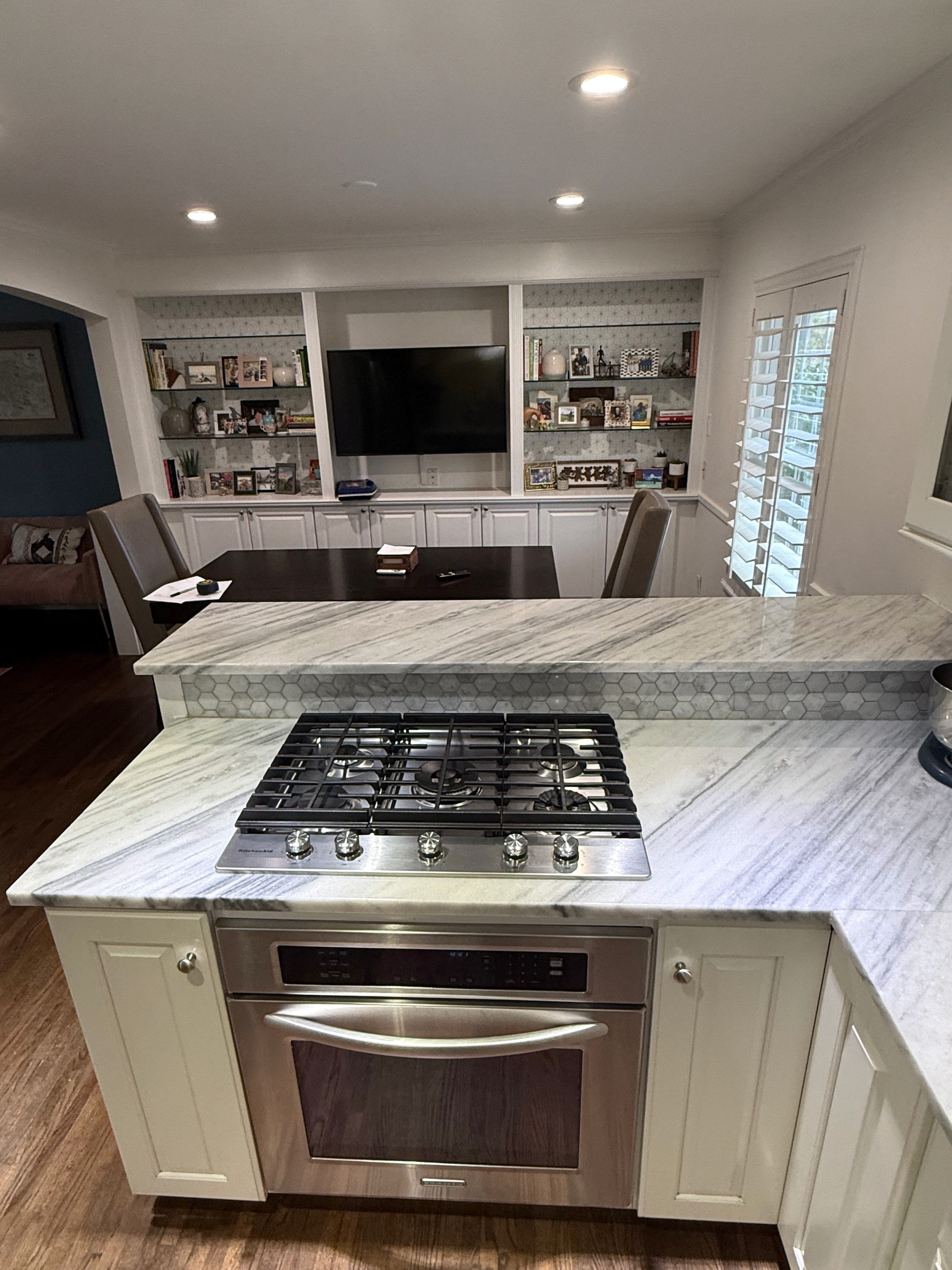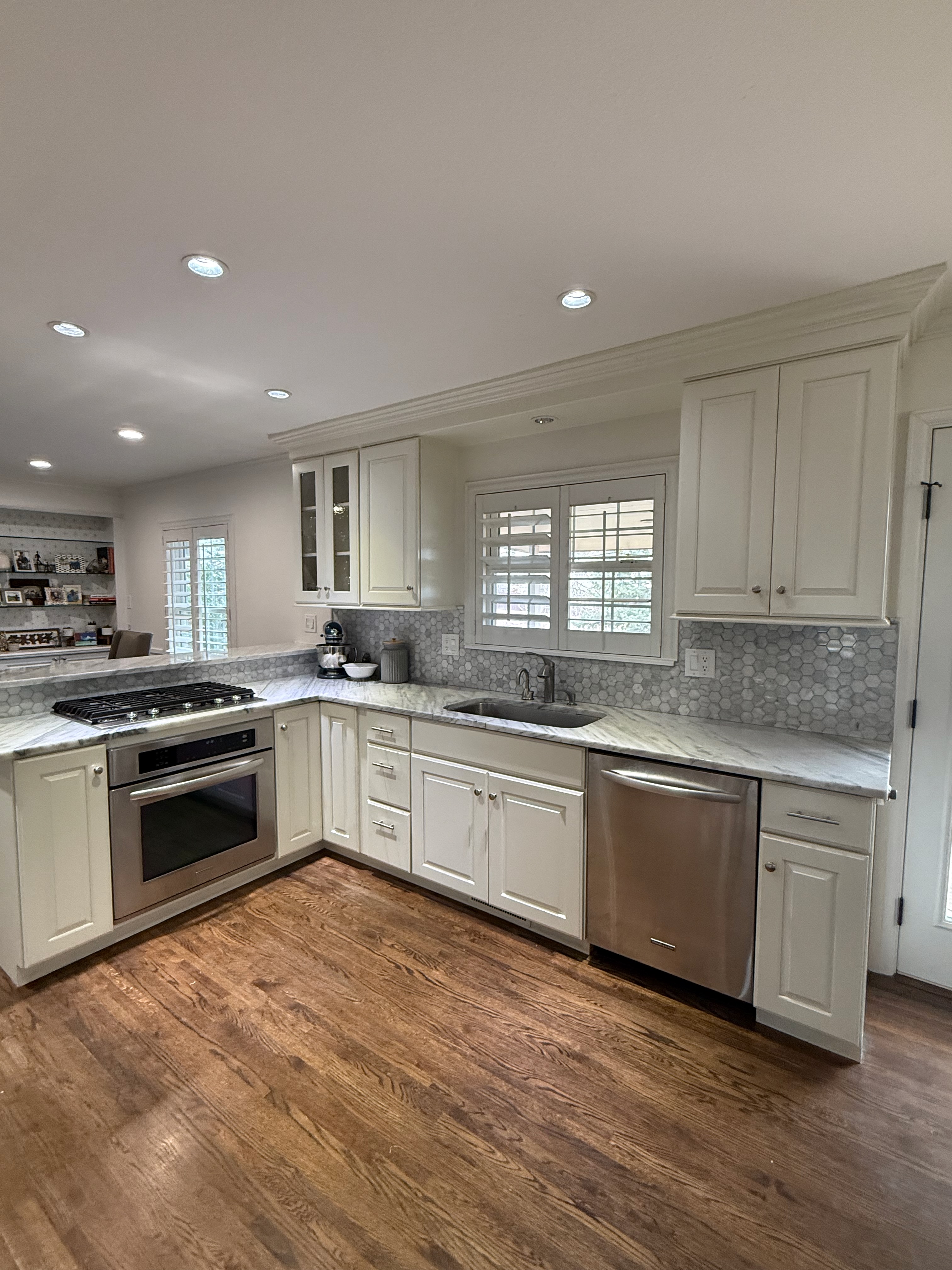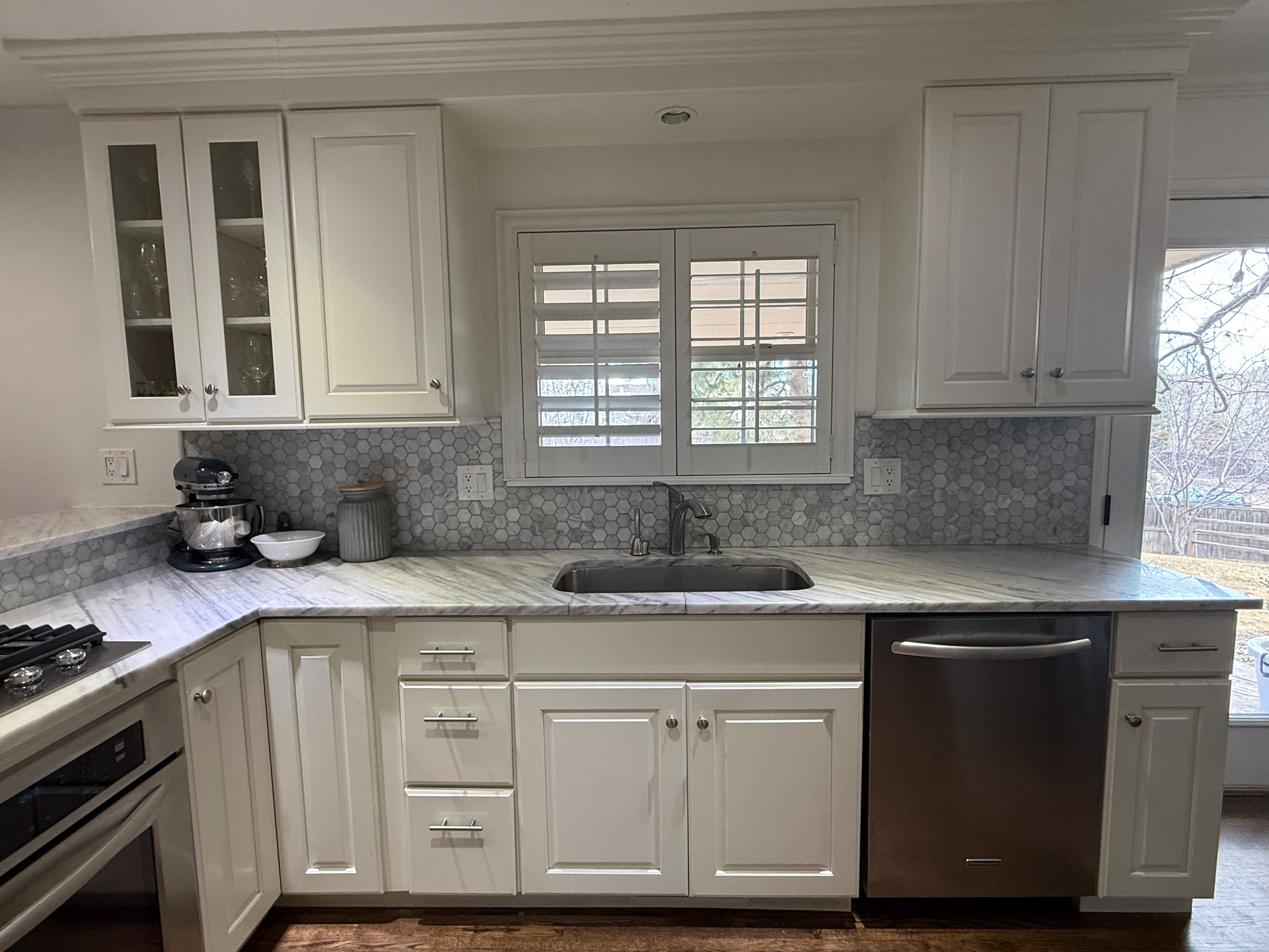 Great Deal! Classic White kitchen with Stainless Steel appliances and Marble countertops. The cabinetry is made by “Holiday kitchens” in WI. The cabinet drawers have the dove-tail and soft close feature. The kitchen package includes nice GE & KitchenAid Stainless Steel appliances, marble countertops, sink, faucet set and disposal to complete the set. The kitchen is available to be uninstalled the weekend of 3/21. There are licensed contractors available to be hired to uninstall the kitchen. Price for the package below.