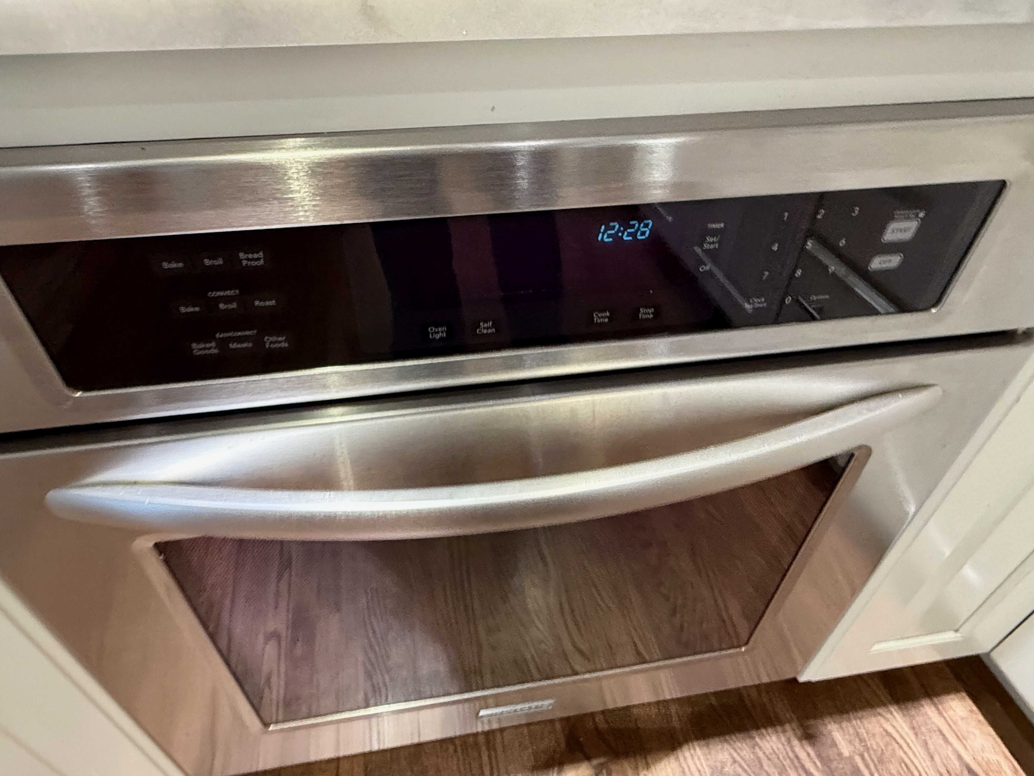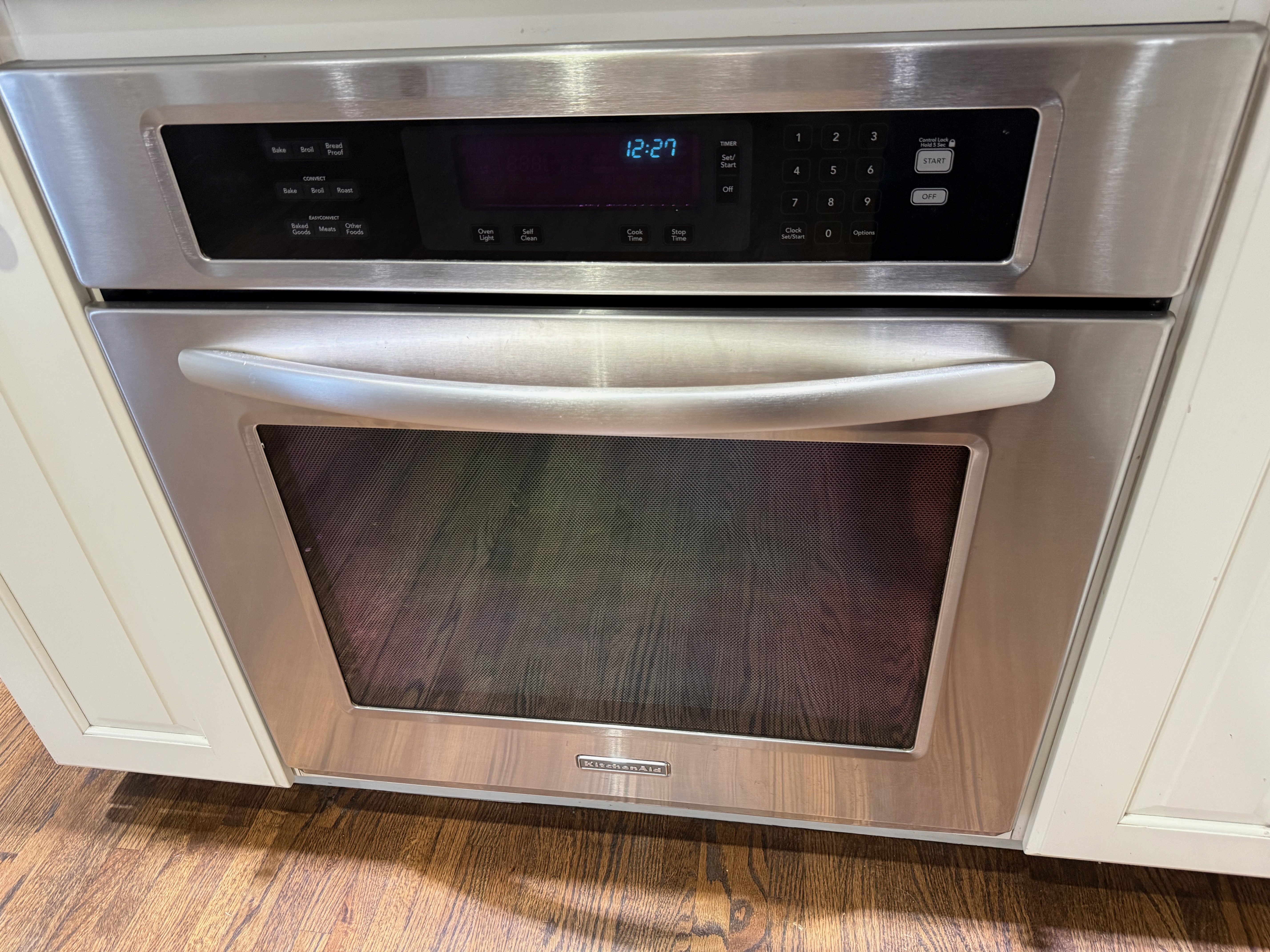 30” KitchenAid stainless-steel single wall oven Model # KEBS107SSS04, Serial # D011669699 04/10, Listing price new $1,978