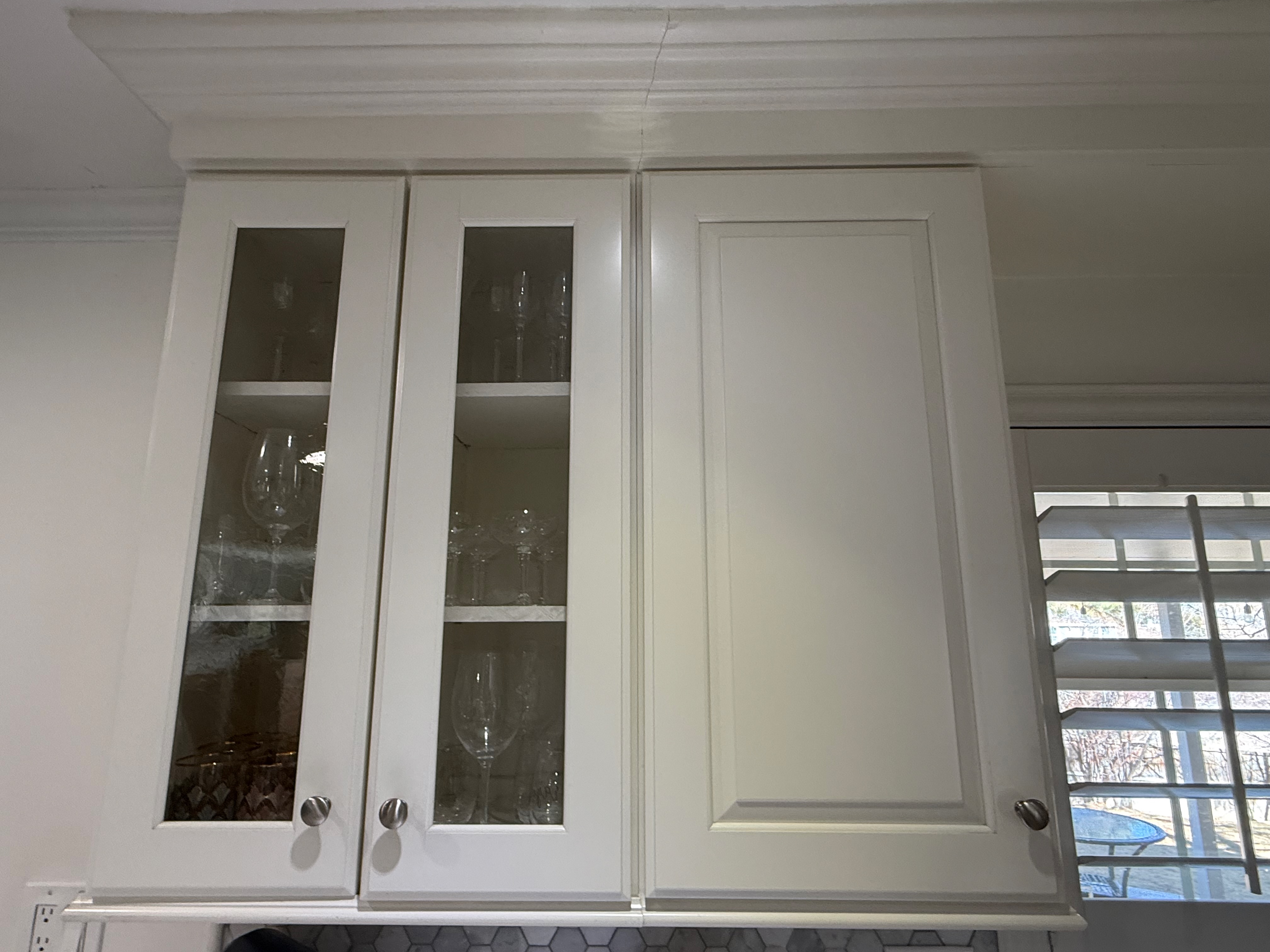 2-One door glass front wall cabinets Dim.:12” w x 35” cabinet only/42”h w/ crown