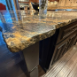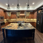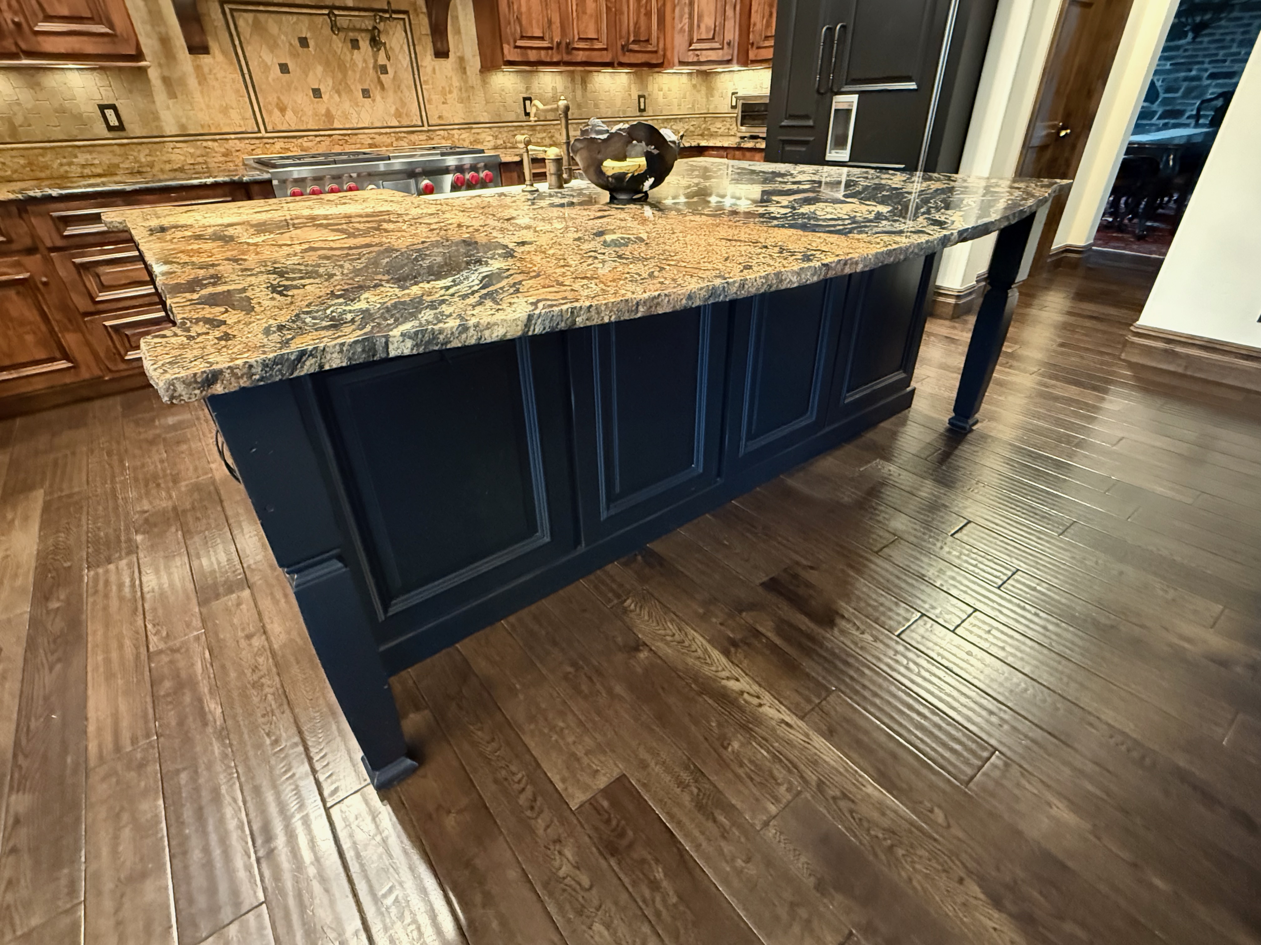 Island has chiseled edge granite countertops overall dimensions 99” w x 68”