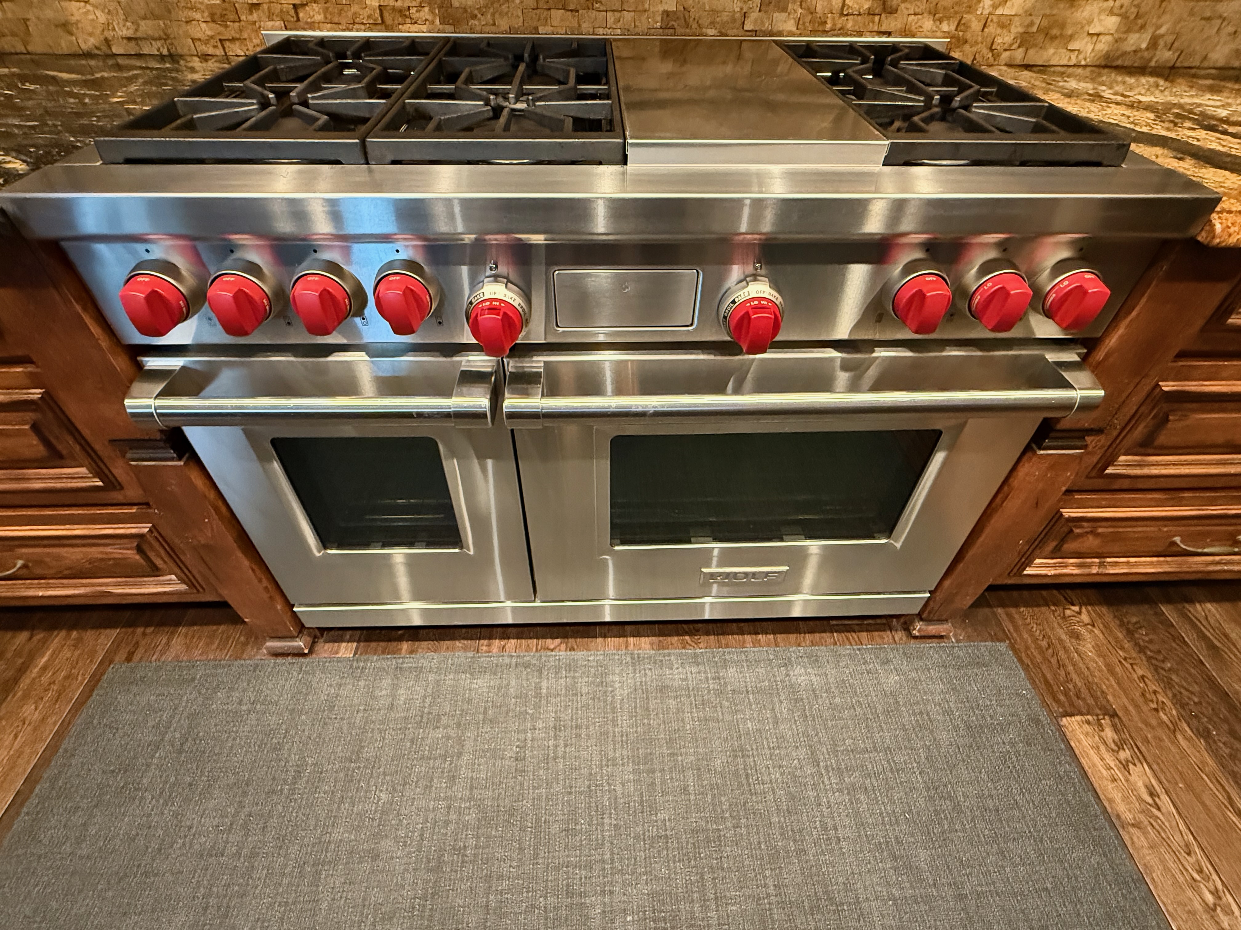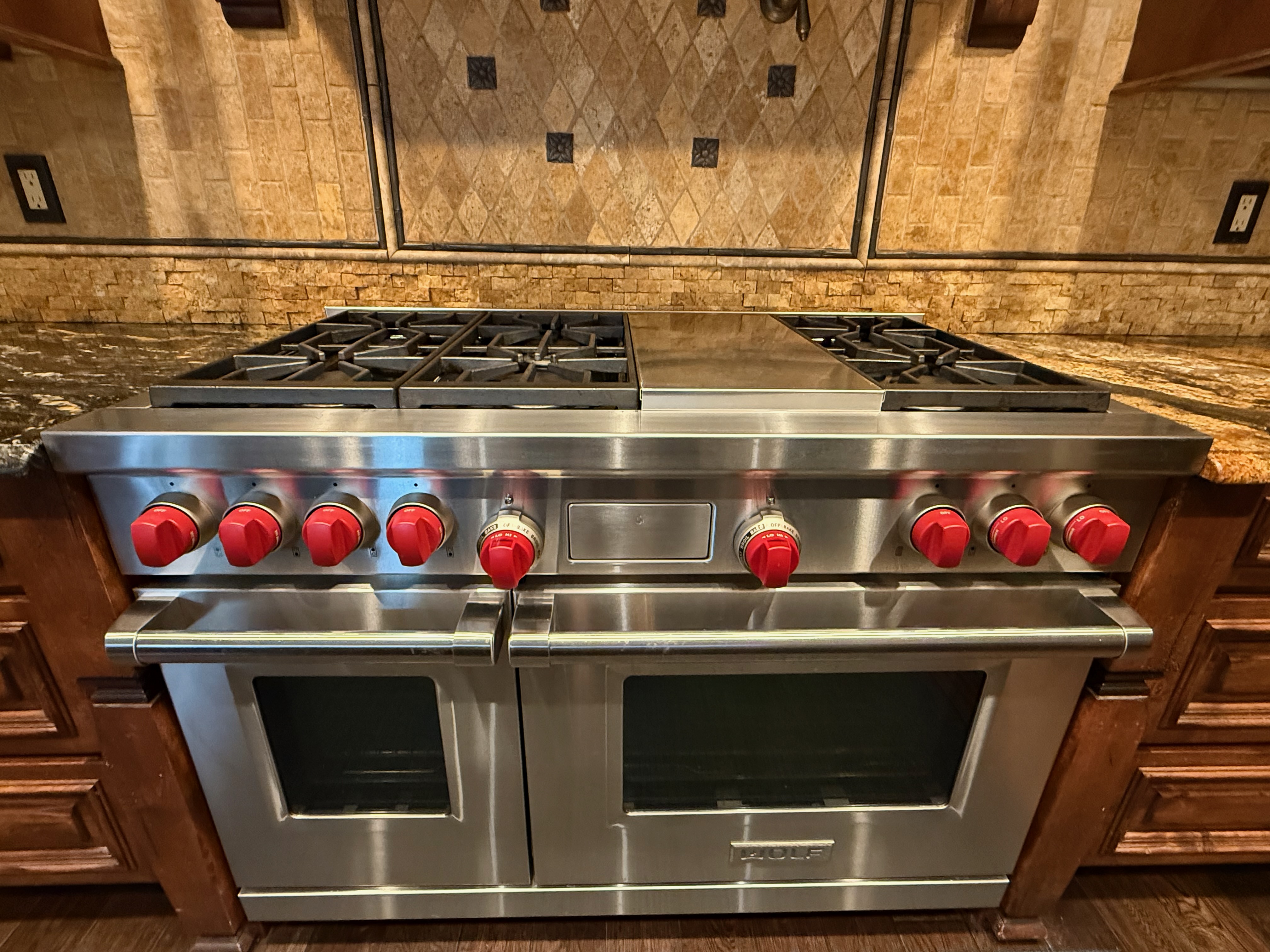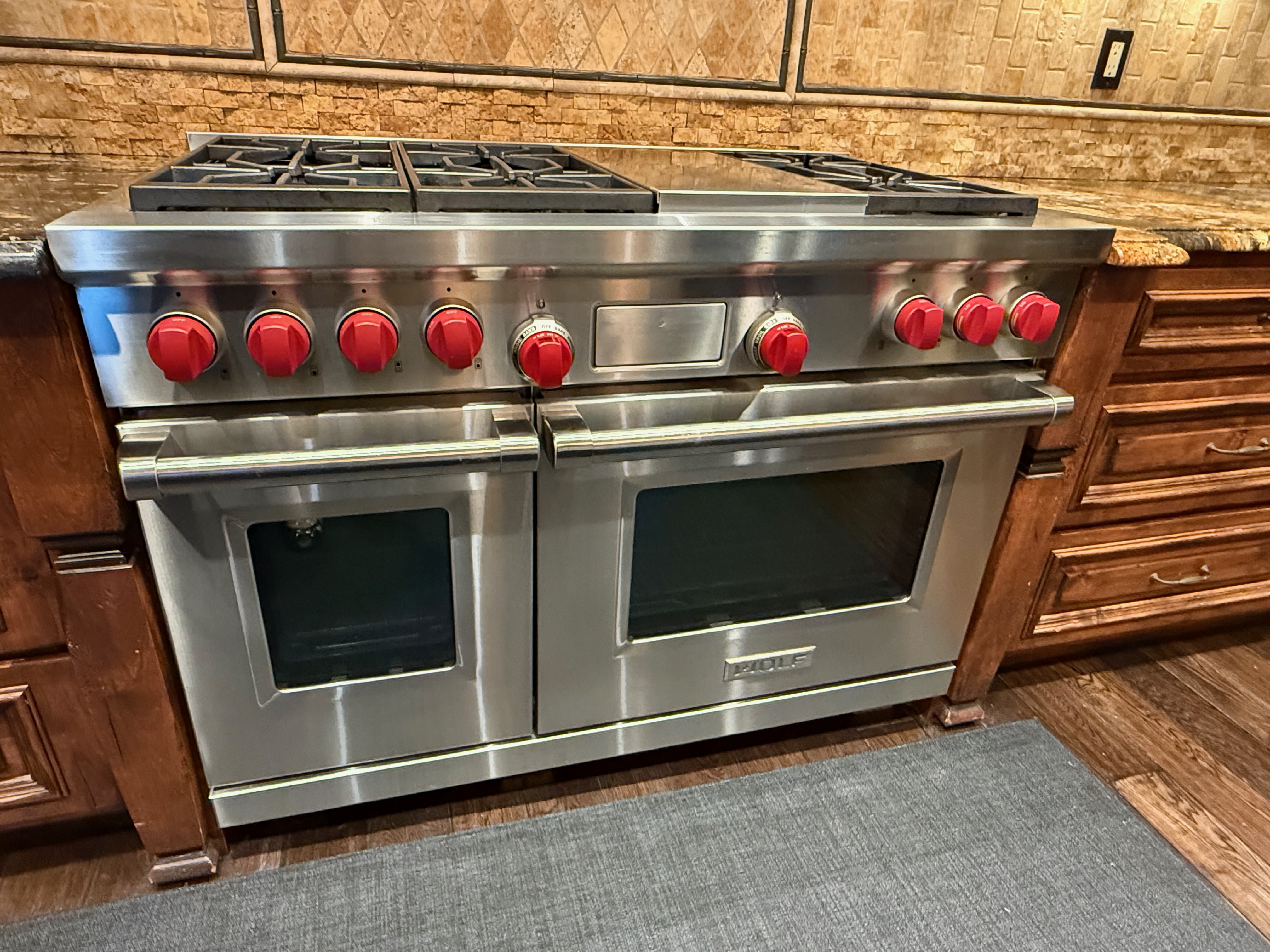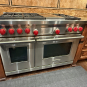 48” Wolf Stainless Steel Legacy Dual Fuel Range 6 Burners and Infrared Charbroiler, Model #DF4862, Serial #017091540, Listing price new $14,255