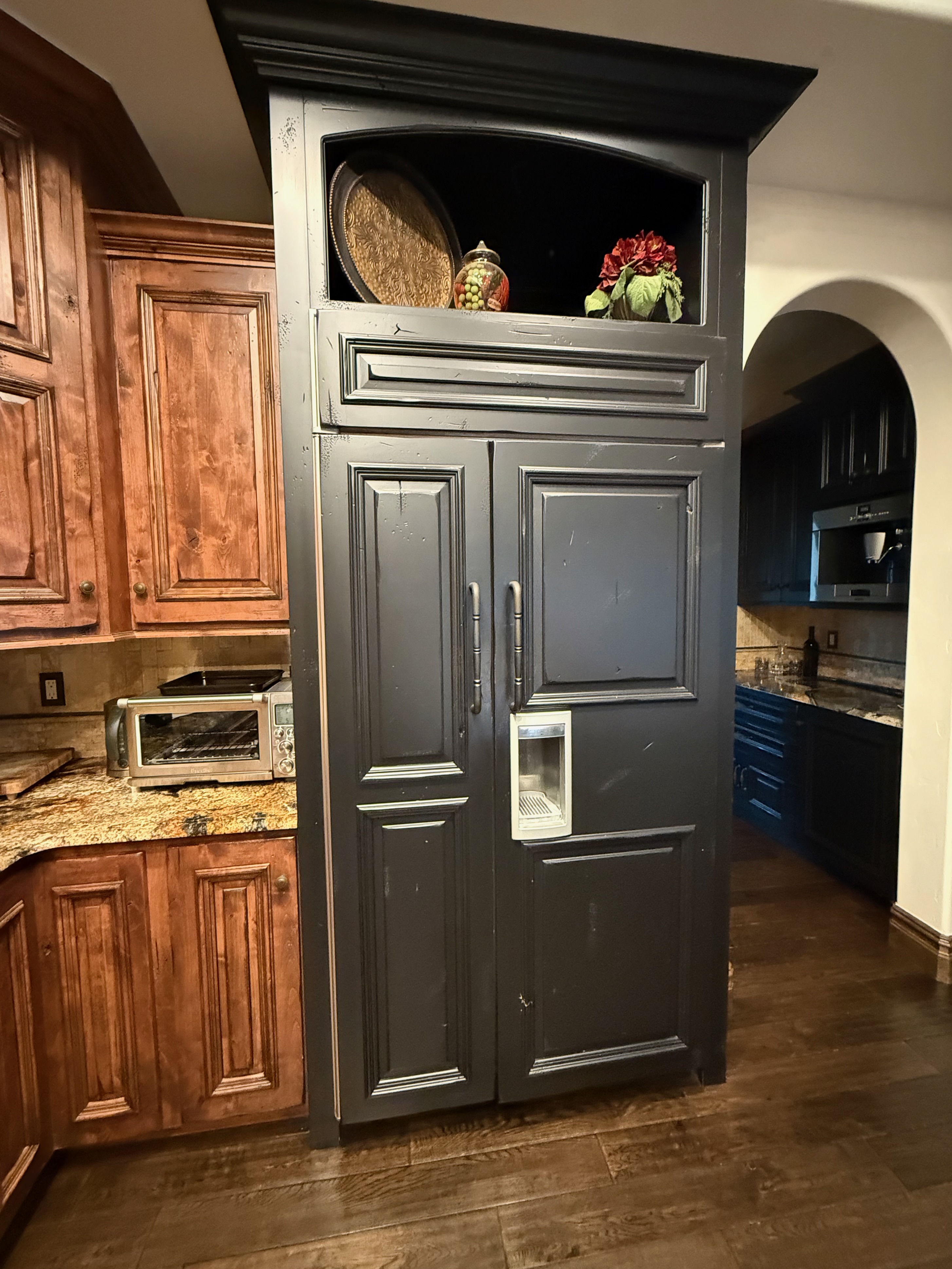 2-Full height panels framing the refrigerator Dim.: 2 ½”w x 103 ¾”h x 24”w