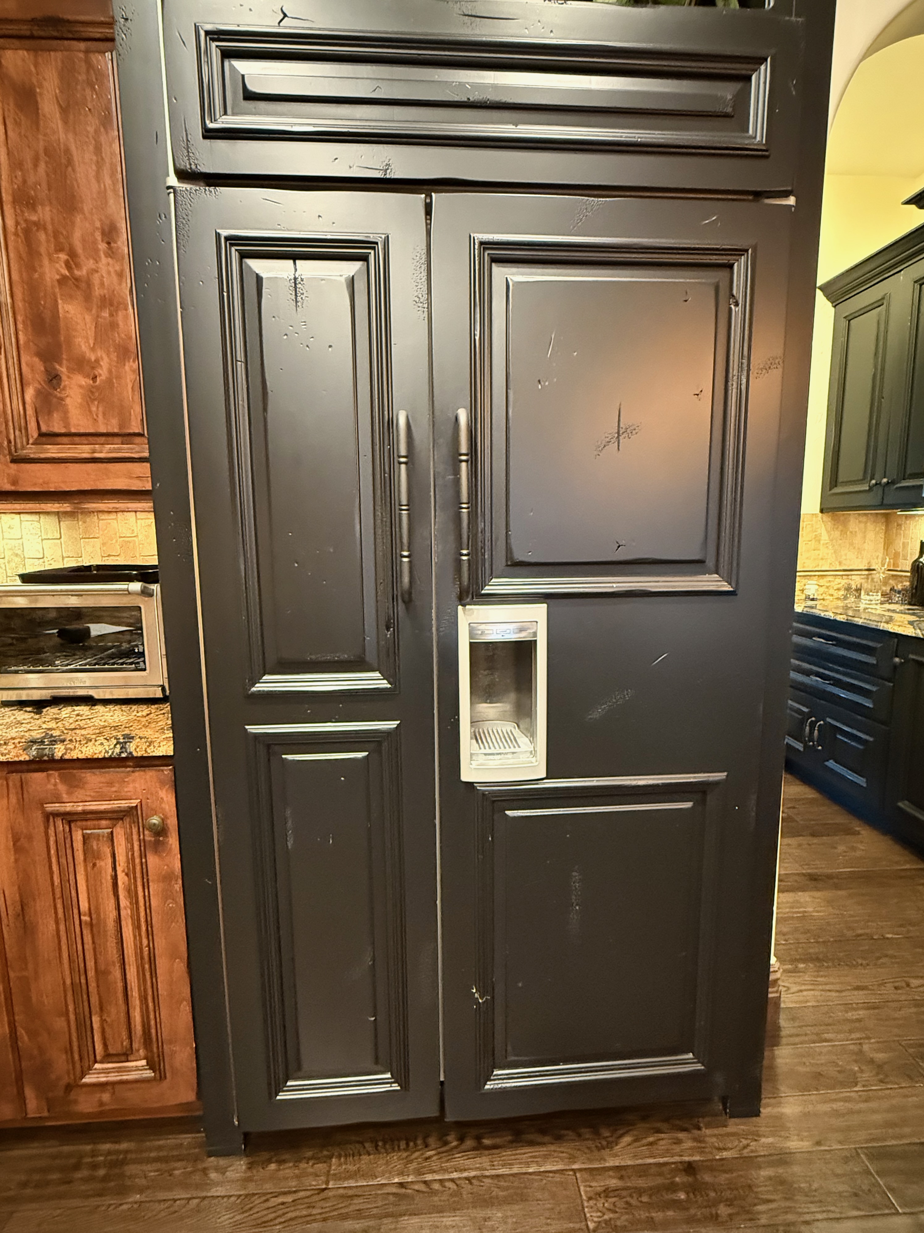 42” Sub-Zero side x side panel ready refrigerator freezer with water and ice on the door Model #685/03 Serial# M2682718