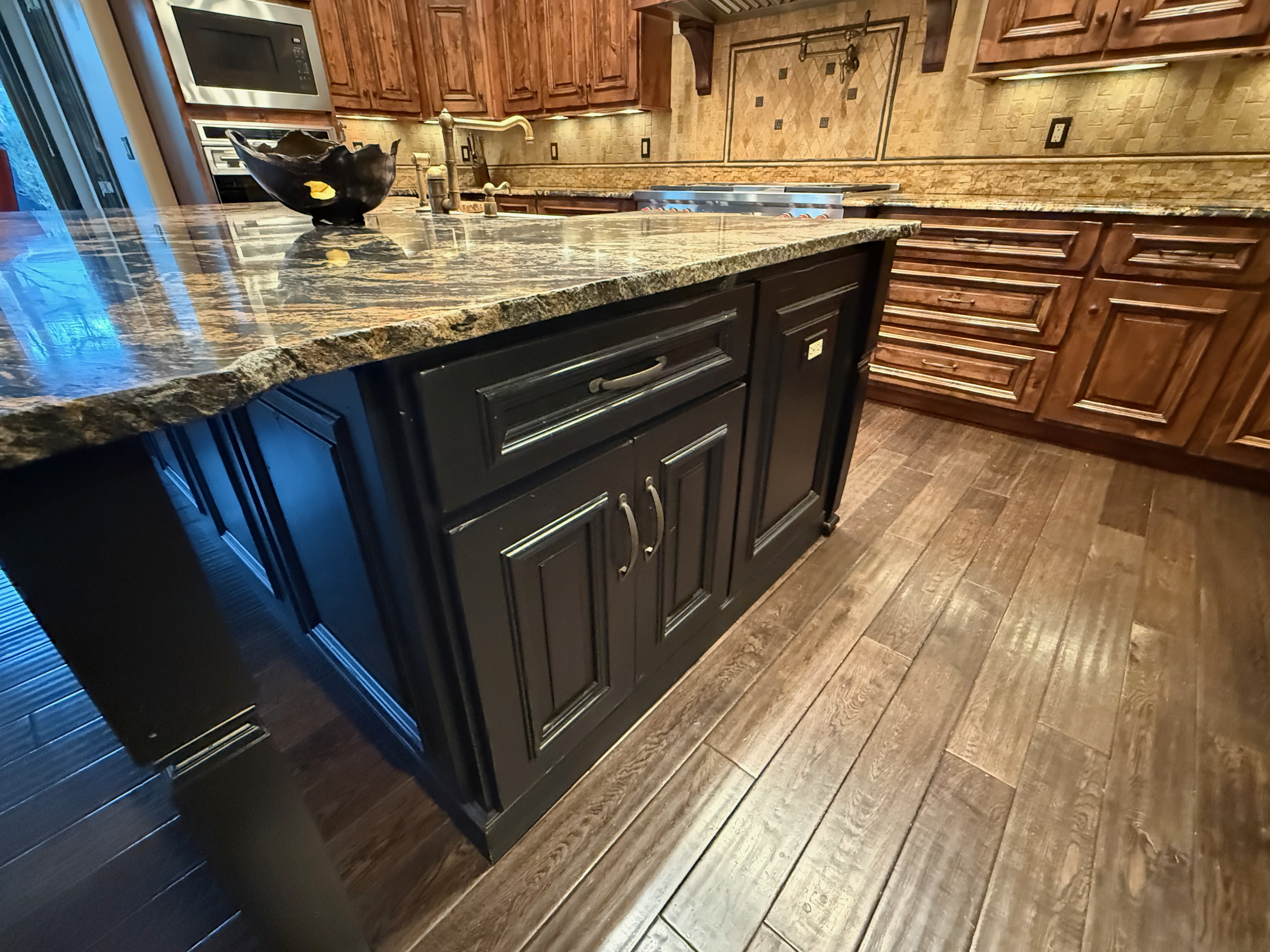 ISLAND-Distressed Black Knotty Alder Wood Finish
