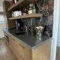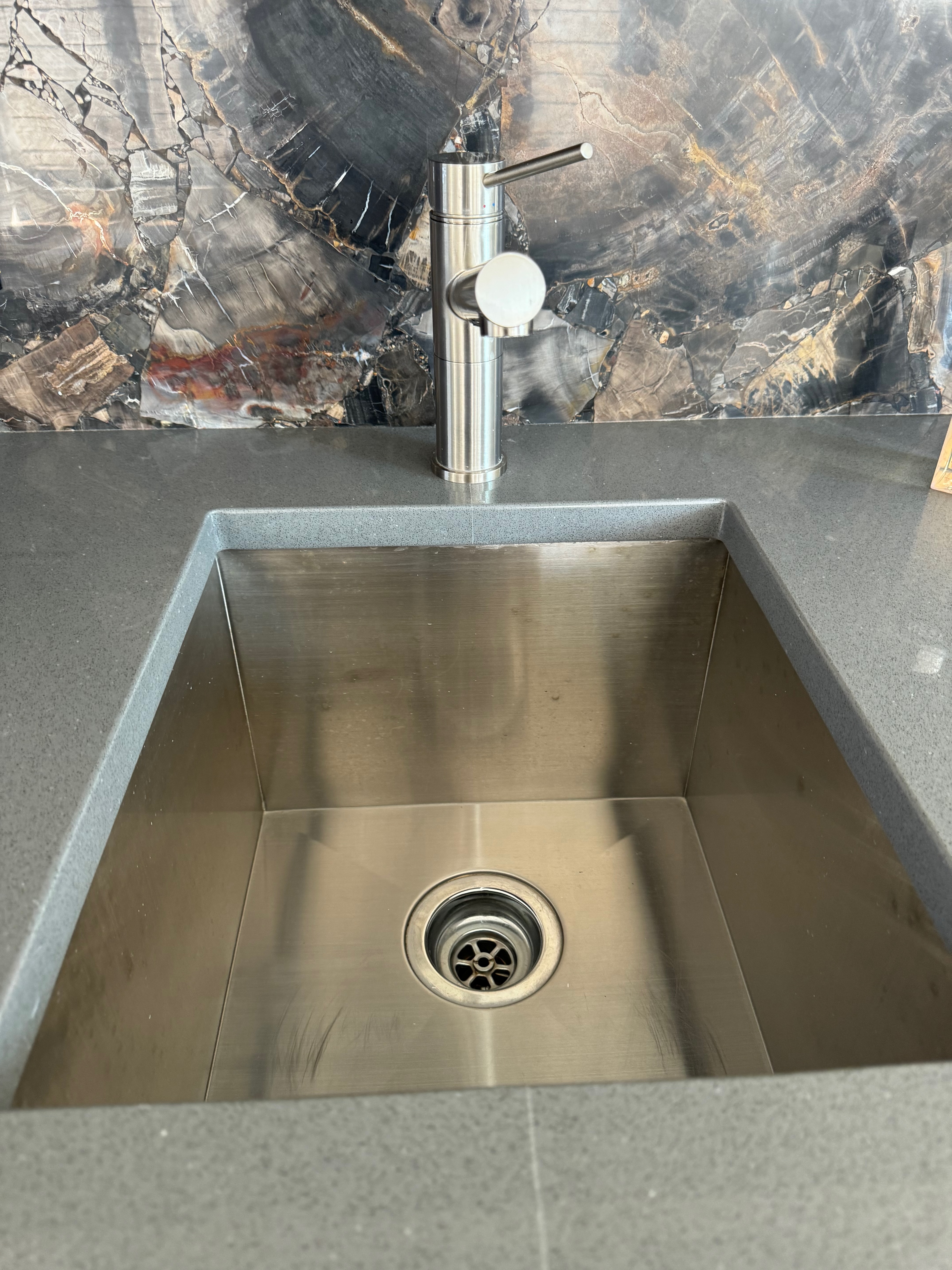 Bar countertop 106 ½” w x 25 ¼”d, seam at the sink base