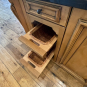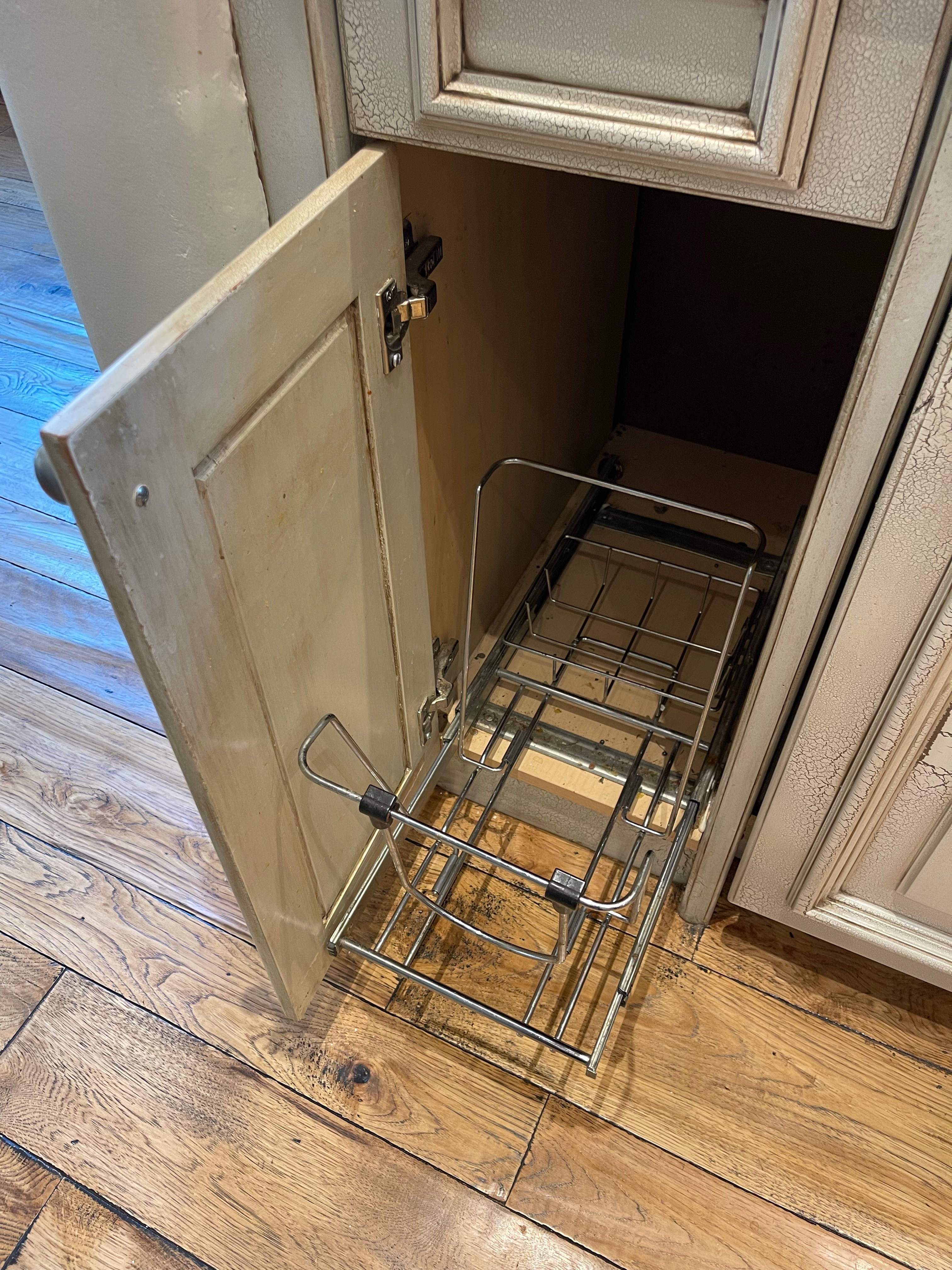 1-One false drawer, One door base cabinet w/ trash can Dim.: 12“w/14”w x 36”h x 24“d