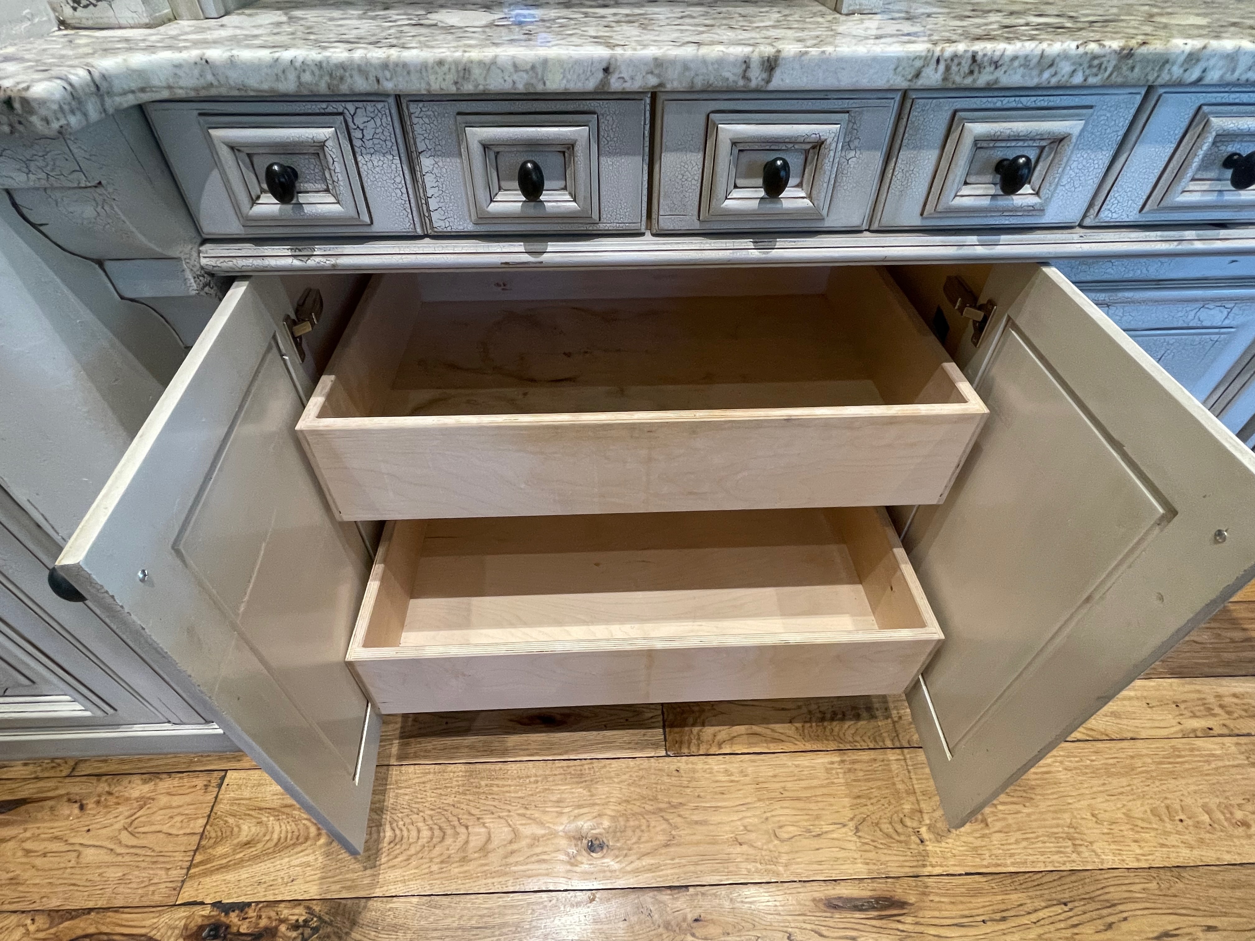 1-Two door base cabinet w/ two pull out drawers inside Dim.: 25 1/2 “w x 36”h x 24“d