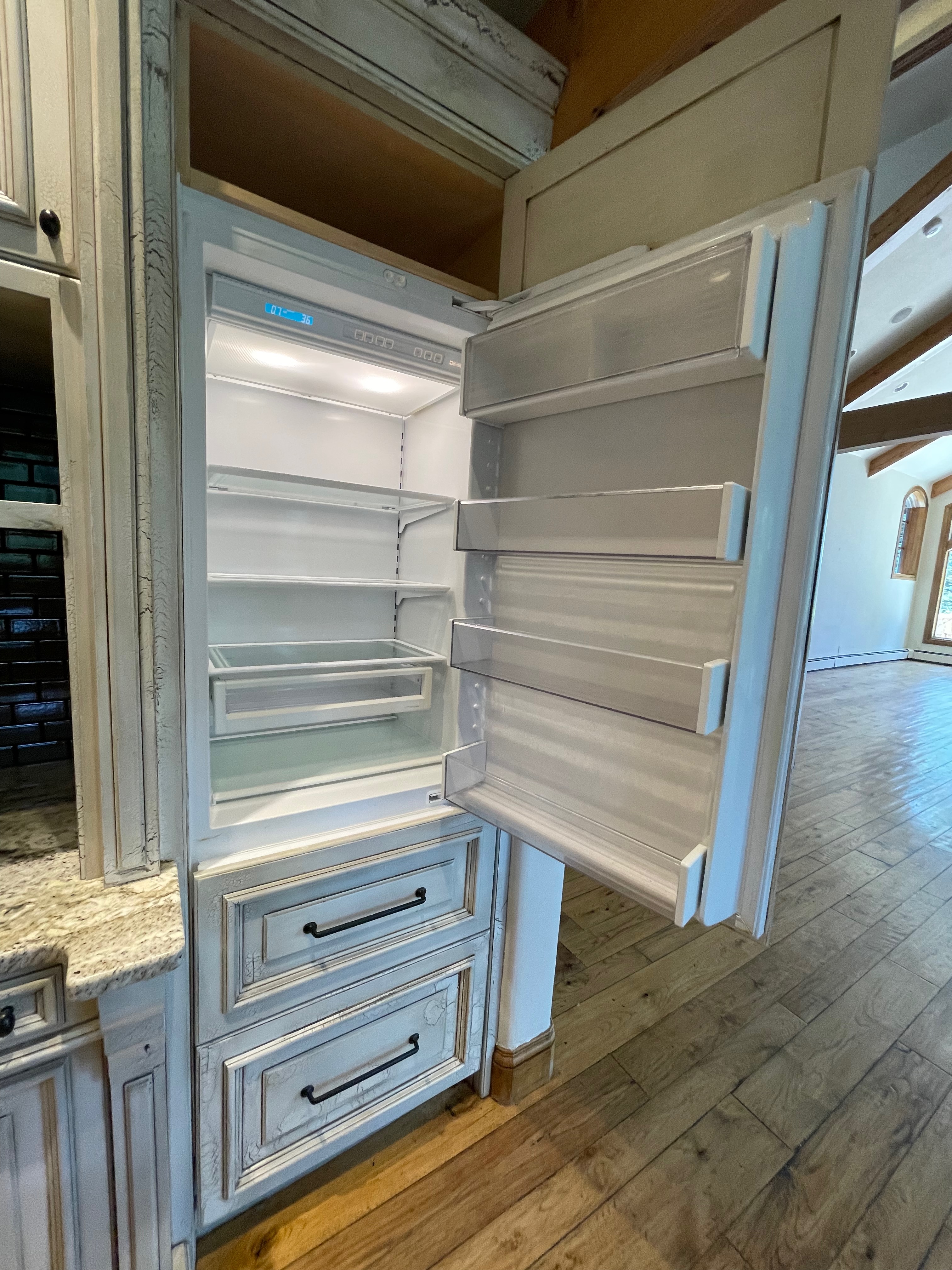 27” Sub-Zero Refrigerator, two bottom freezers below. Panel ready Model #700TCI-3, Serial#G3310232 5/12 Dim.: 27” w x 80”h refrigerator/90” panel front x 24”d, Listing price new $6,499/$2,274/$2,500