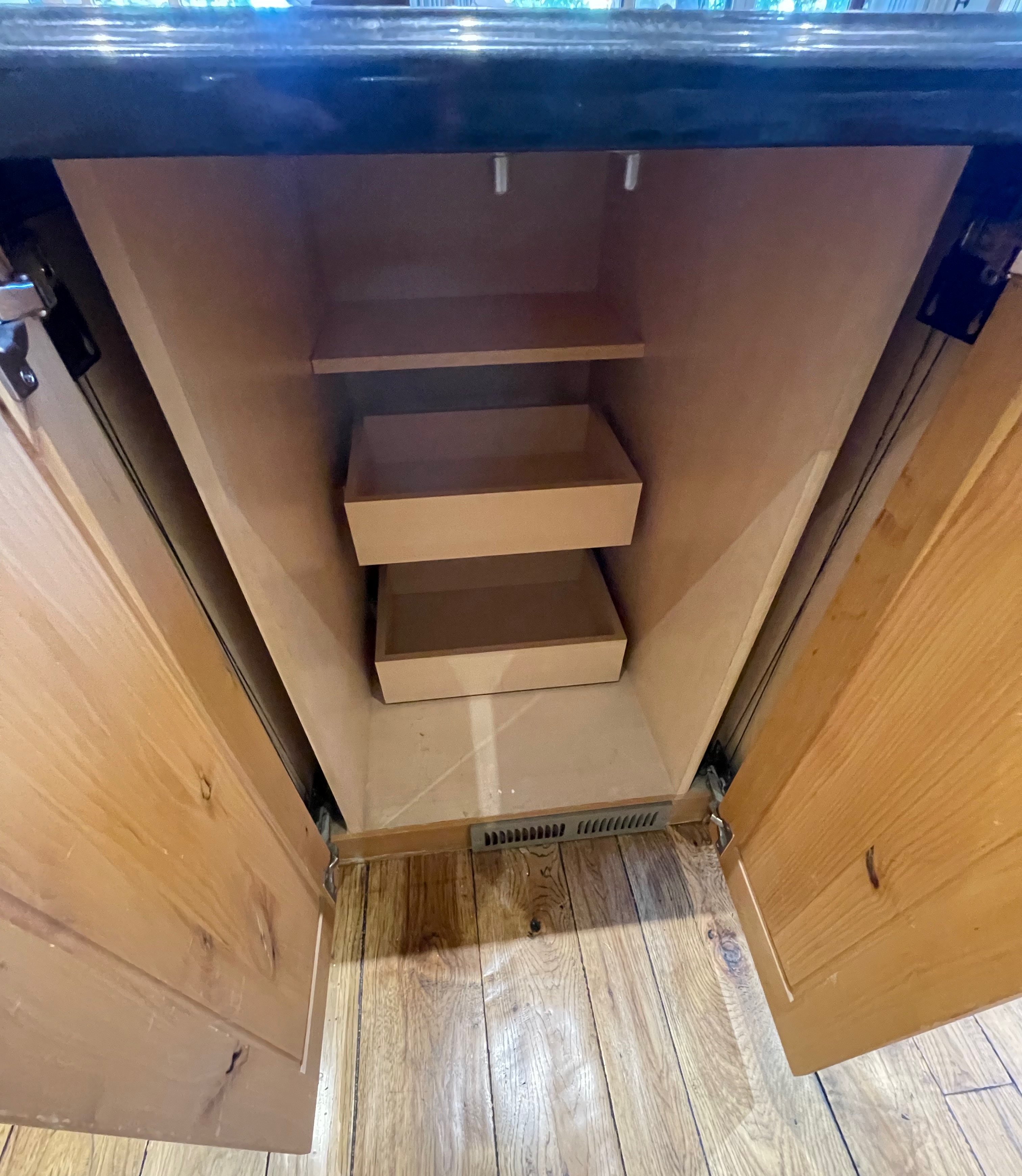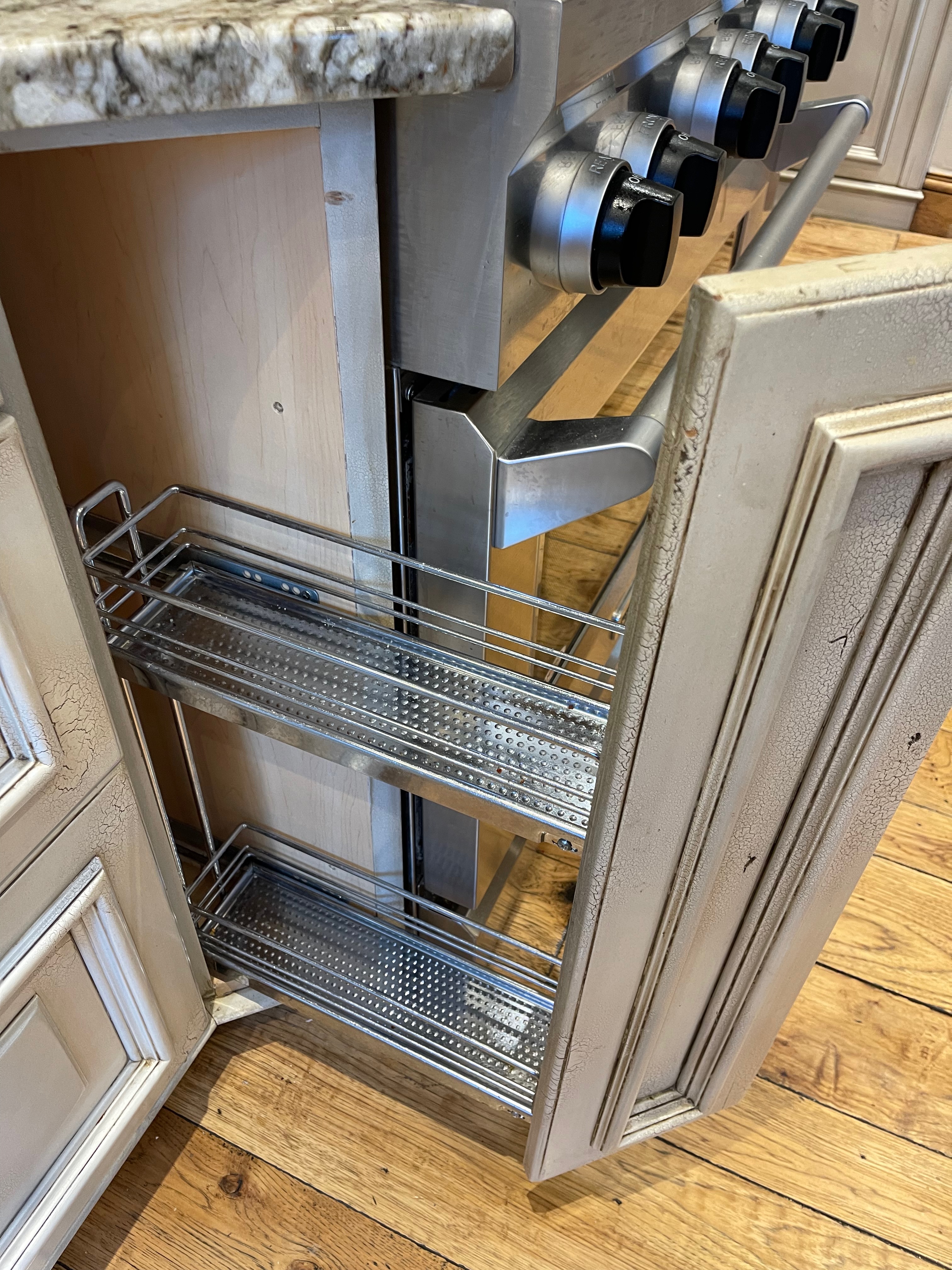 2-One door angled cabinets on each side of the range Dim.: 6”w x36”h x 24”d
