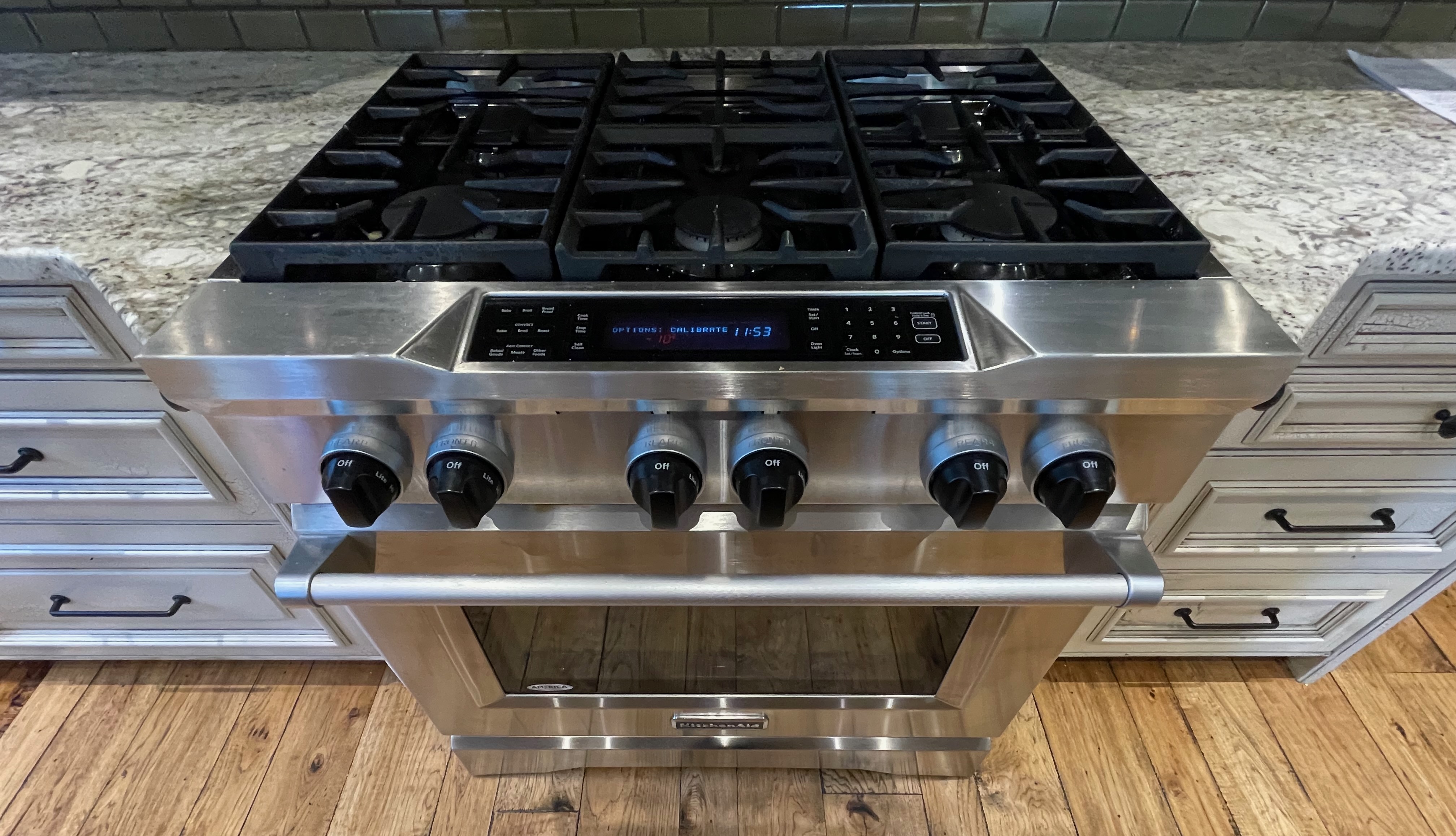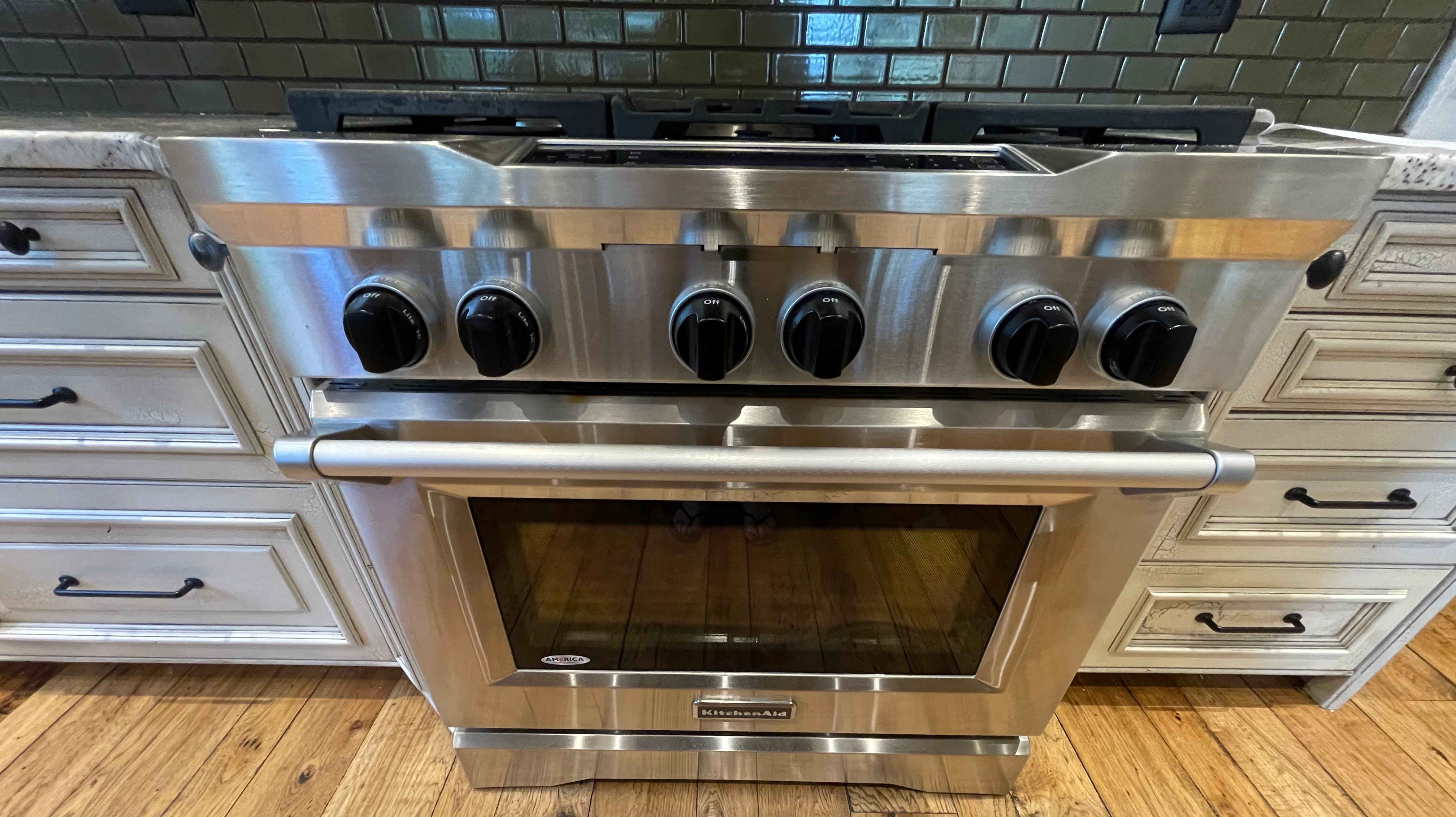 36” KitchenAid Range Model #KDRS467VSS04 Serial #D60903373 2/16 Dim.: 36”w x 28”d Listing price new $7,594