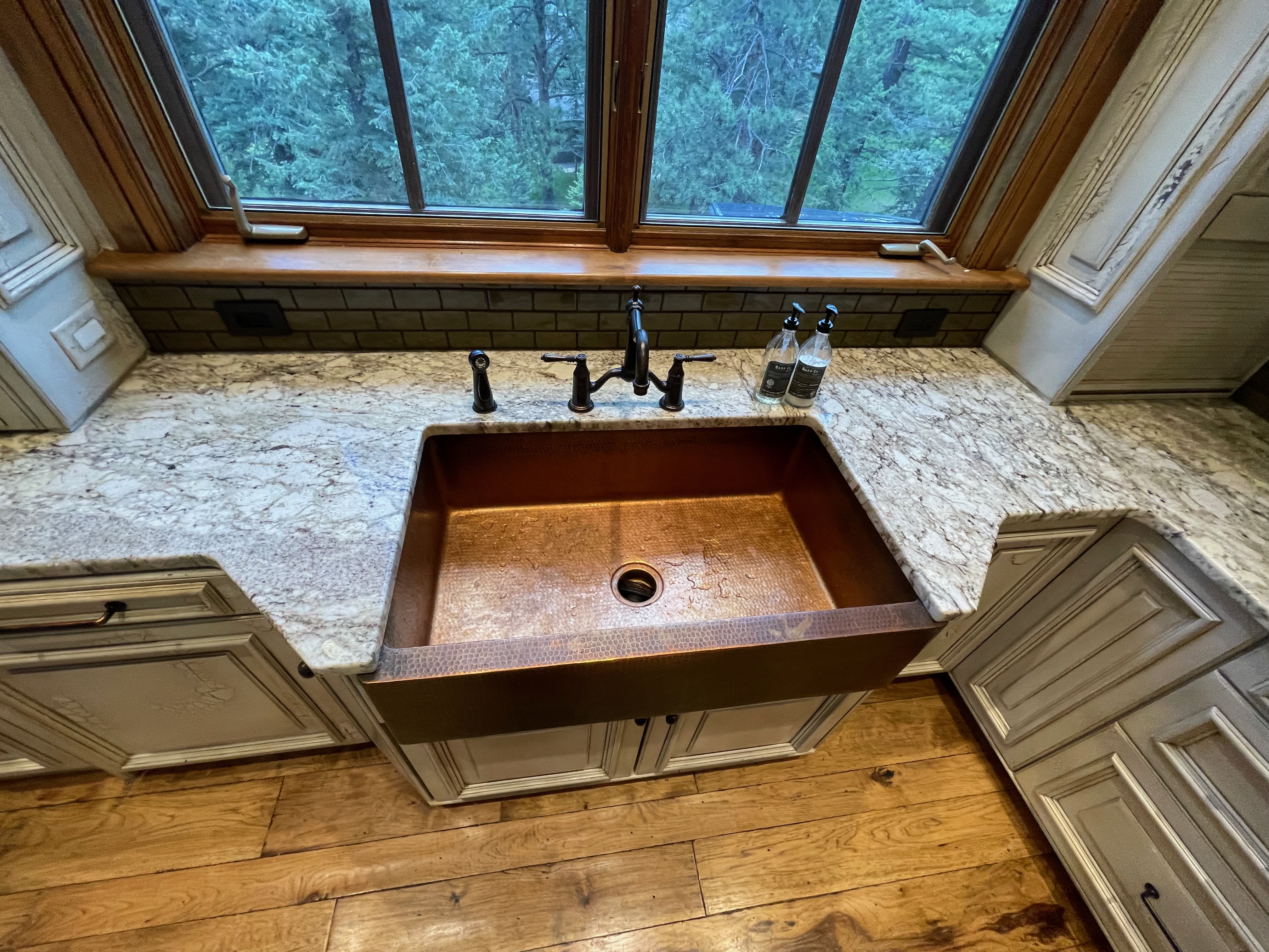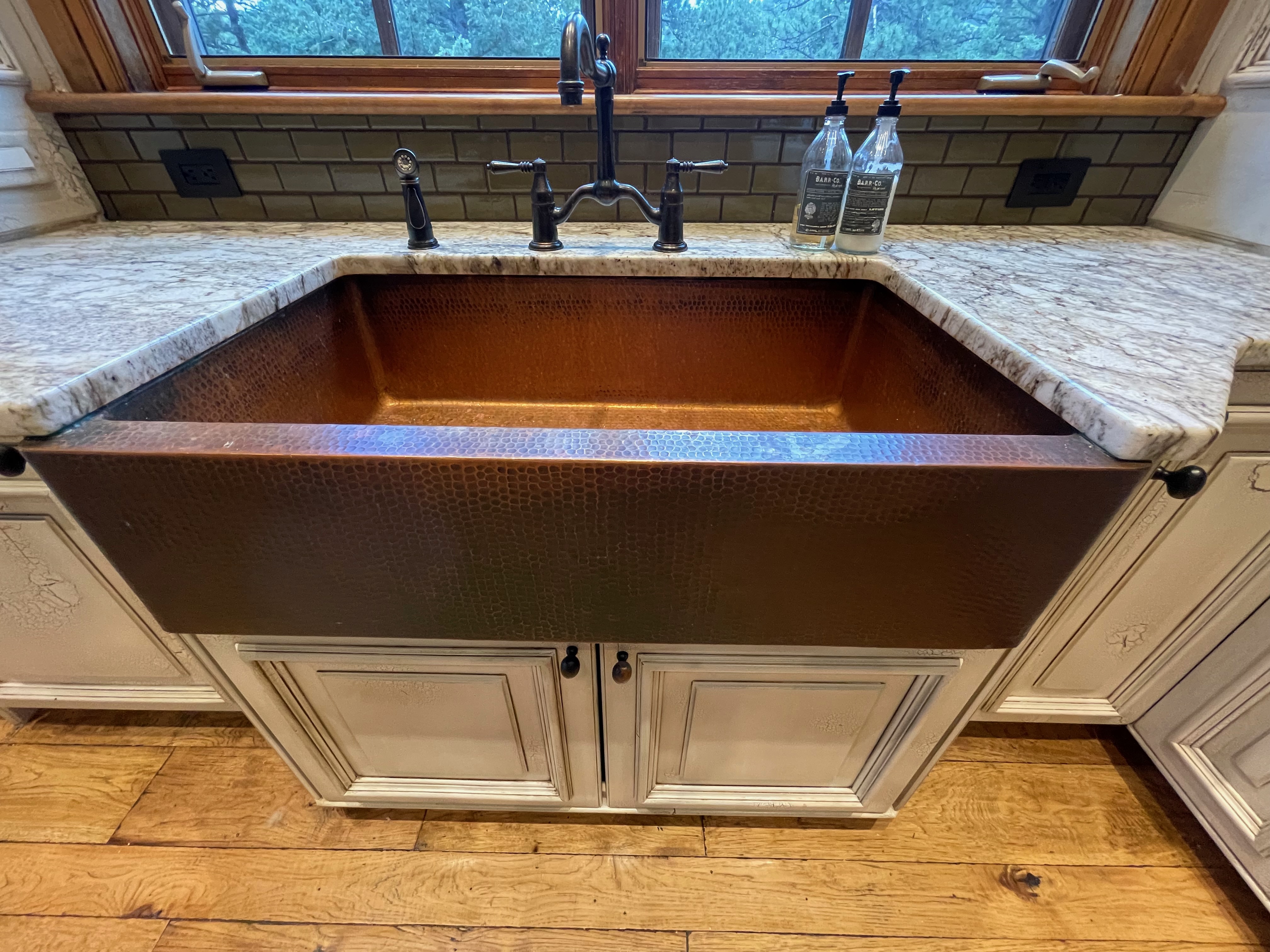 1-Two door sink base cabinet Dim.: 39”w x 36”h x 24’d, Copper farmhouse sink 36”w x 9”h x 21”d