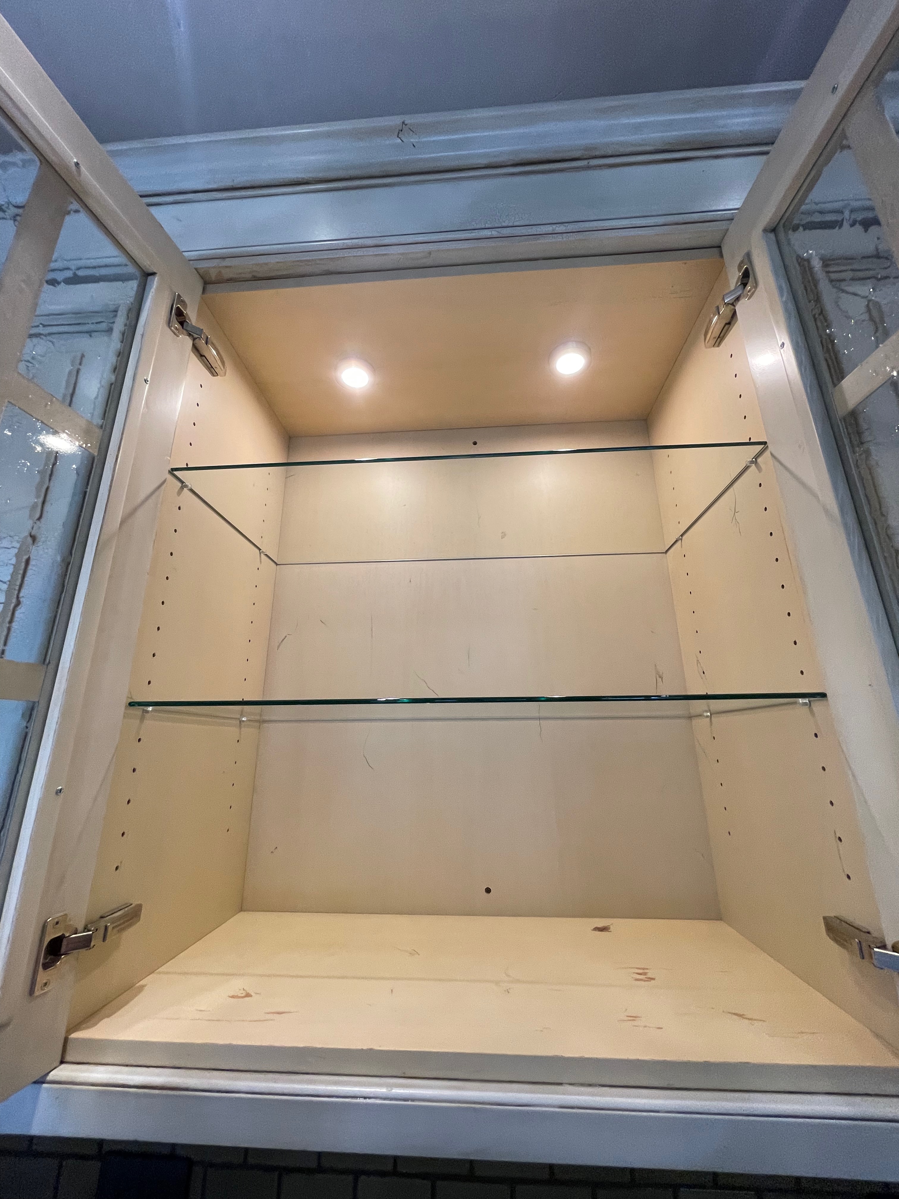 1-Shelving cabinet Dim.: 12 ¾’w x 35”h/44 ½”h w/ crown x 7 ½” d