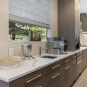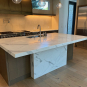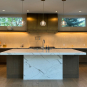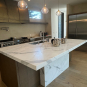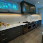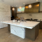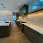 Perimeter wall countertop to the right of the range 81 ½”w x 25”d/28” d @ the range
